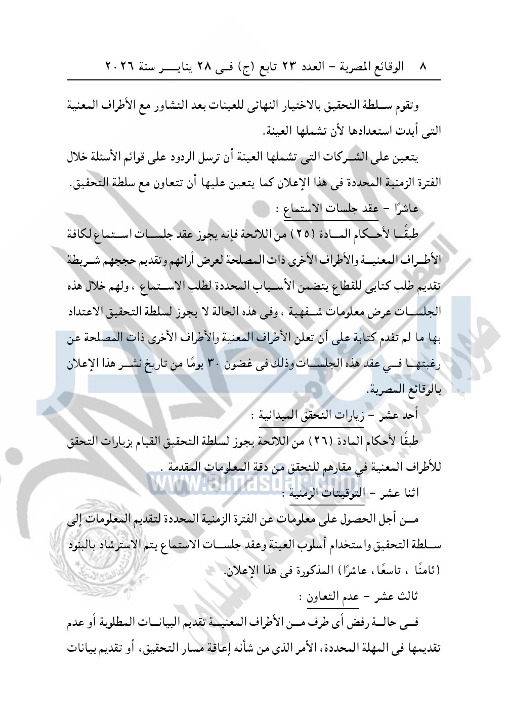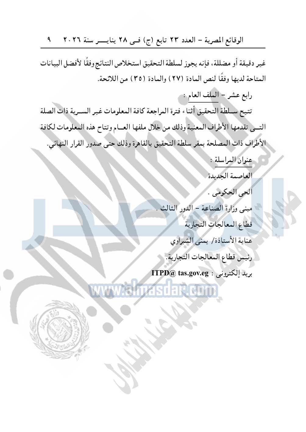 بتاريخ 25-1-2026 وافق المهندس الوزير على توصية اللجنة الاستشارية وفقا لأحكام المادة "10" من اللائحة.