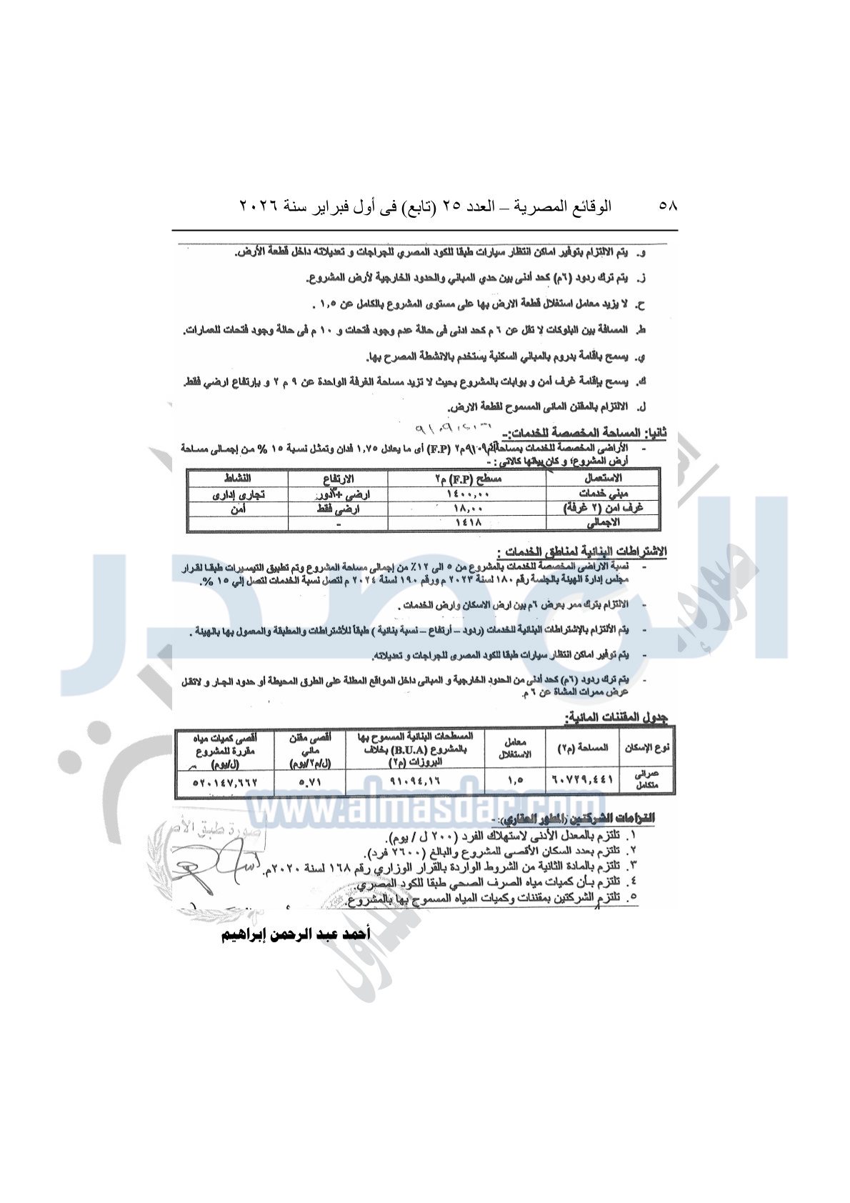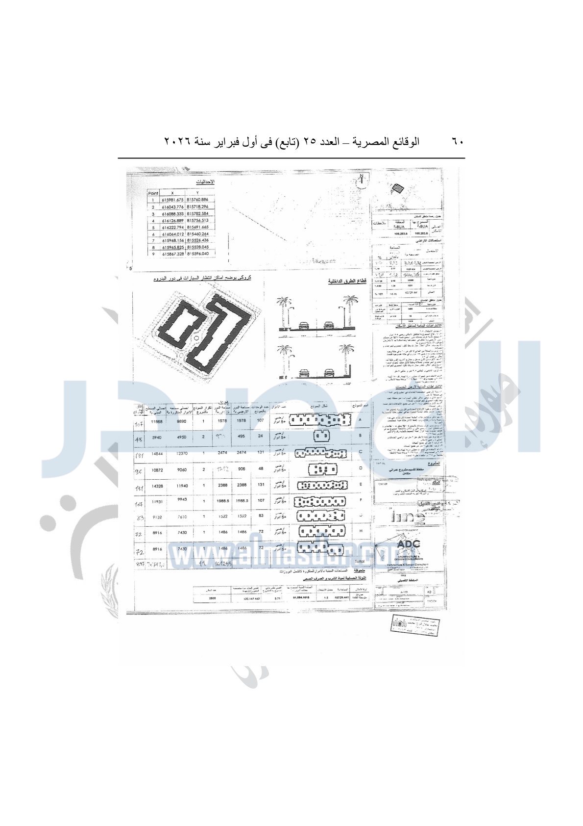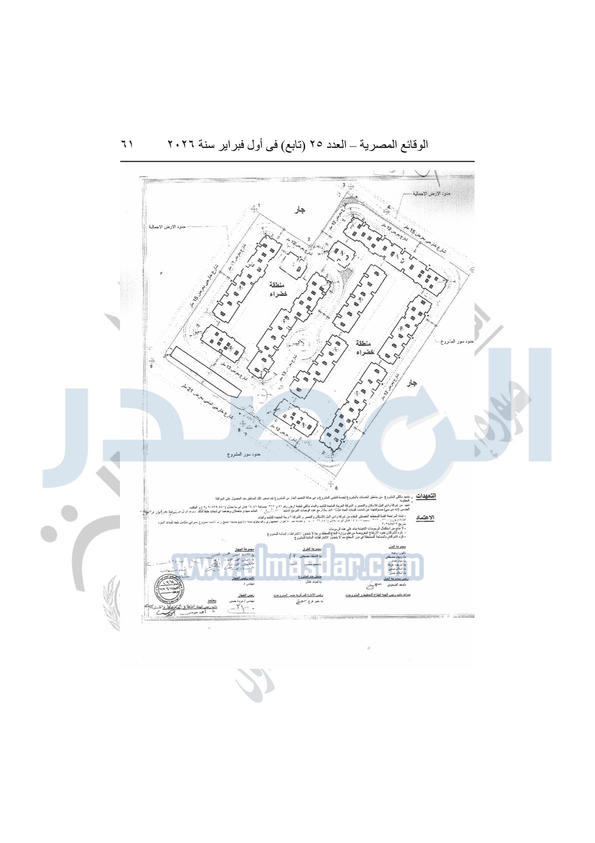 نشرت الوقائع المصرية، في العدد 25 "تابع"، الصادر في أول فبراير سنة 2026، قرار وزارة الإسكان والمرافق والمجتمعات العمرانية، رقم 317 لسنة 2025، بتاريخ 9-3-2025، بشأن اعتماد تخطيط وتقسيم قطعة أرض بمساحة 60729.441م2 بما يعادل 14.46 فدان الواقعة بمنطقة القرار الجمهورى رقم 230 لسنة 2017 بمدينة الشيخ زايد المخصصة لشركة وادى النيل للإسكان والتعمير & الشركة العربية المتحدة للتشييد والبناء لإقامة مشروع عمراني متكامل.