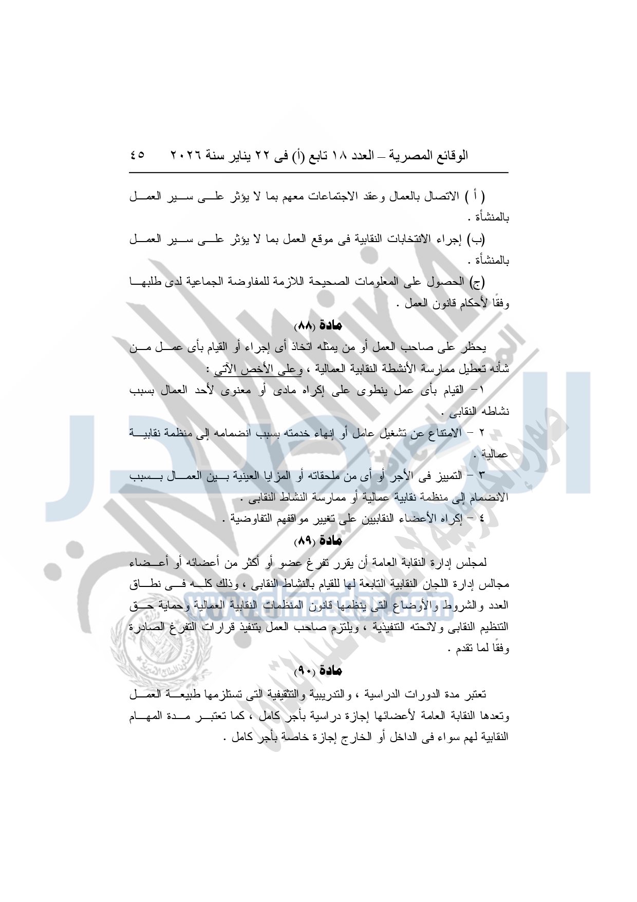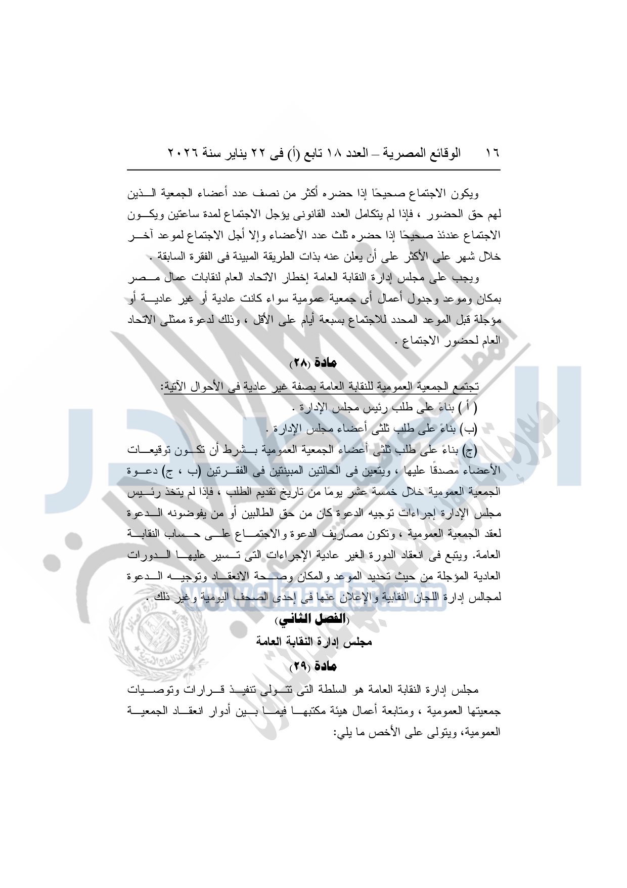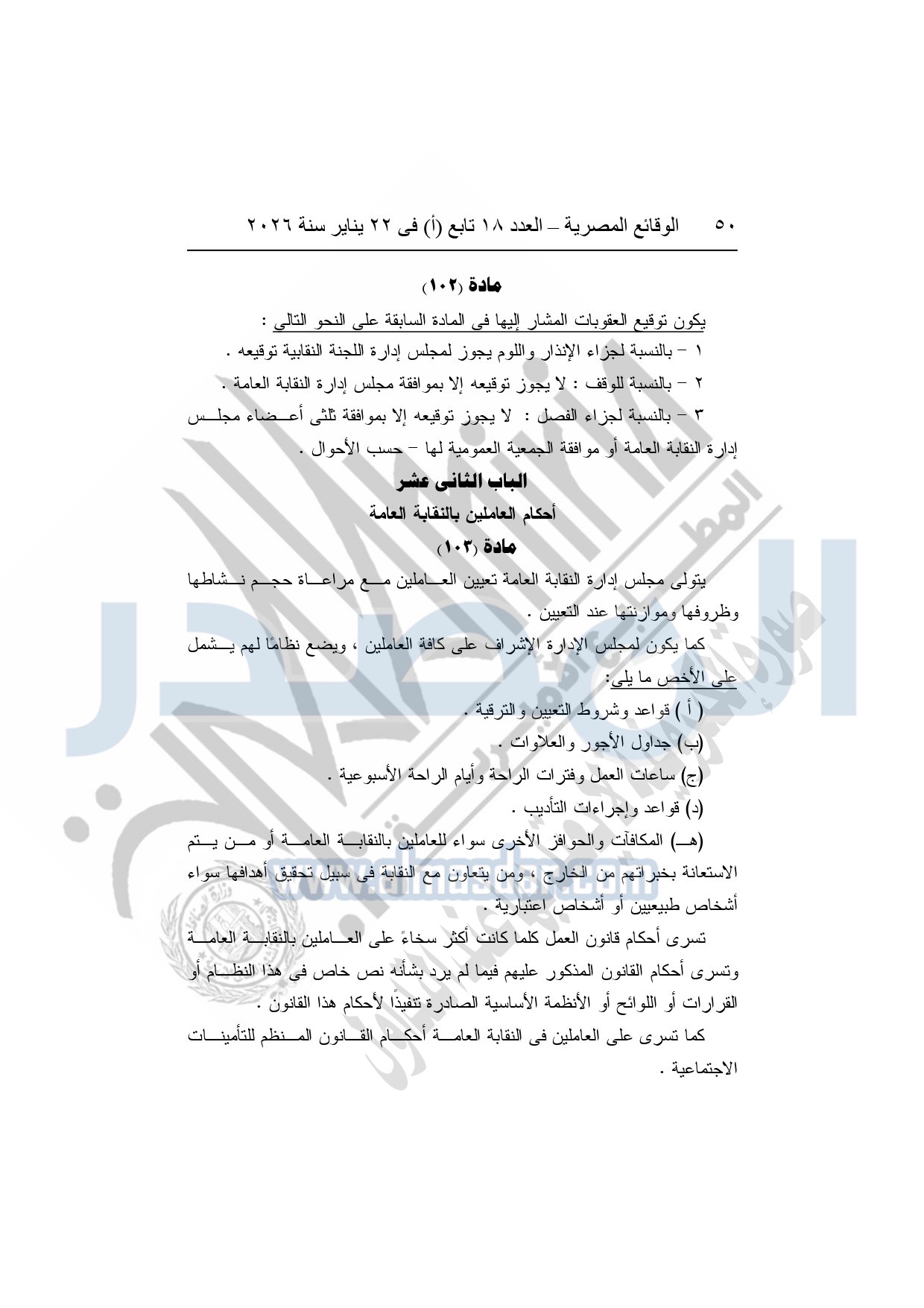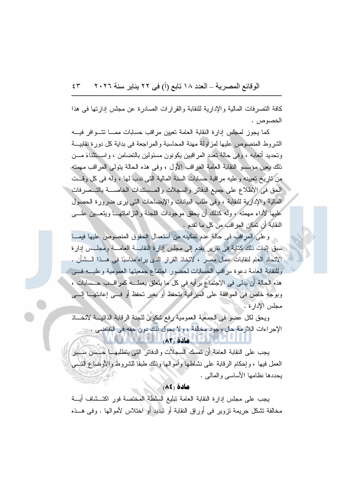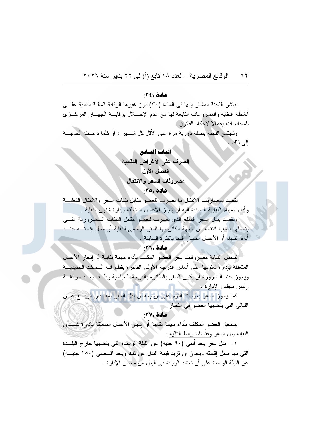 نشرت الوقائع المصرية، في العدد 18 تابع "أ"، الصادر في 22 يناير سنة 2026، بشأن النقابة العامة للعاملين بالإنتاج الحربى، قرار إدارى رقم 1 لسنة 2026، بتاريخ 21-1-2026، بشأن إعتماد لائحة النظام الأساسي للنقابة العامة للعاملين المدنيين بالإنتاج الحربي.