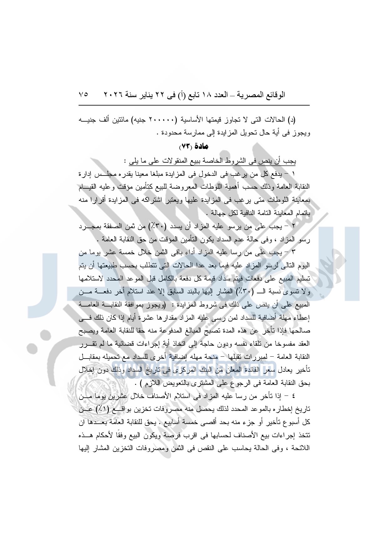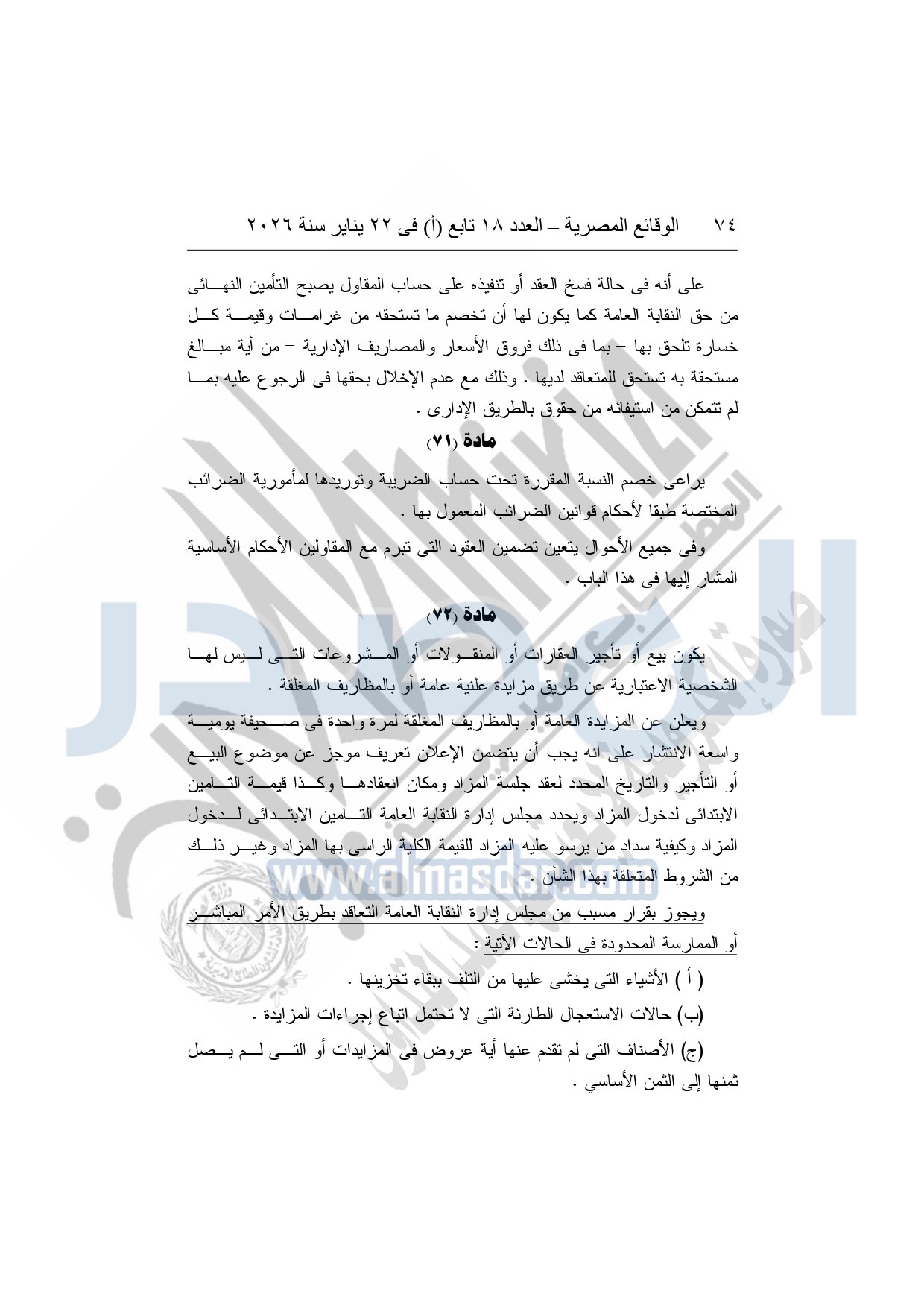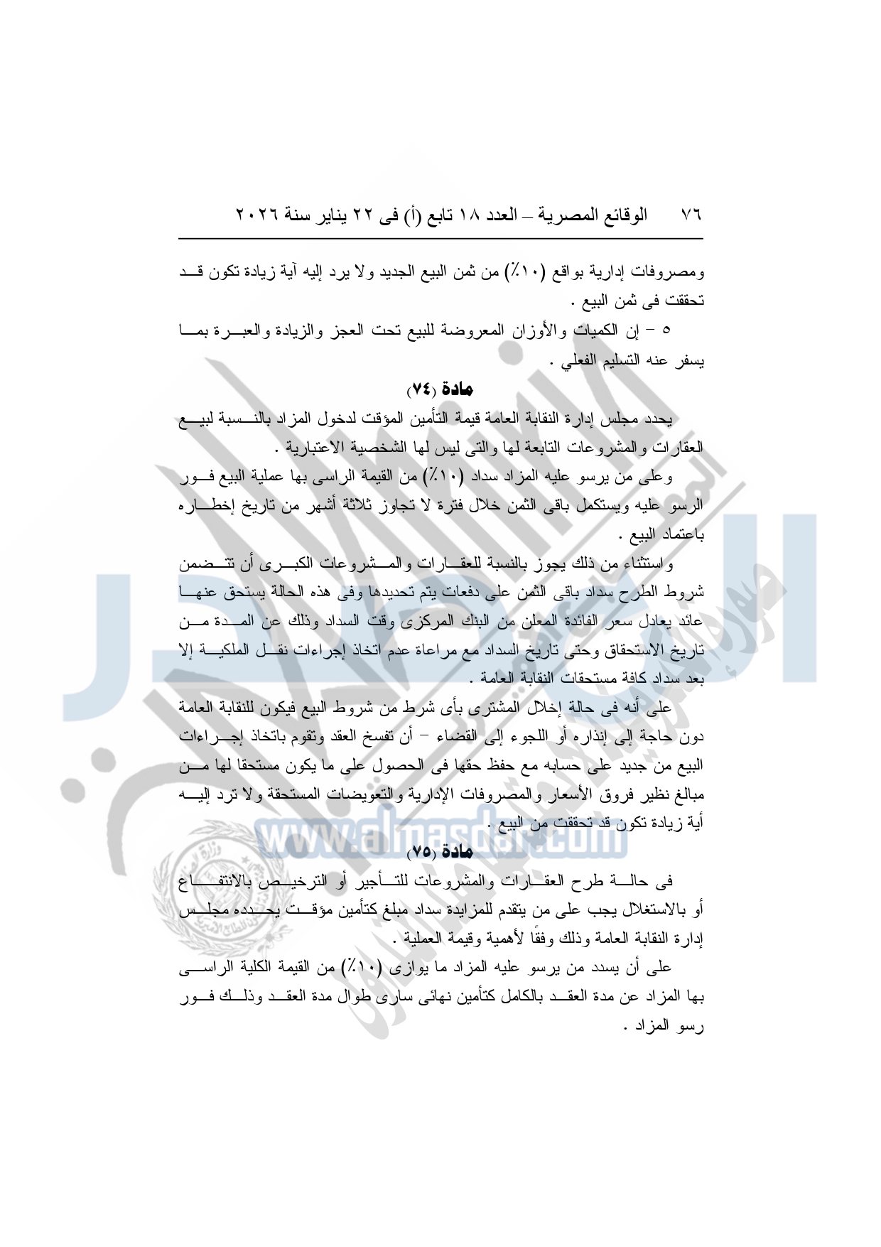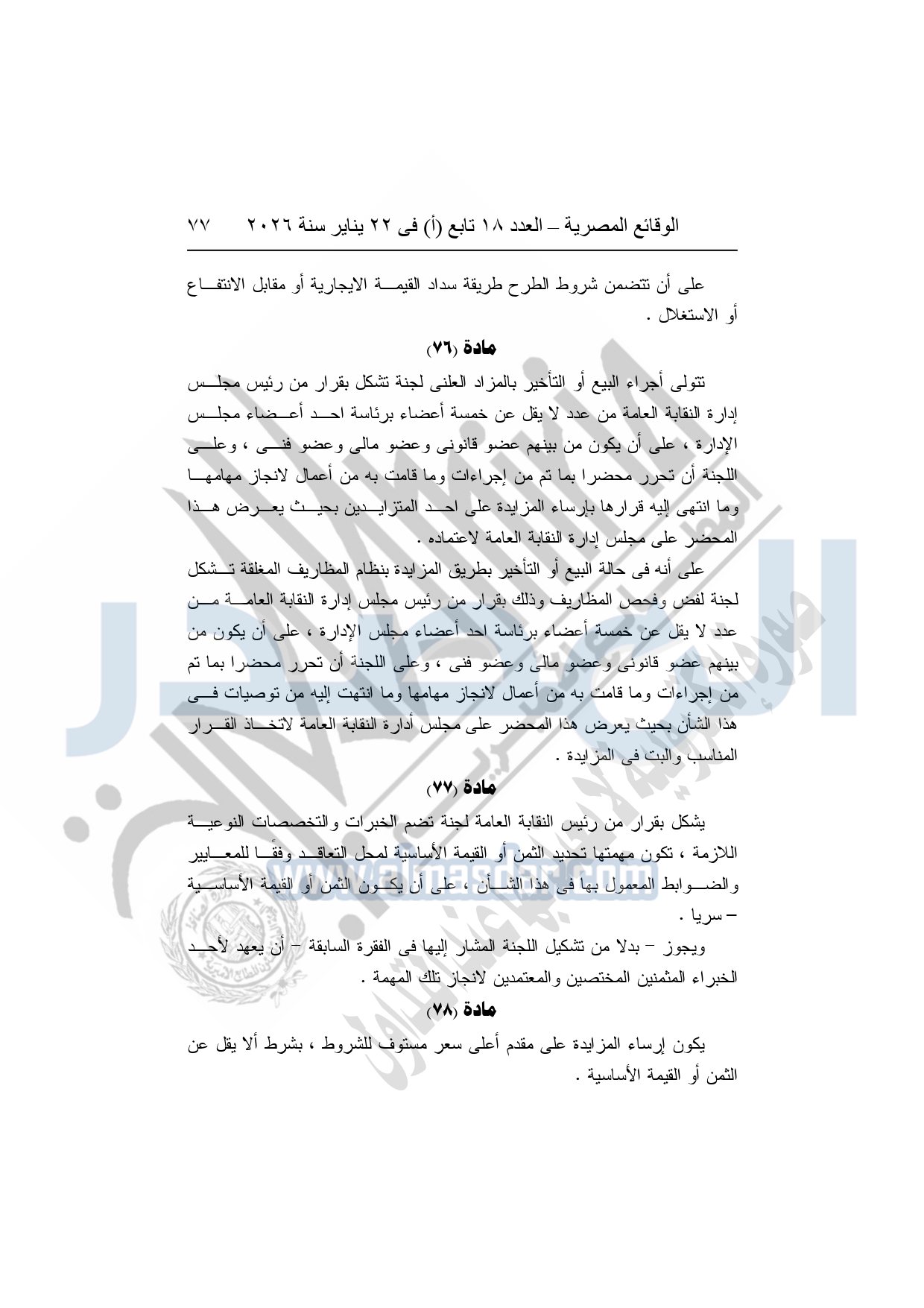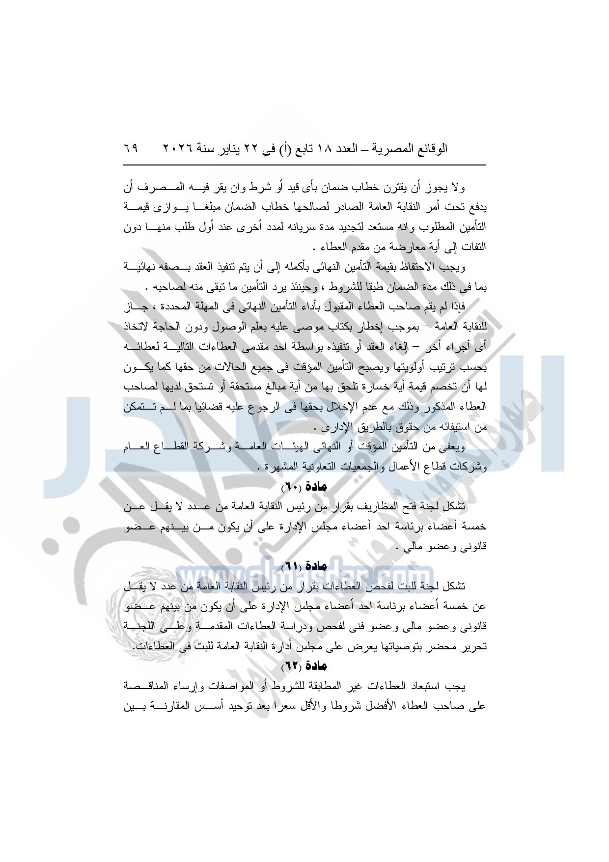 نشرت الوقائع المصرية، في العدد 18 تابع "أ"، الصادر في 22 يناير سنة 2026، بشأن النقابة العامة للعاملين بالإنتاج الحربى، قرار إدارى رقم 1 لسنة 2026، بتاريخ 21-1-2026، بشأن إعتماد لائحة النظام الأساسي للنقابة العامة للعاملين المدنيين بالإنتاج الحربي.