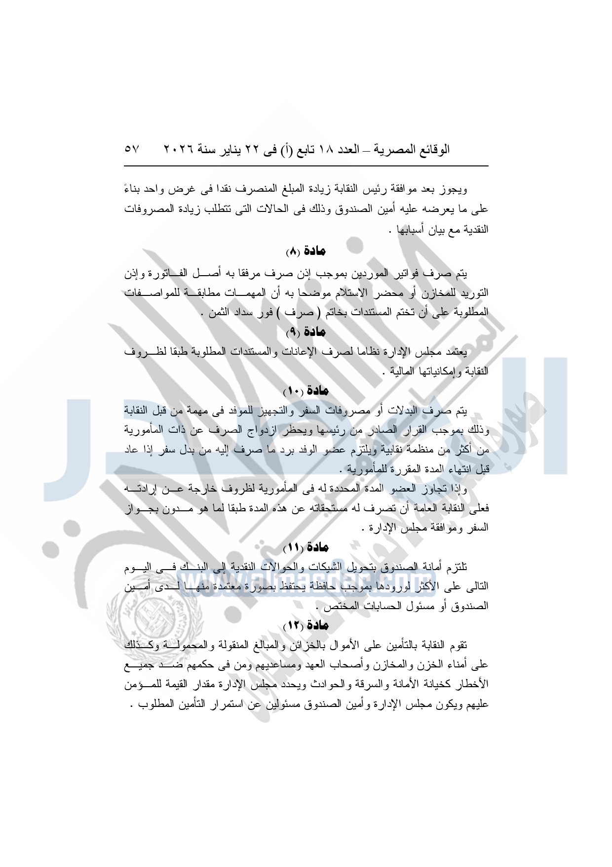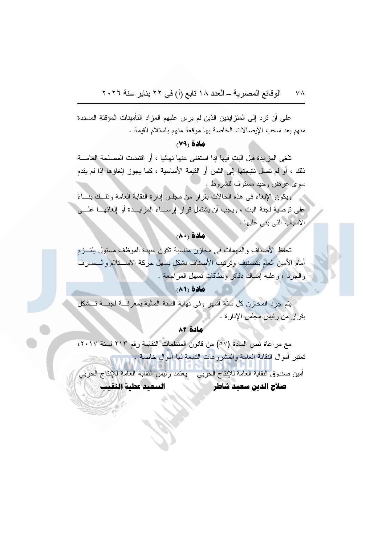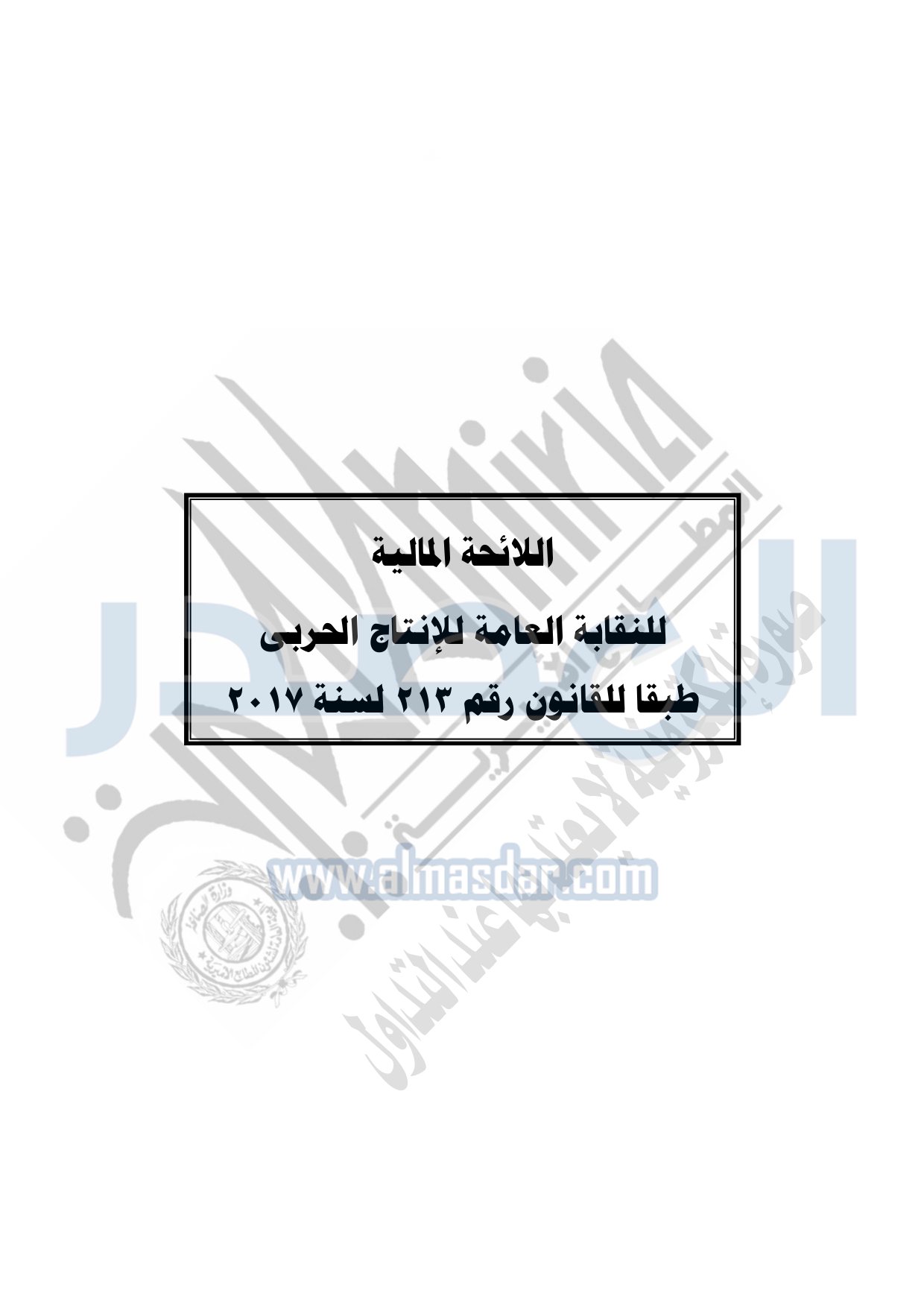 نشر باللائحة المالية للنقابة العامة للعاملين بالإنتاج الحربي وكذلك لائحة النظام الأساسى للنقابة العامة للعاملين بالإنتاج الحربي بجريدة الوقائع المصرية بعد اعتمادها من وزارة القوى العاملة.