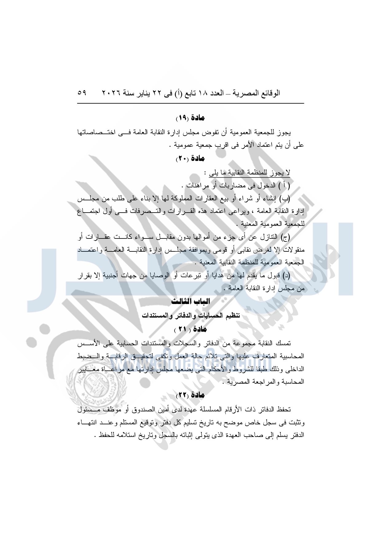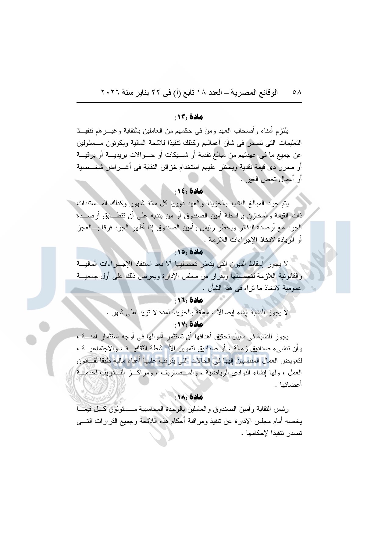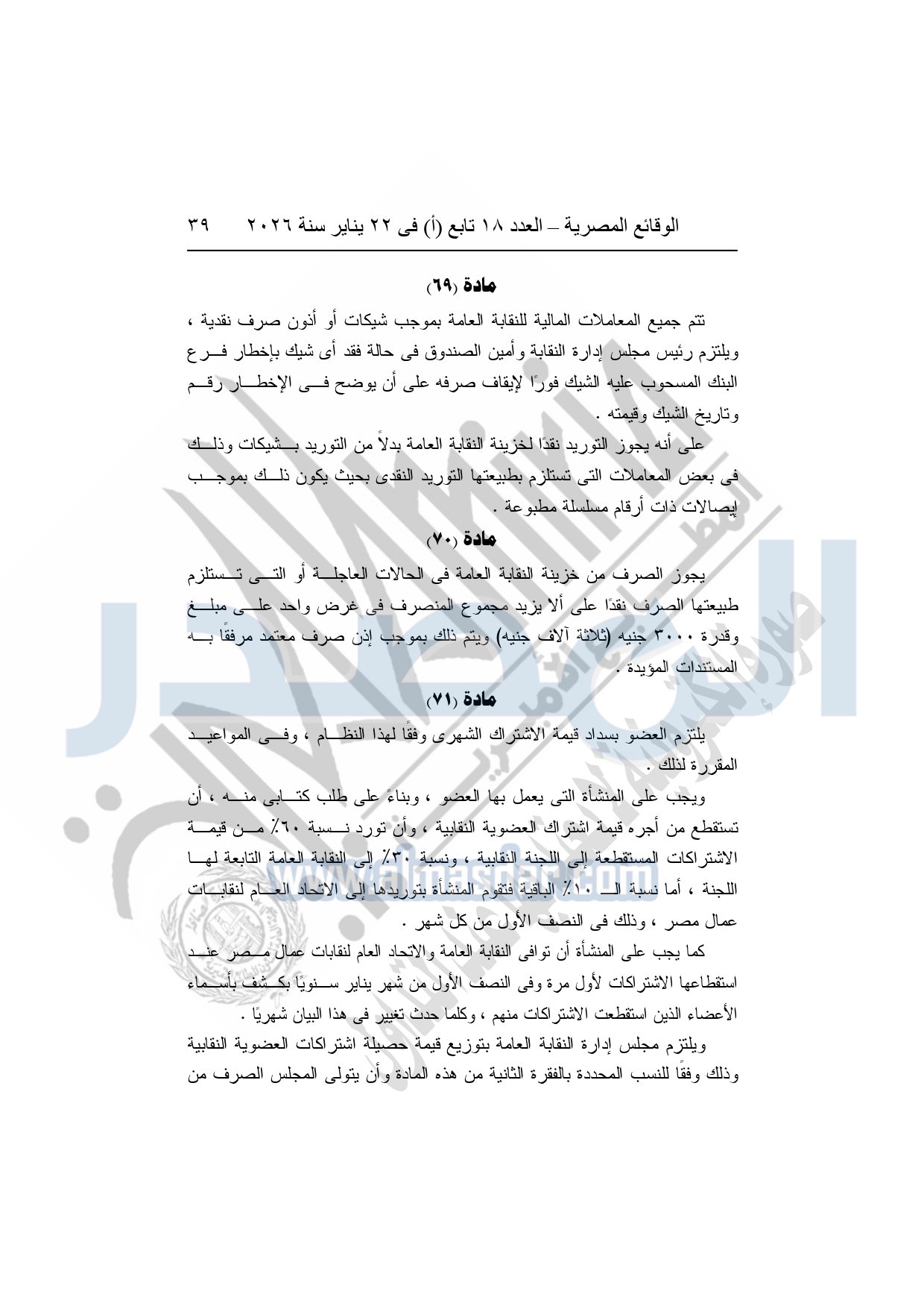 نشر باللائحة المالية للنقابة العامة للعاملين بالإنتاج الحربي وكذلك لائحة النظام الأساسى للنقابة العامة للعاملين بالإنتاج الحربي بجريدة الوقائع المصرية بعد اعتمادها من وزارة القوى العاملة.