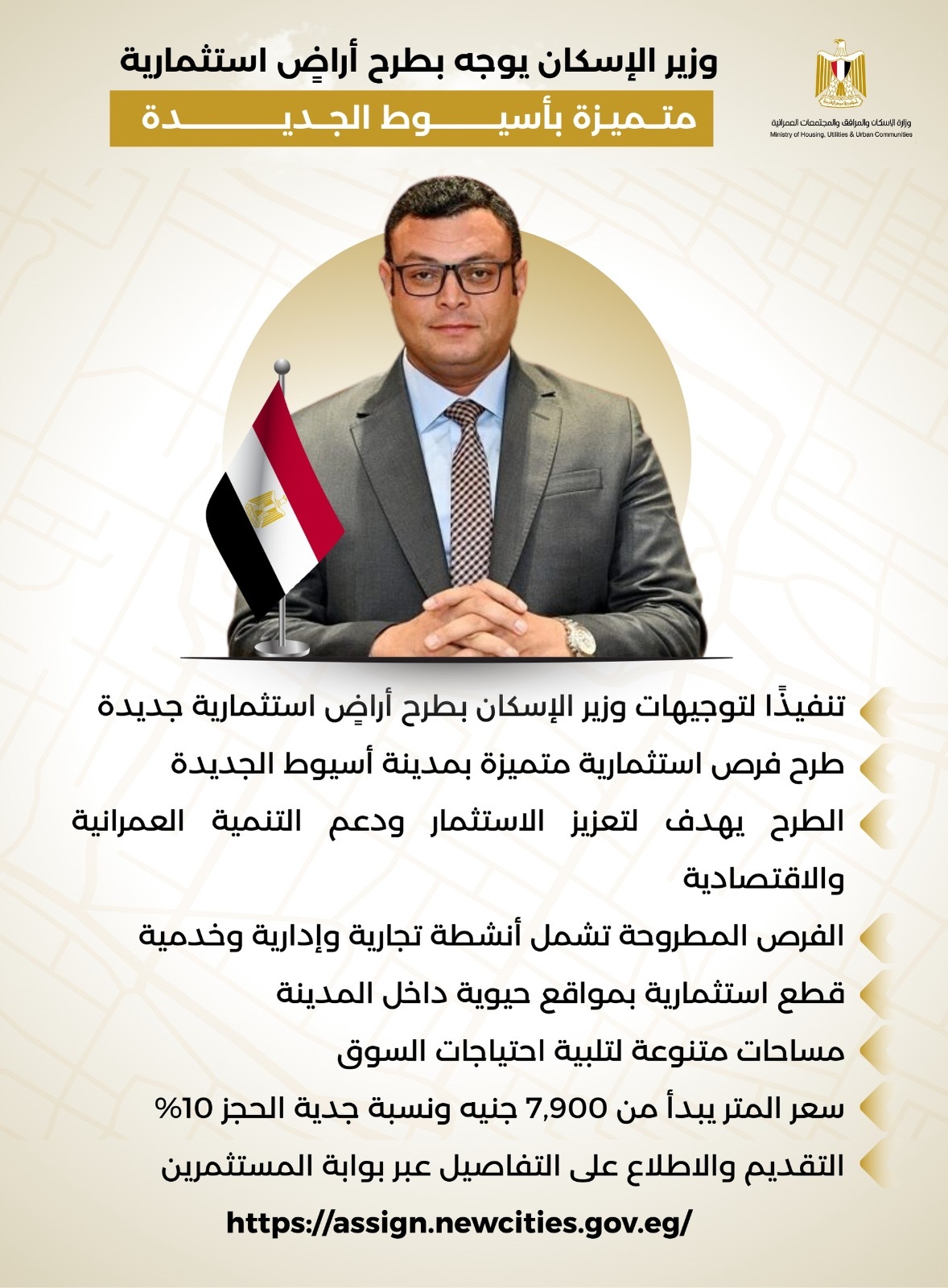 طرح أراضٍ استثمارية بمواقع متميزة في مدينة أسيوط الجديدة