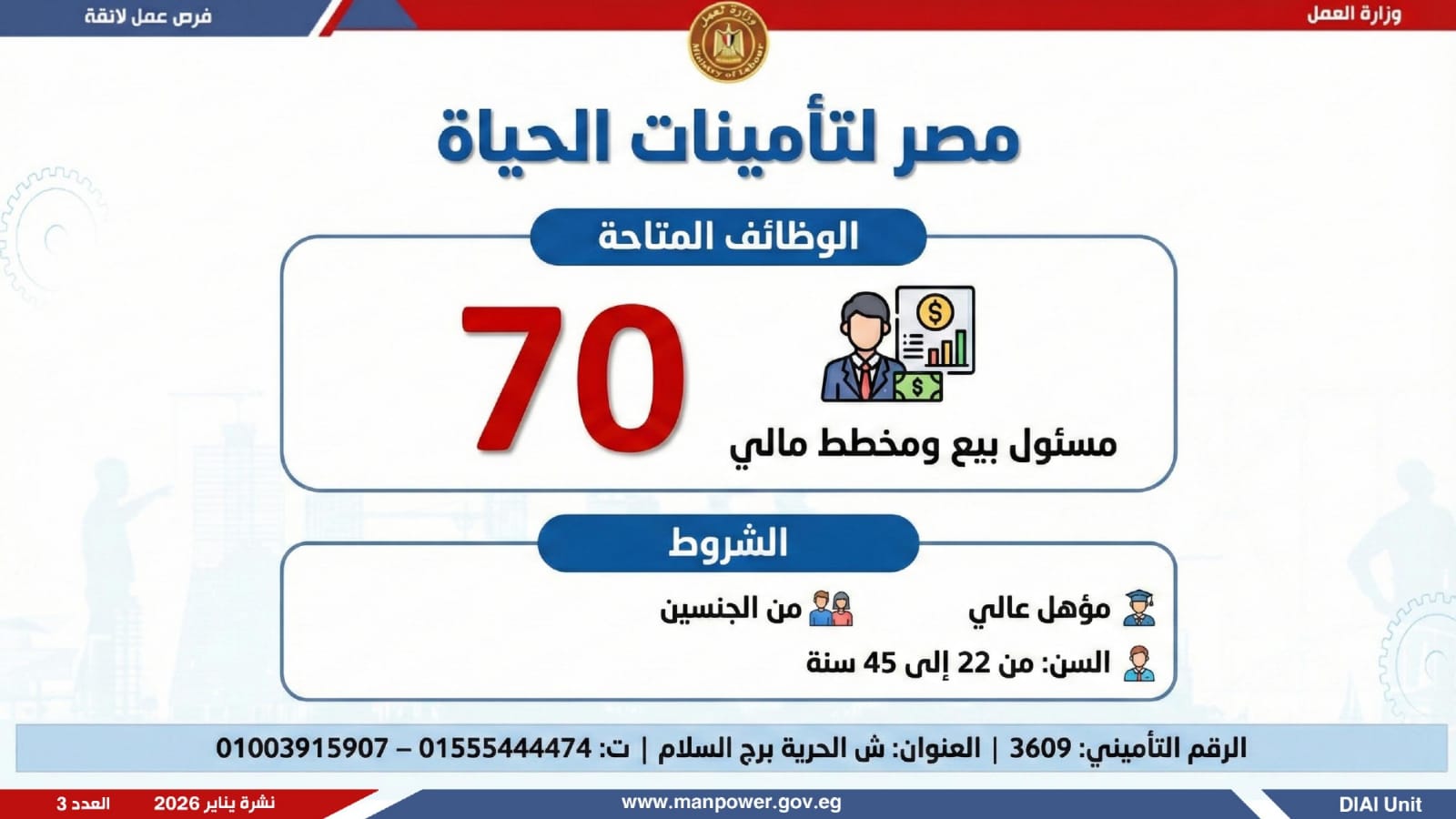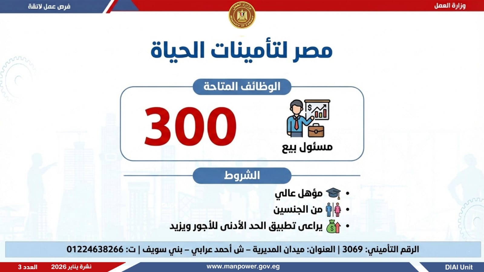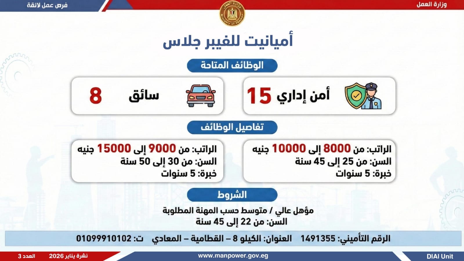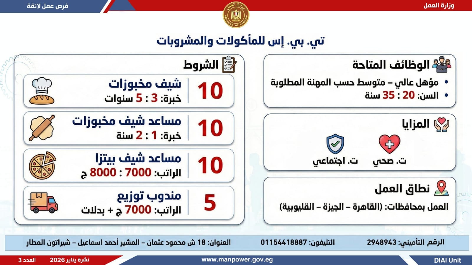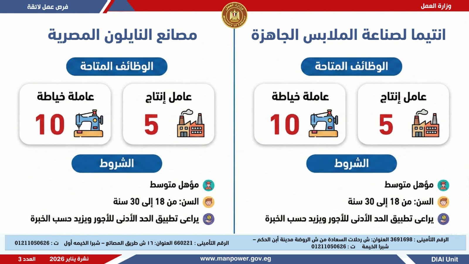 وتغطي النشرة الحالية فرص عمل بمحافظات القاهرة، القليوبية، الإسكندرية، الغربية، الإسماعيلية، المنيا، سوهاج، بني سويف، والمنوفية، قنا، ودمياط والفيوم.