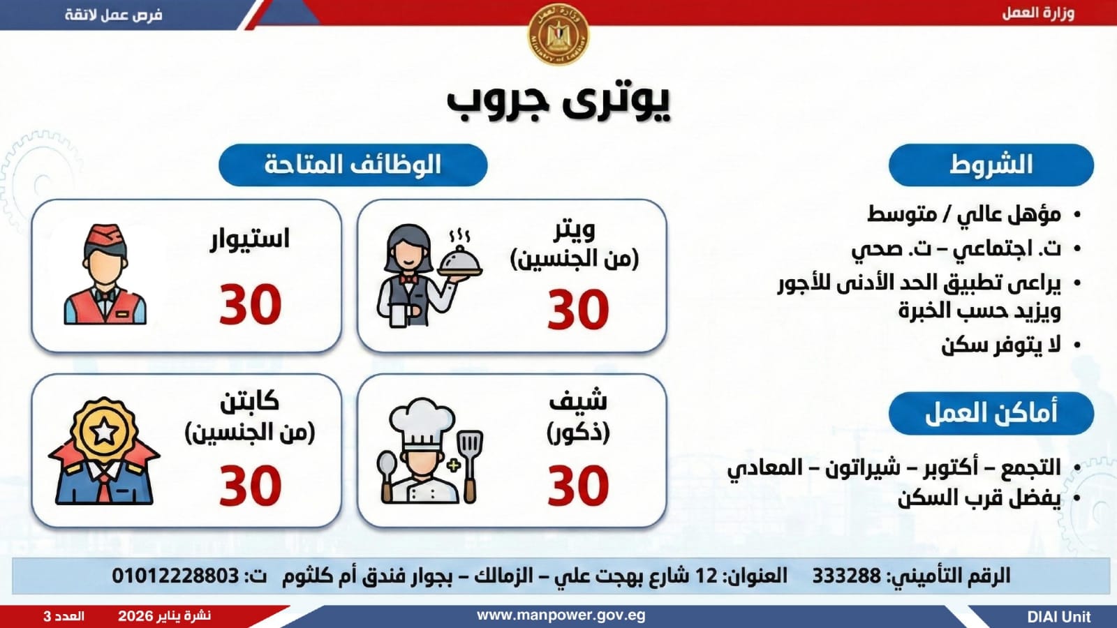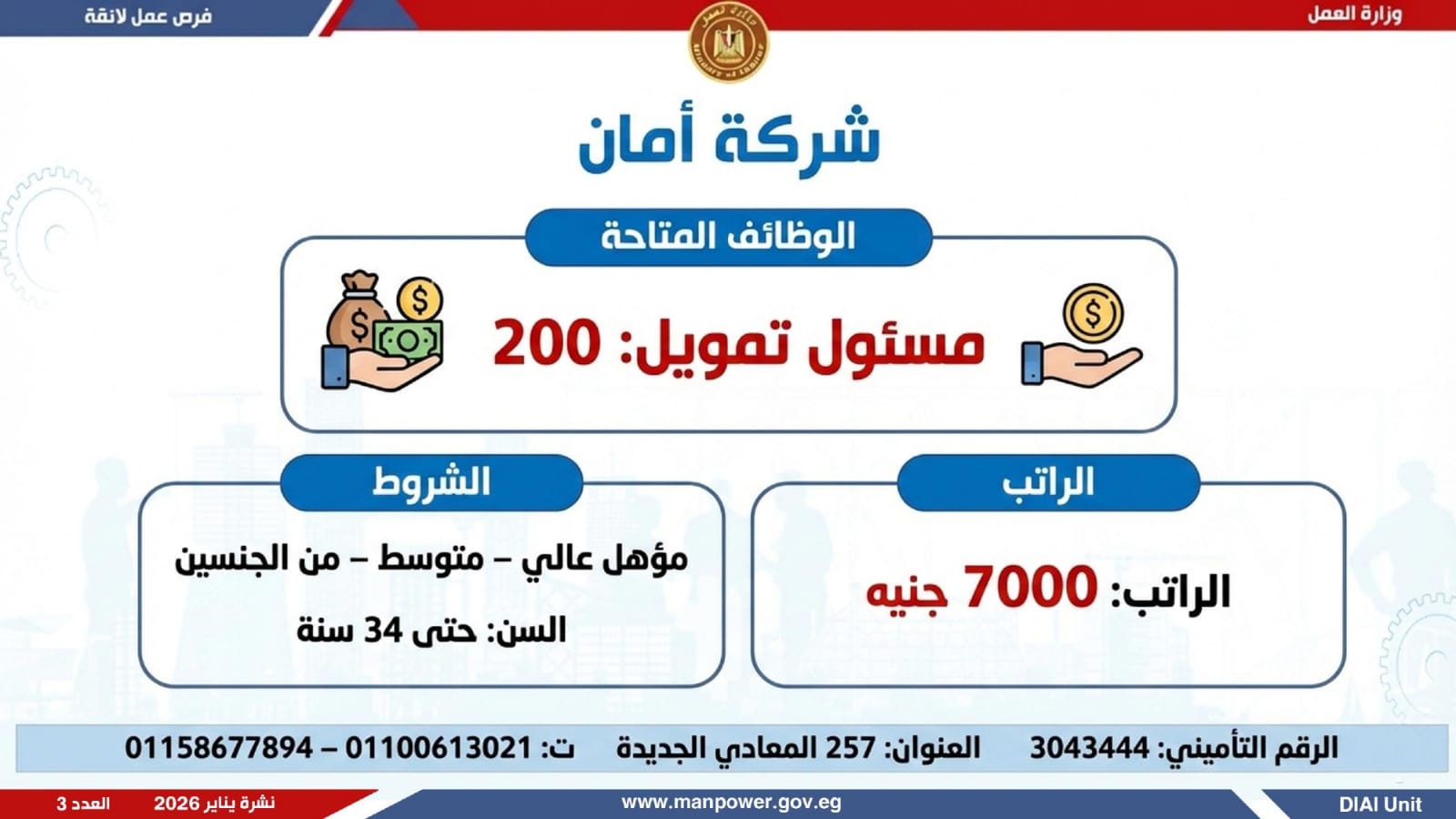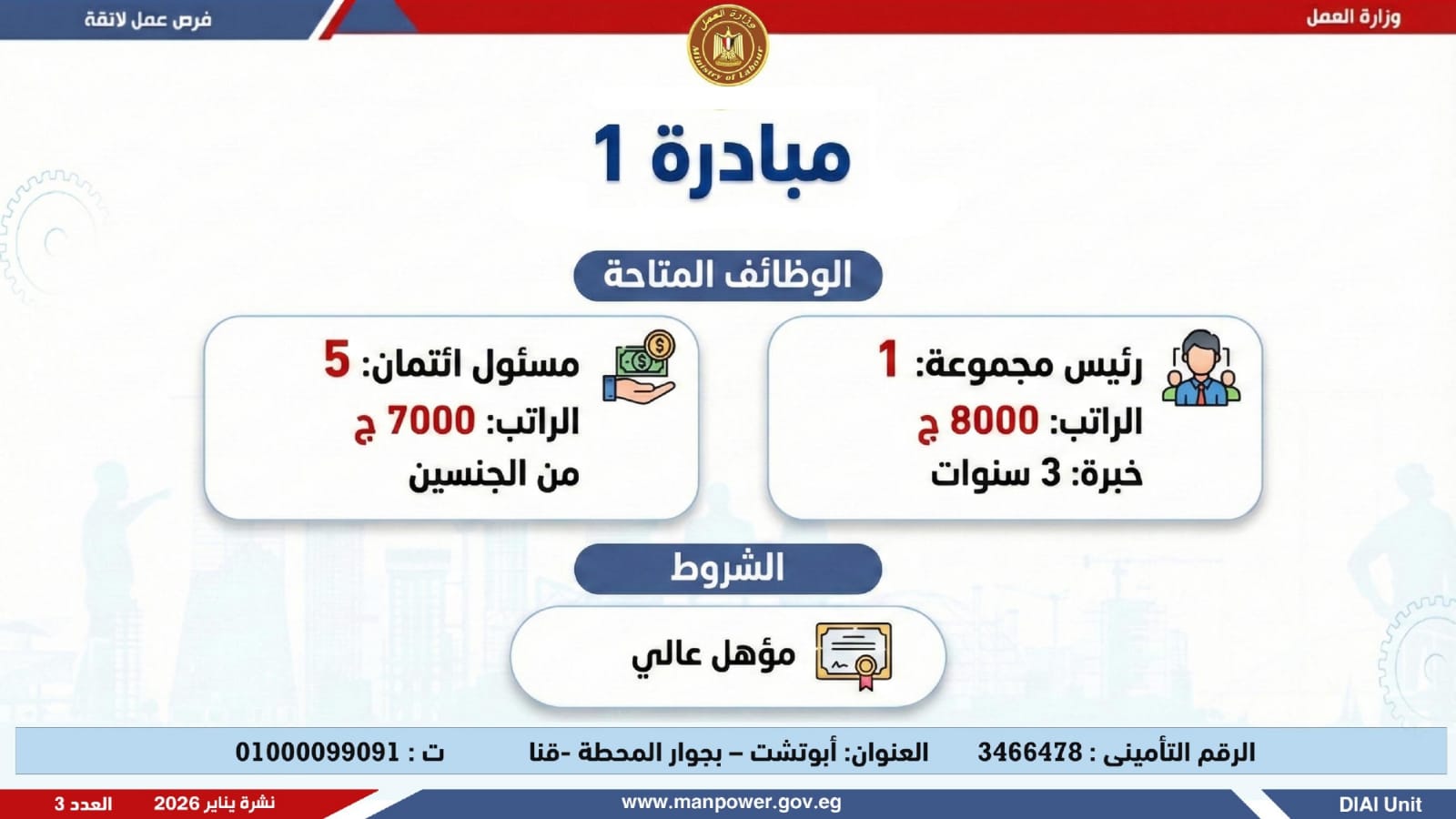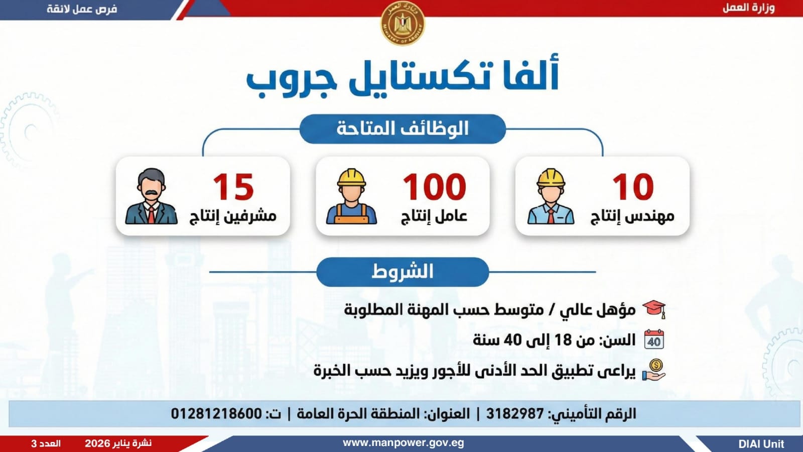 وتغطي النشرة الحالية فرص عمل بمحافظات القاهرة، القليوبية، الإسكندرية، الغربية، الإسماعيلية، المنيا، سوهاج، بني سويف، والمنوفية، قنا، ودمياط والفيوم.