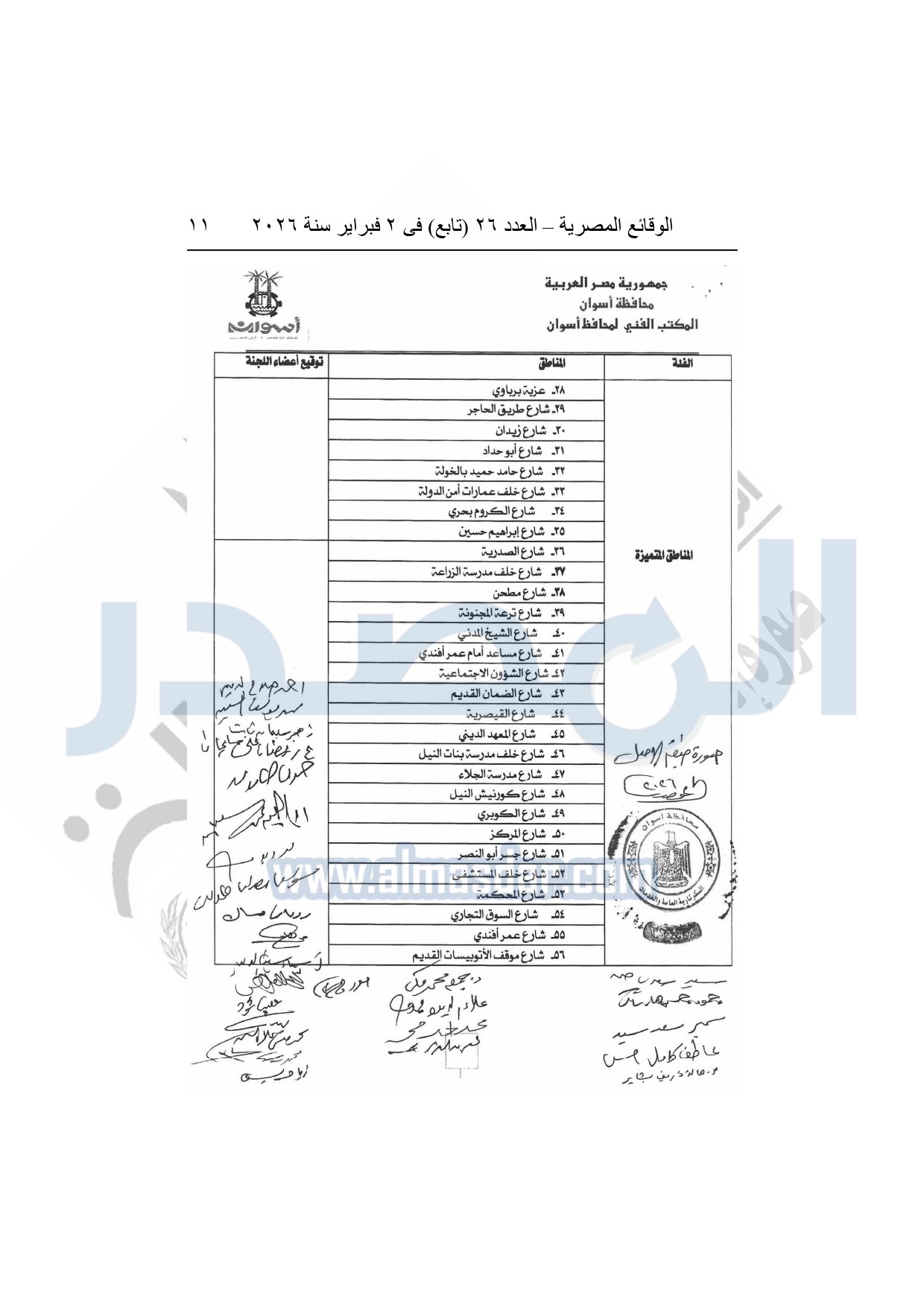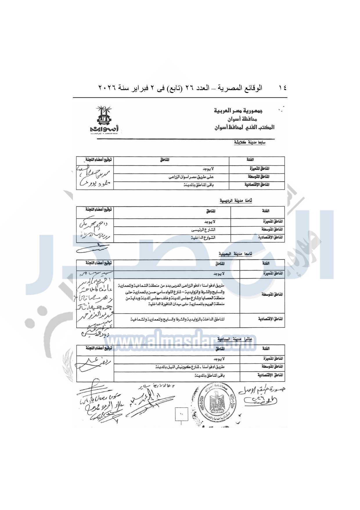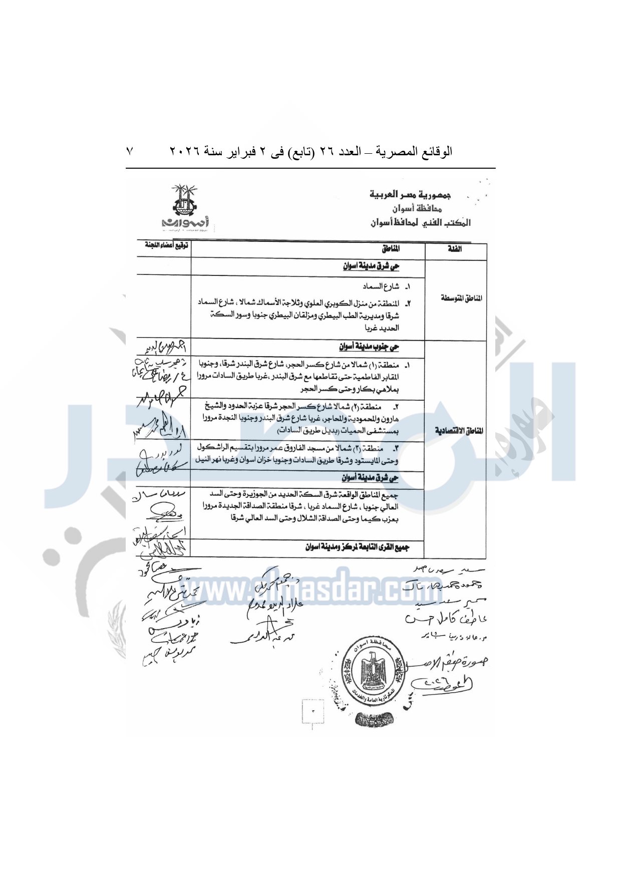 نشرت الوقائع المصرية في العدد 26 "تابع"، الصادر في 2 فبراير سنة 2026، قرار محافظة أسوان، رقم 10 لسنة 2026، بشأن بعض الأحكام المتعلقة بقوانين إيجار الأماكن وإعادة تنظيم العلاقة بين المؤجر والمستأجر بنطاق محافظة أسوان.
