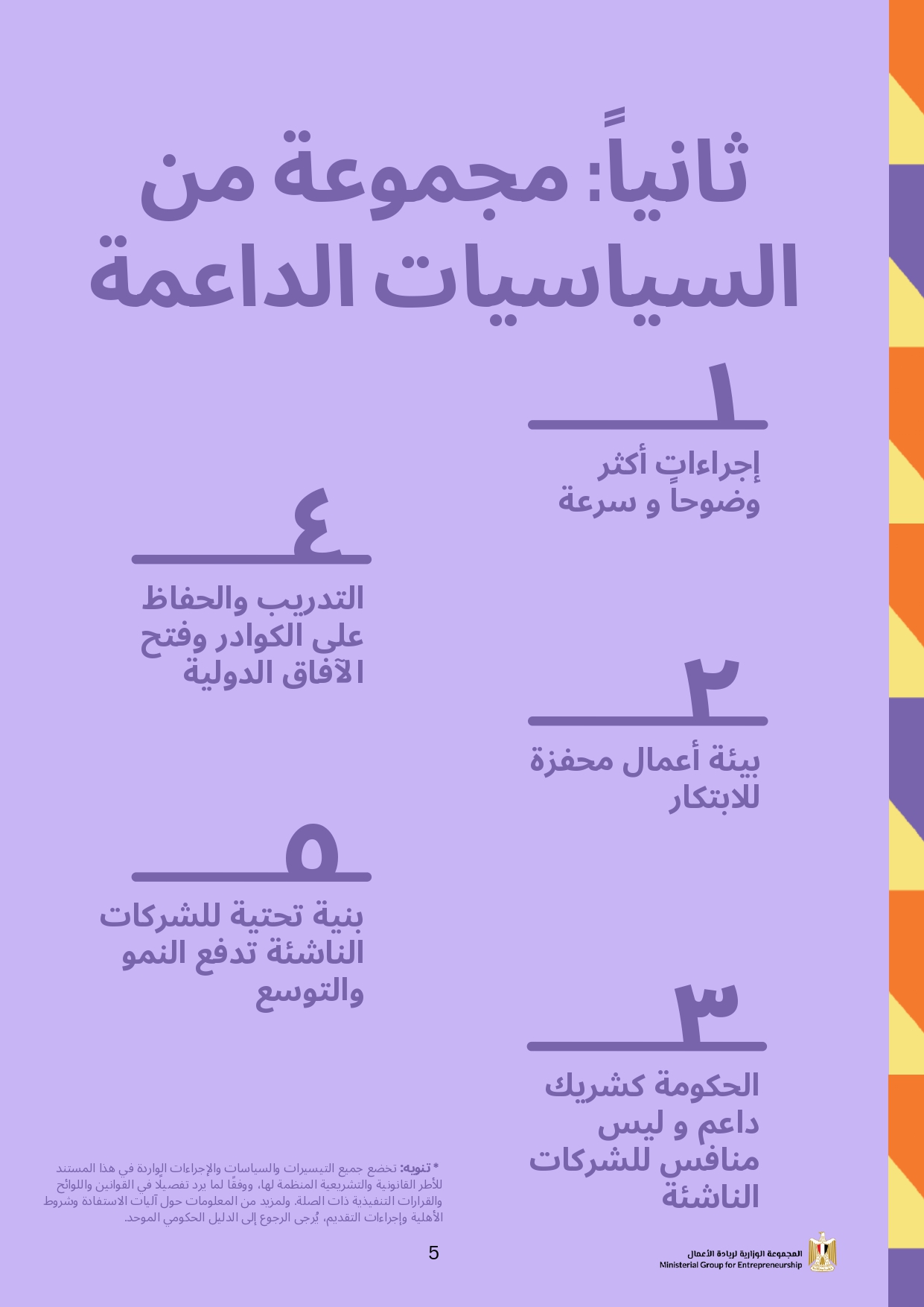 الإجراءات والسياسات لتحسين بيئة أعمال الشركات الناشئة
