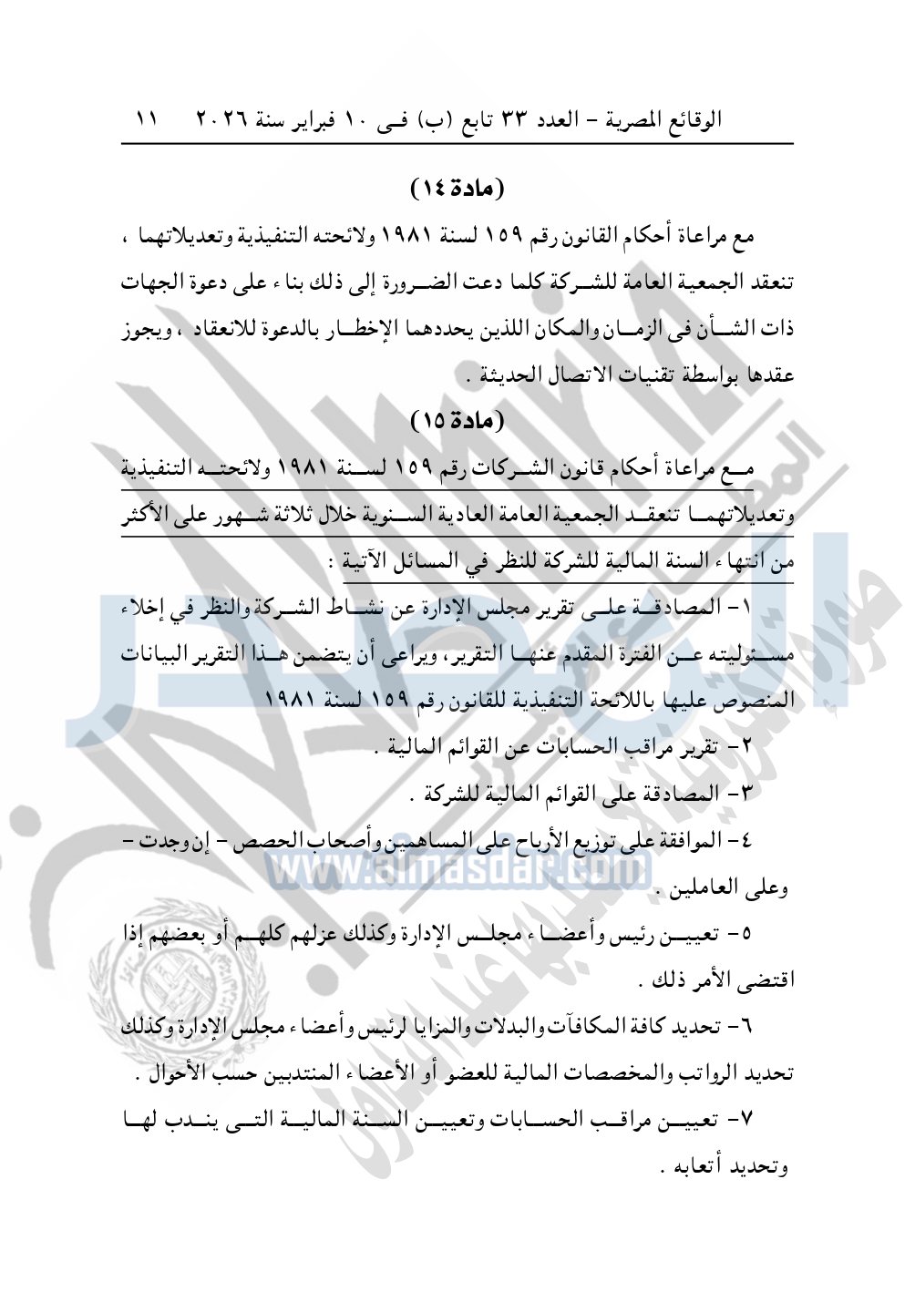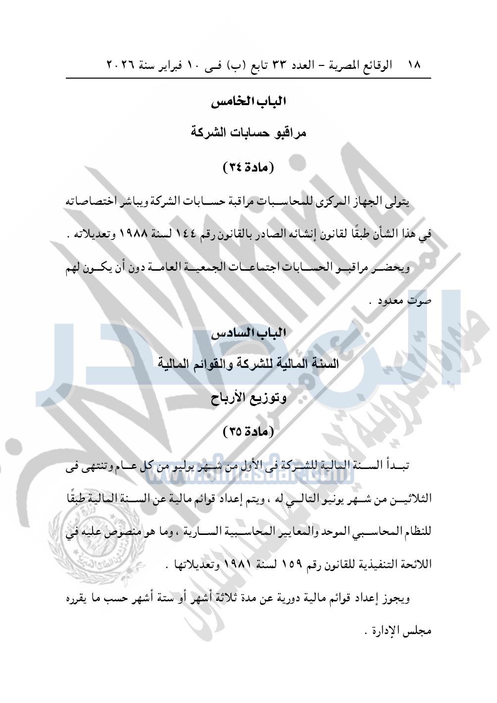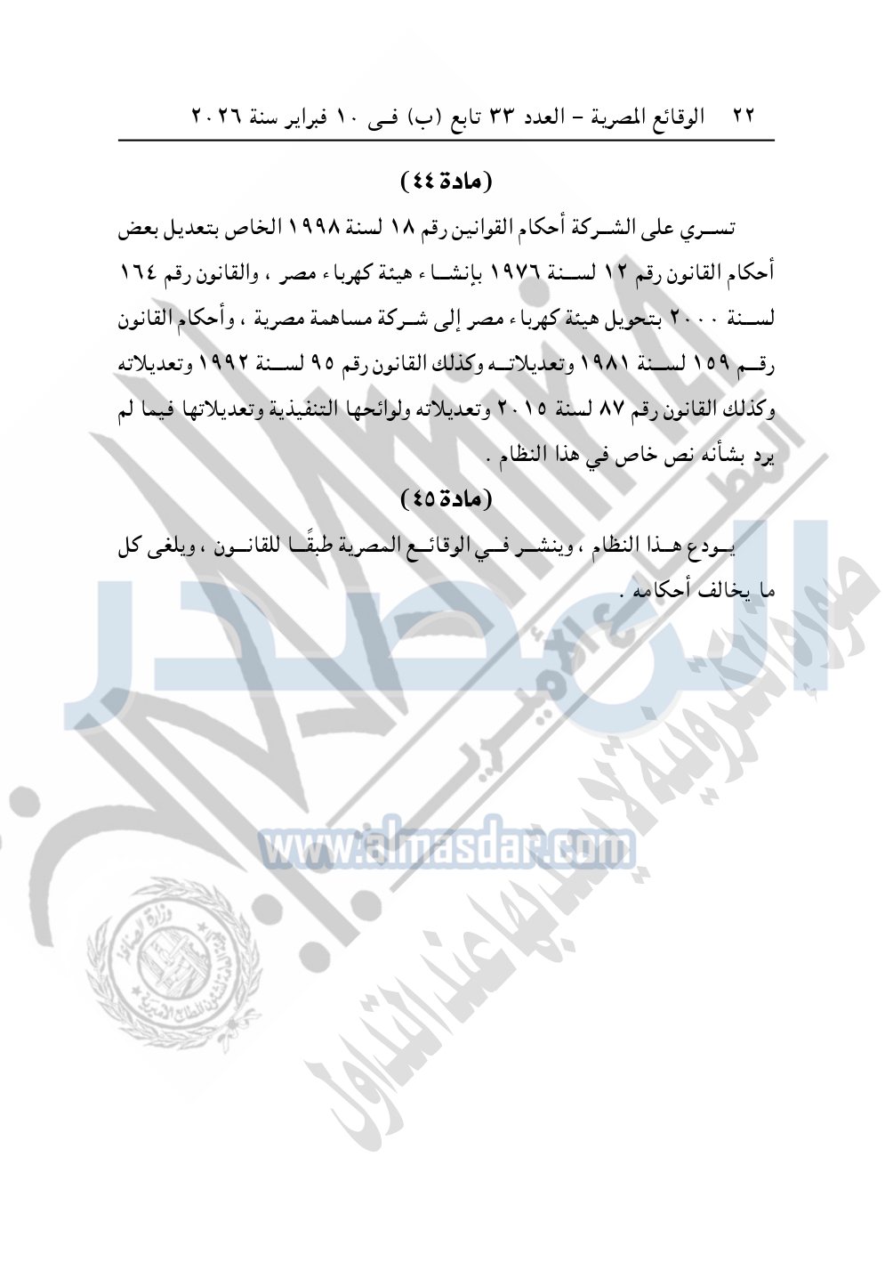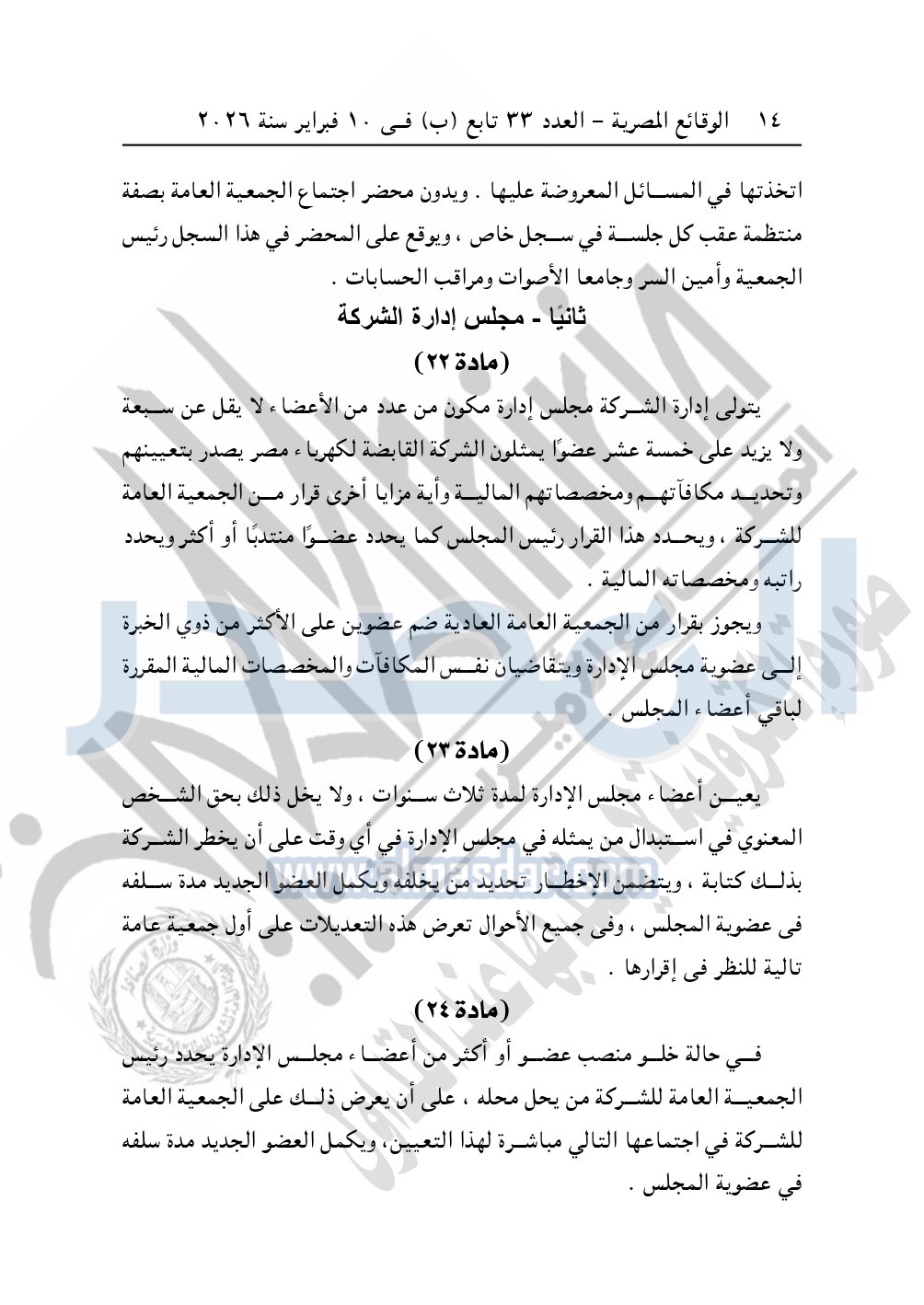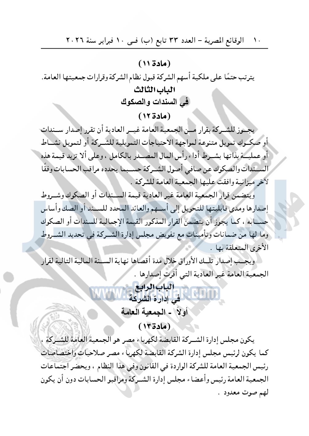 نشرت الوقائع المصرية، في العدد 33 تابع "ب"، الصادر في 10 فبراير سنة 2026، الشركة القابضة لكهرباء مصر، قرار الجمعية العامة غير العادية، لشركة جنوب القاهرة لتوزيع الكهرباء، المنعقدة بتاريخ 18-11-2025.