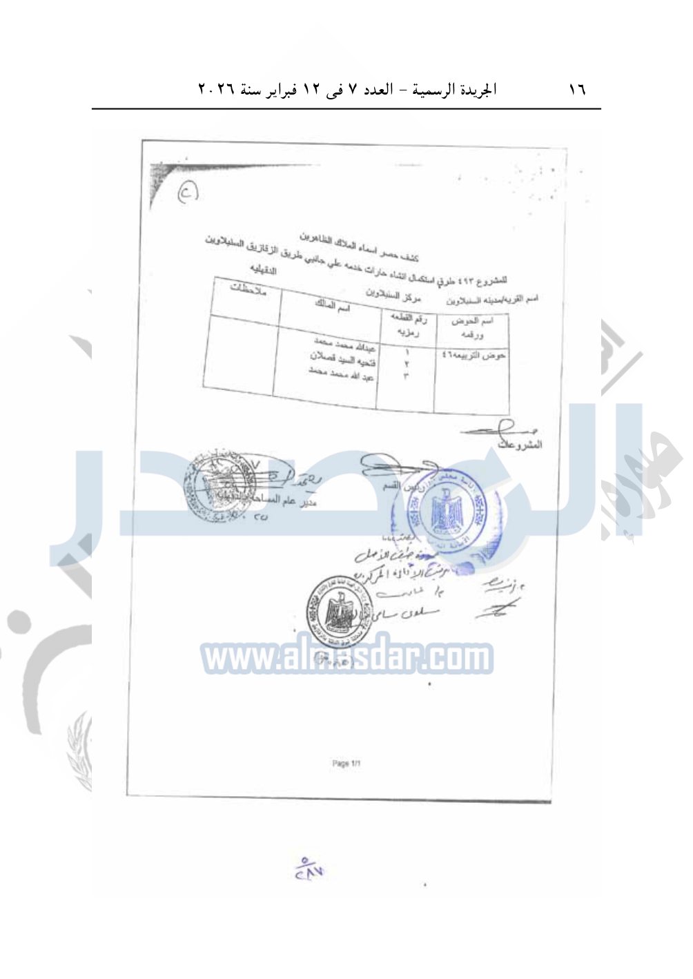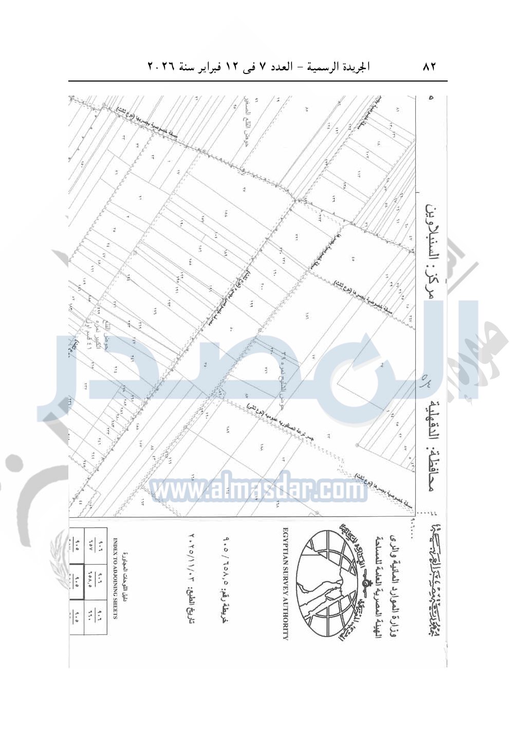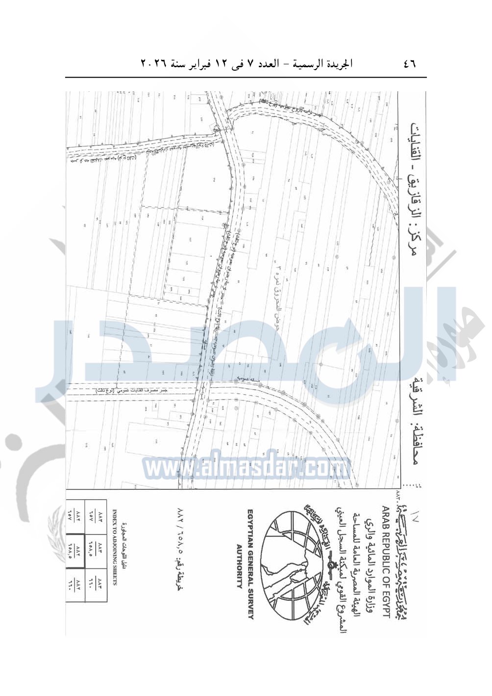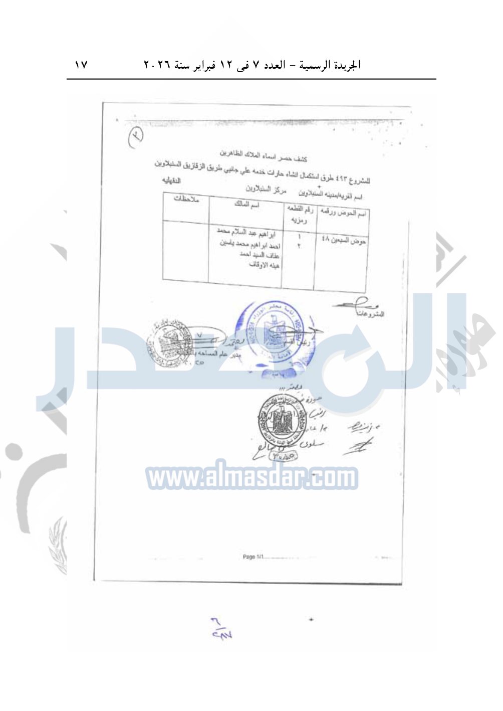 نشرت الجريدة الرسمية، في العدد 7، الصادر في 12 فبراير سنة 2026، قرار رئيس مجلس الوزراء، رقم 287 لسنة 2026، بشأن نزع ملكية بعض الأراضي لإنشاء استكمال مشروع استكمال إنشاء حارات خدمة على جانبي طريق "الزقازيق - السنبلاوين" في محافظتى الشرقية والدقهلية.