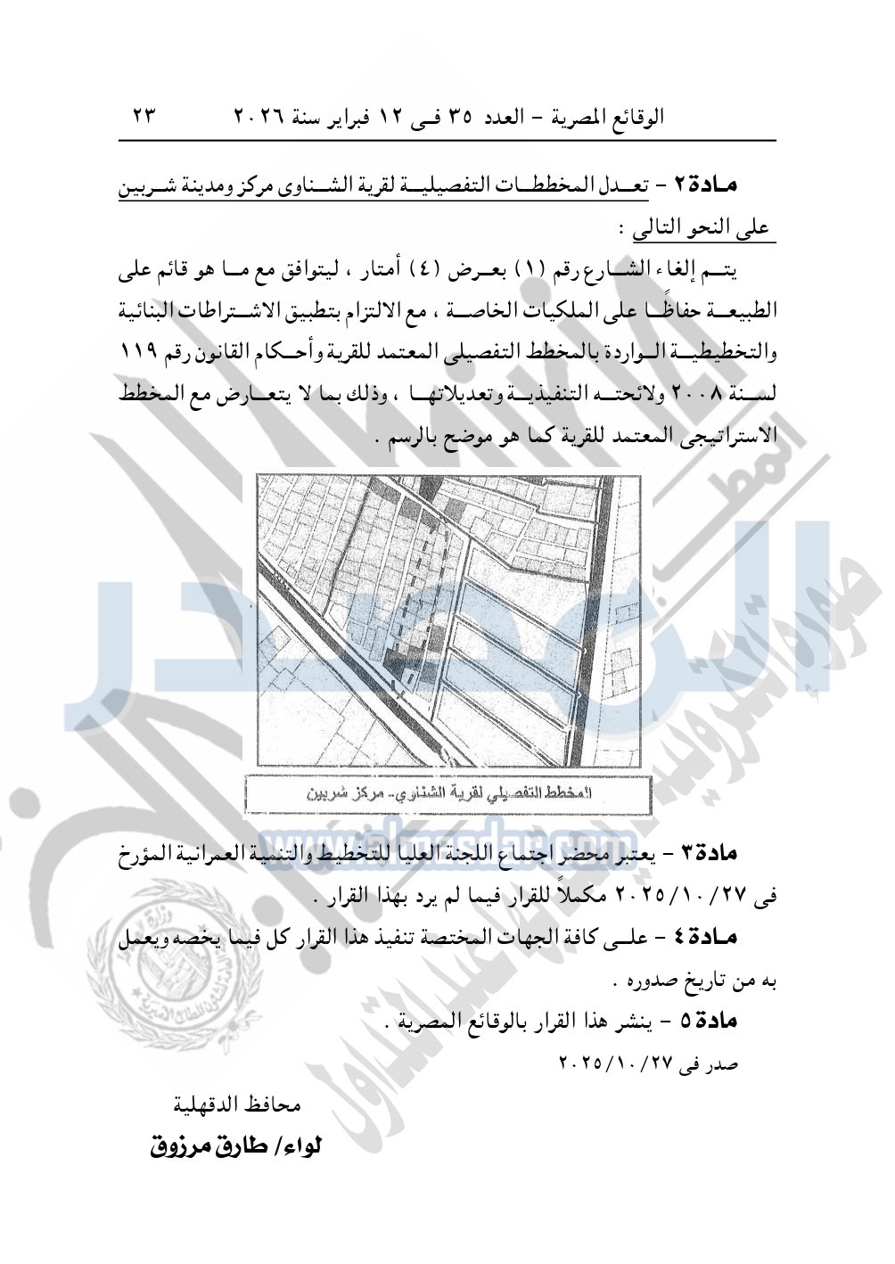 تعدل المخططات التفصيلية لقرية الشناوى مركز ومدينة شربين على النحو التالي: