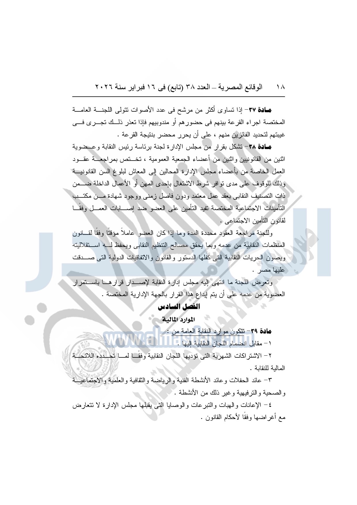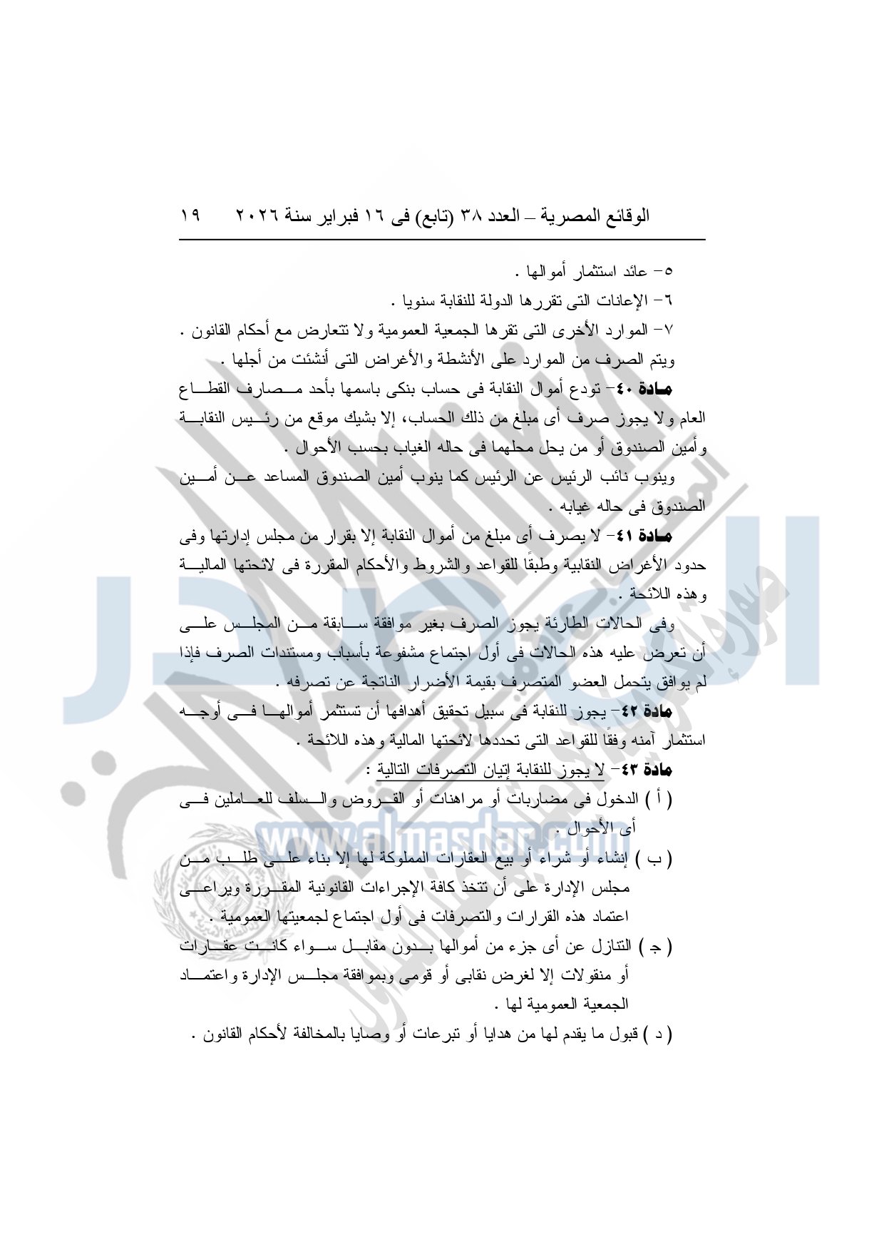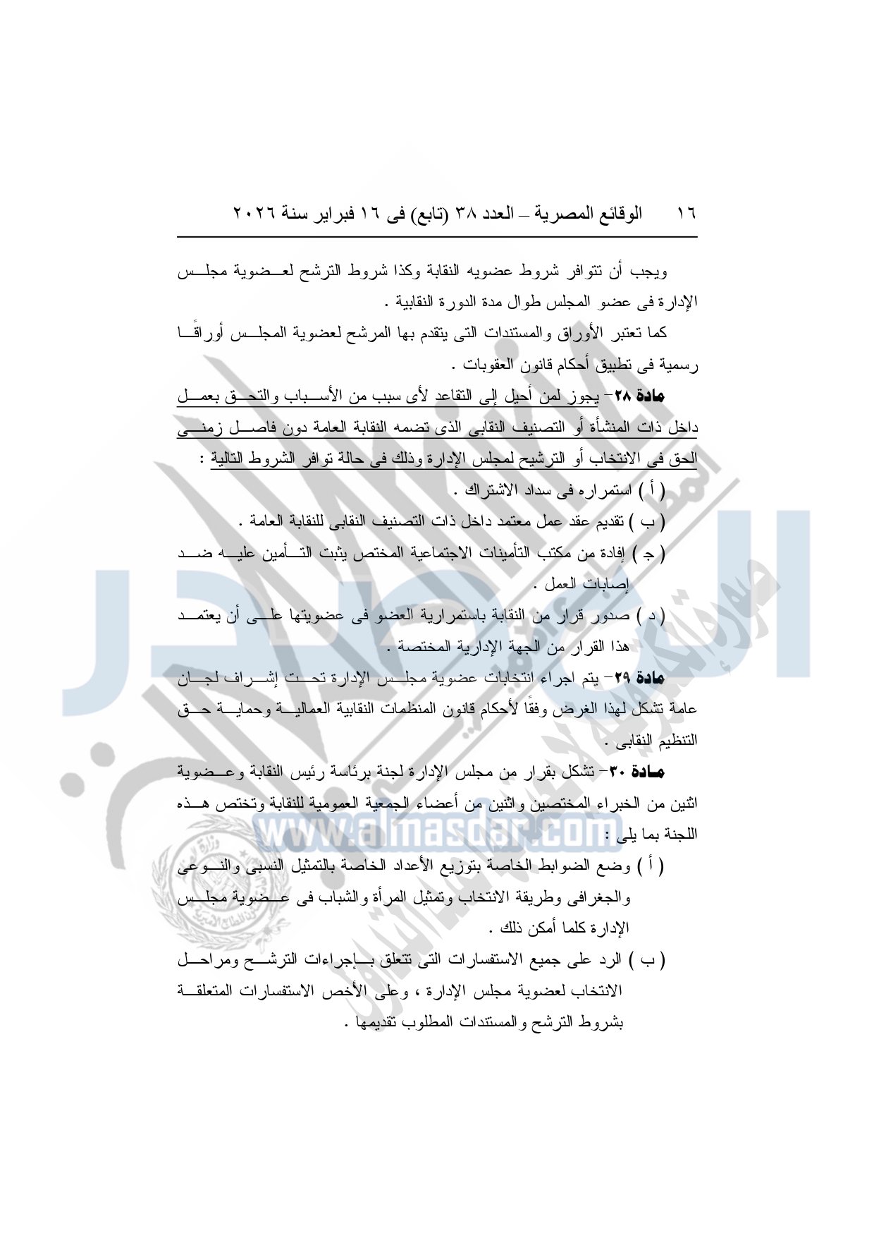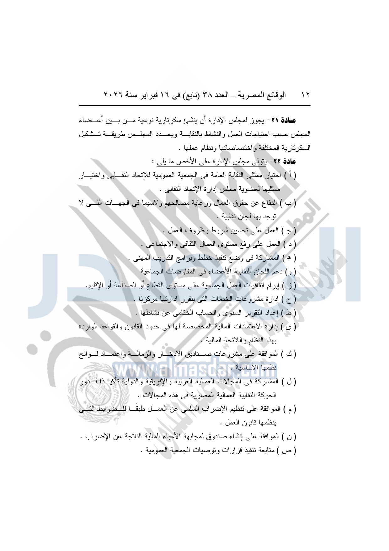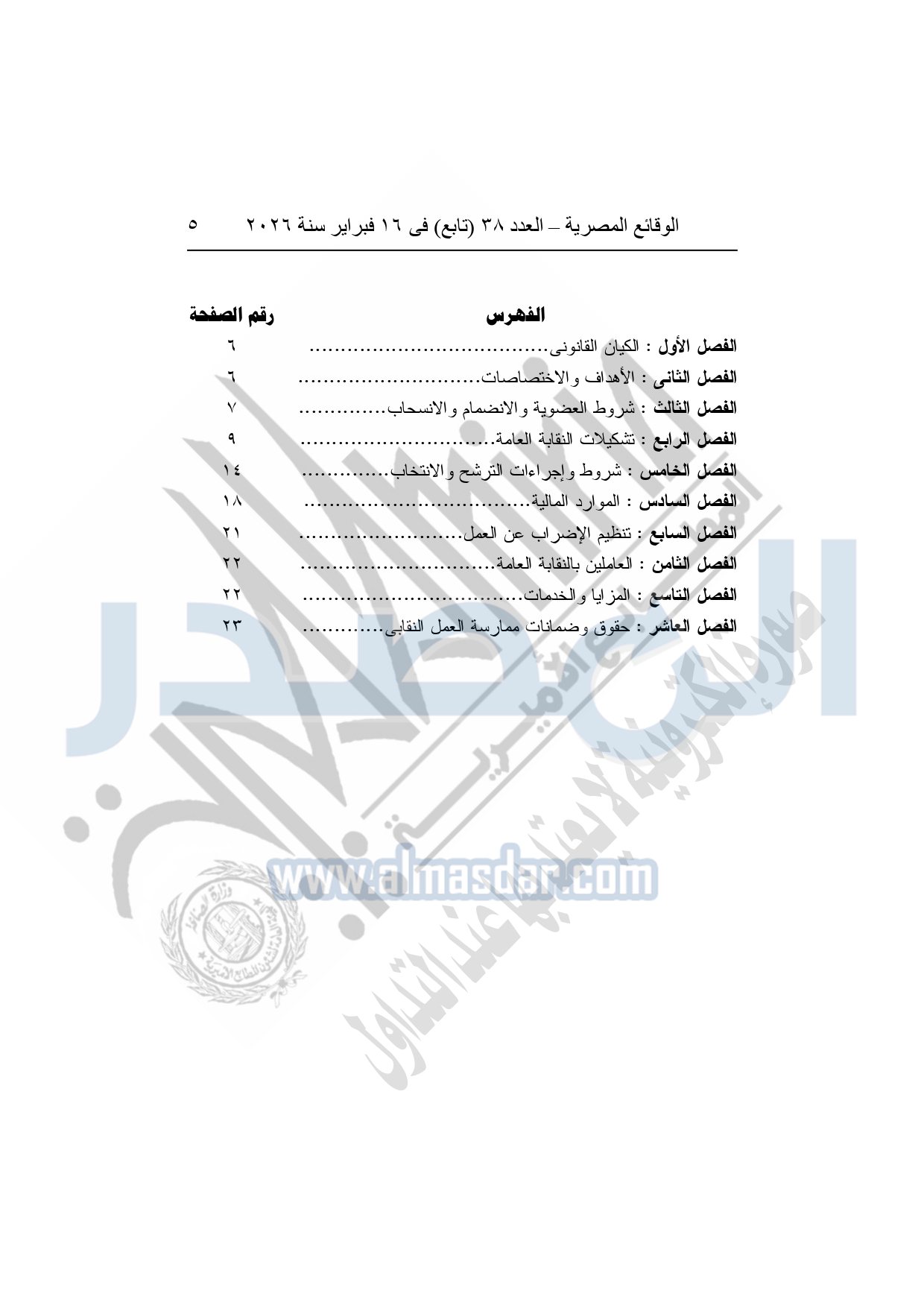 نشرت الوقائع المصرية، في العدد 38 "تابع"، الصادر في 16 فبراير سنة 2026، محافظة المنوفية، مديرية القوى العاملة - إدارة الرعاية، محضر إيداع، بشأن إصدار لائحة اللجنة النقابية بشركة العربي المتحدة للاستثمار الصناعى والتجارى بقويسنا.