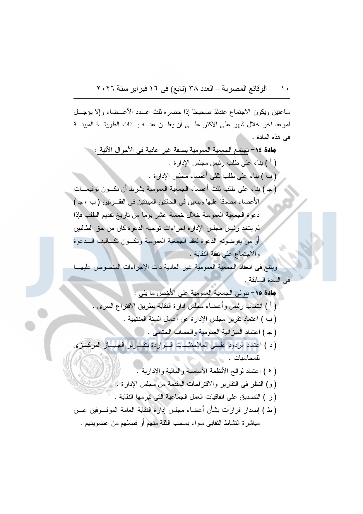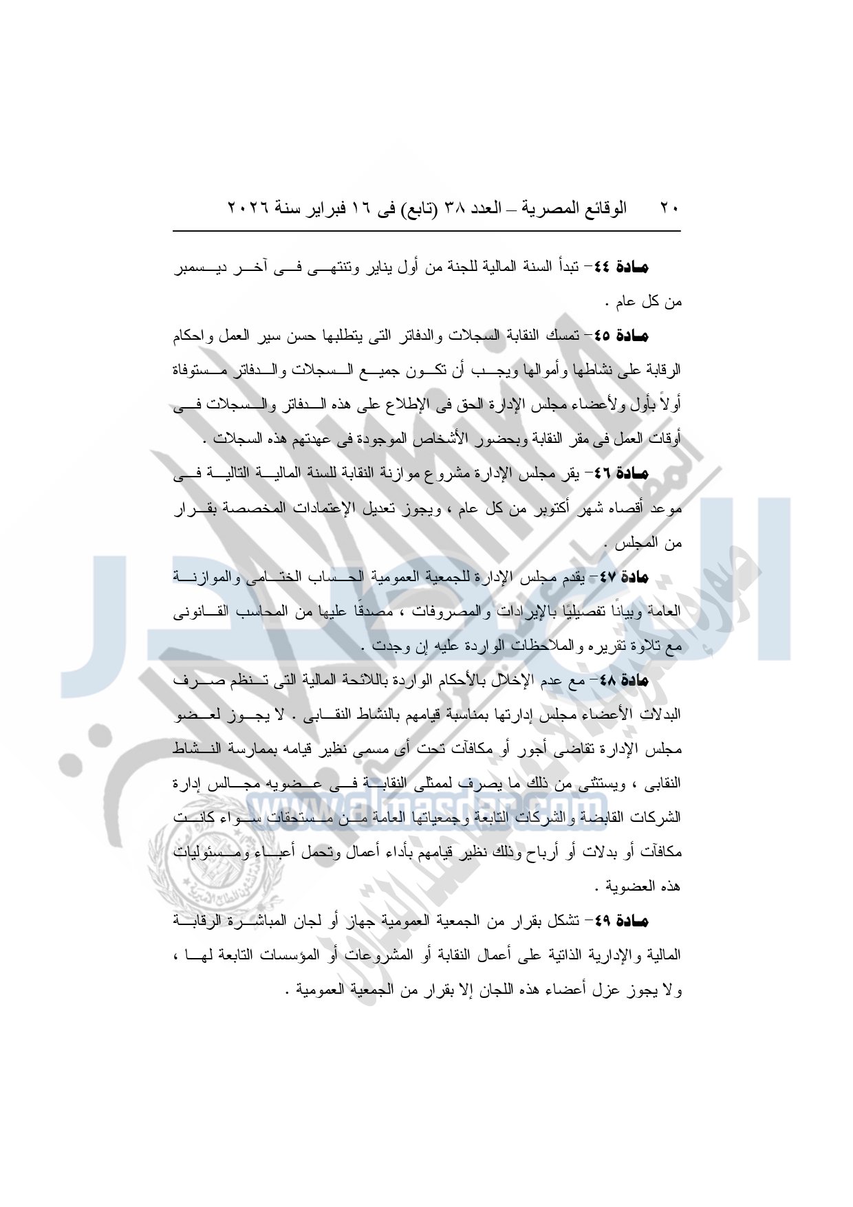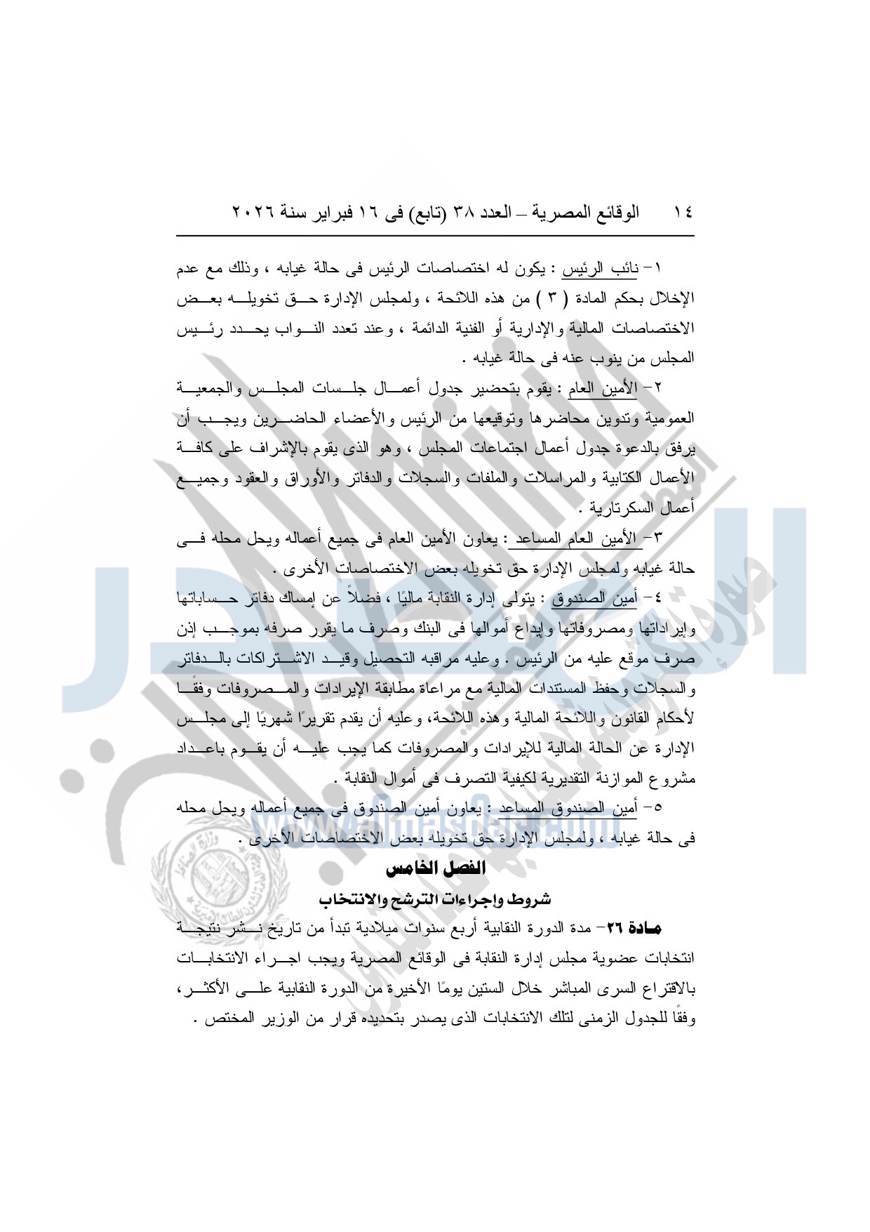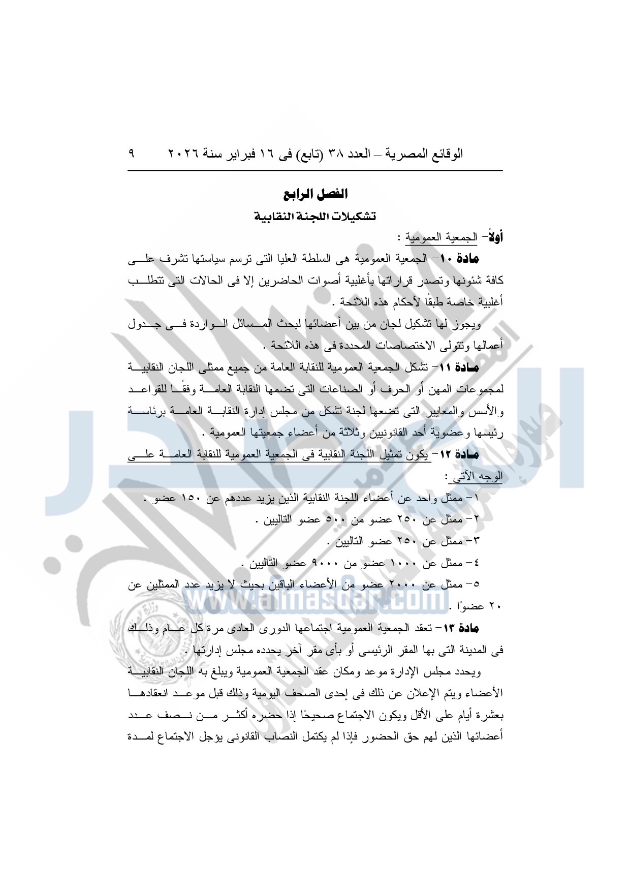 نشرت الوقائع المصرية، في العدد 38 "تابع"، الصادر في 16 فبراير سنة 2026، محافظة المنوفية، مديرية القوى العاملة - إدارة الرعاية، محضر إيداع، بشأن إصدار لائحة اللجنة النقابية بشركة العربي المتحدة للاستثمار الصناعى والتجارى بقويسنا.