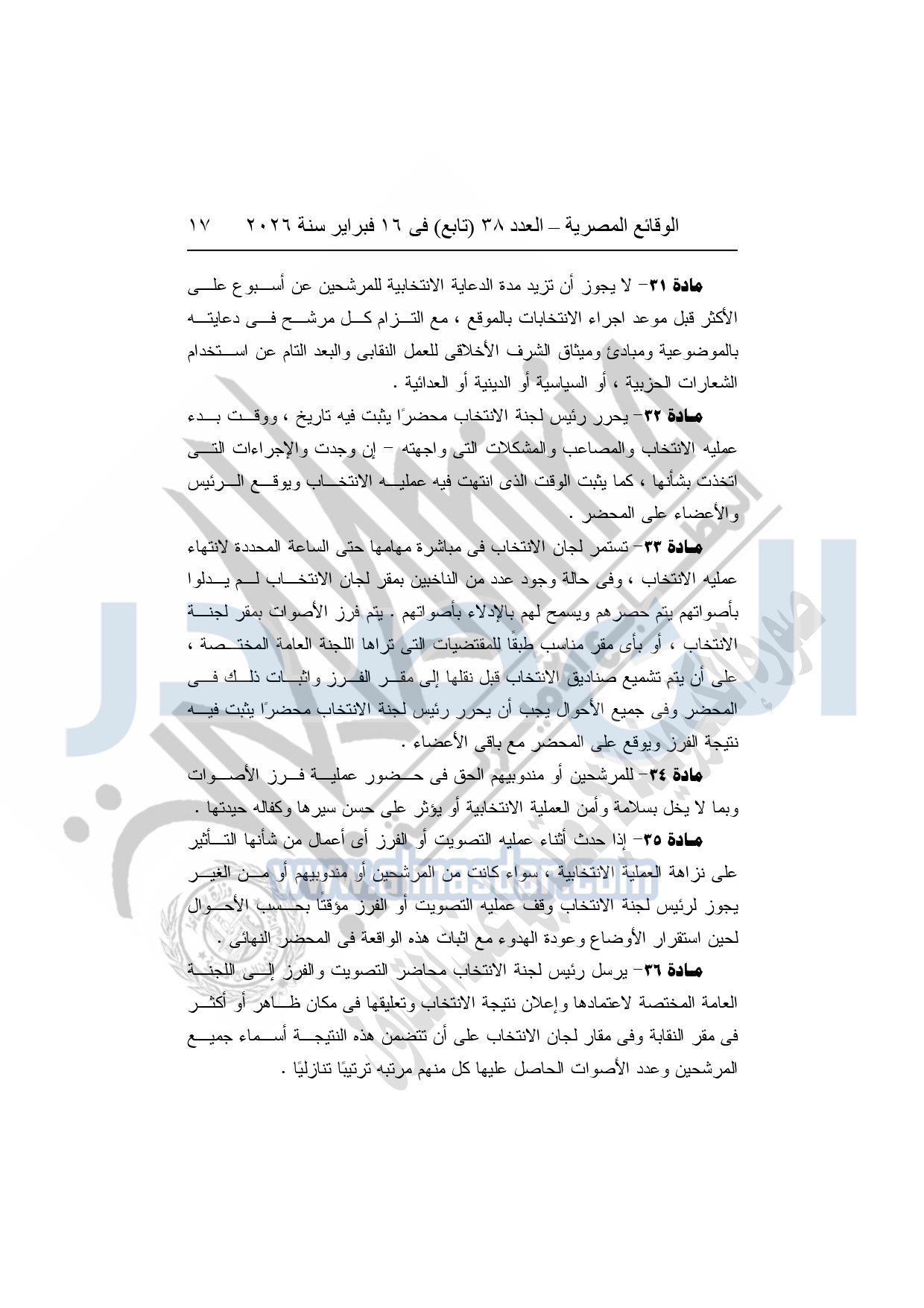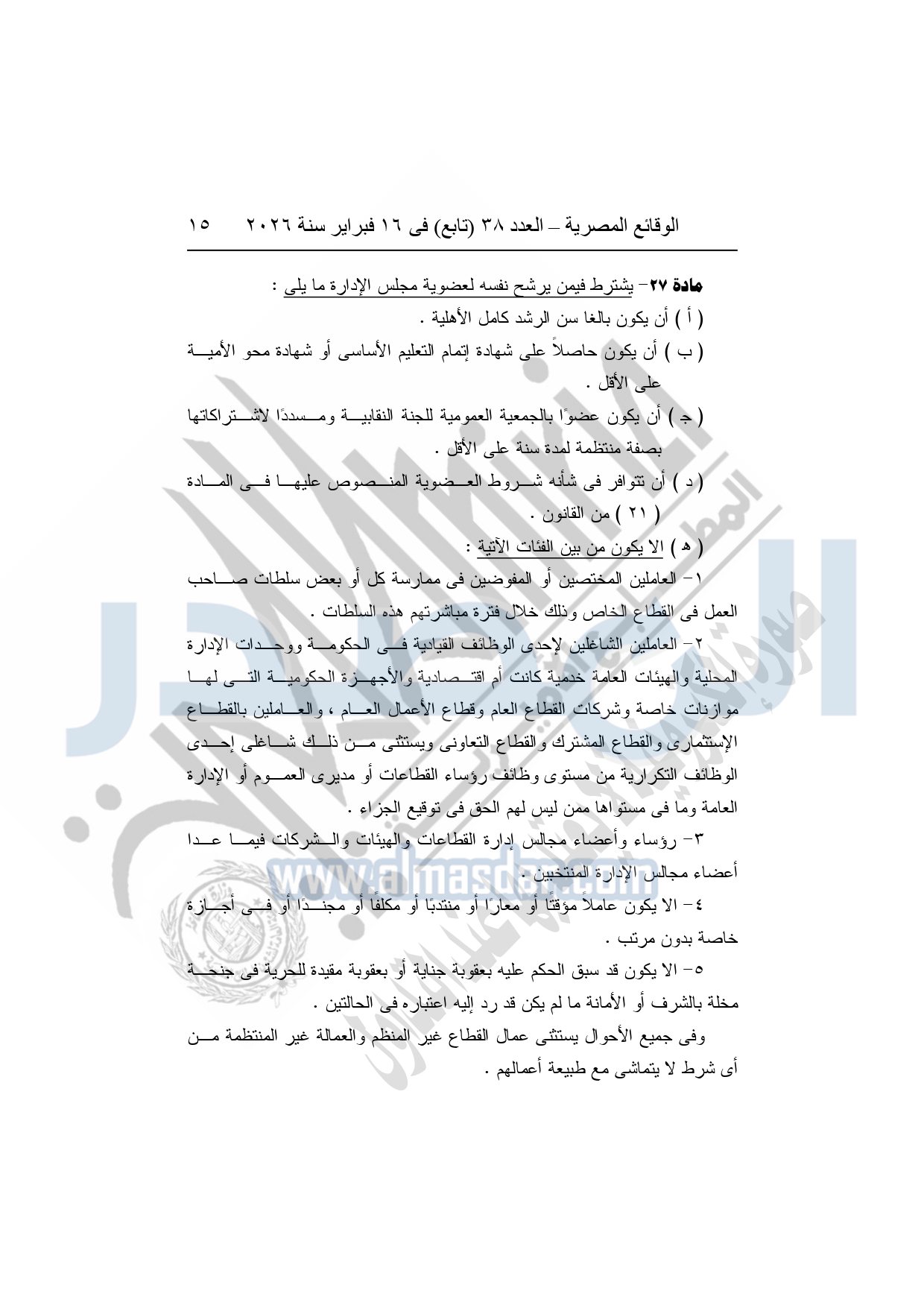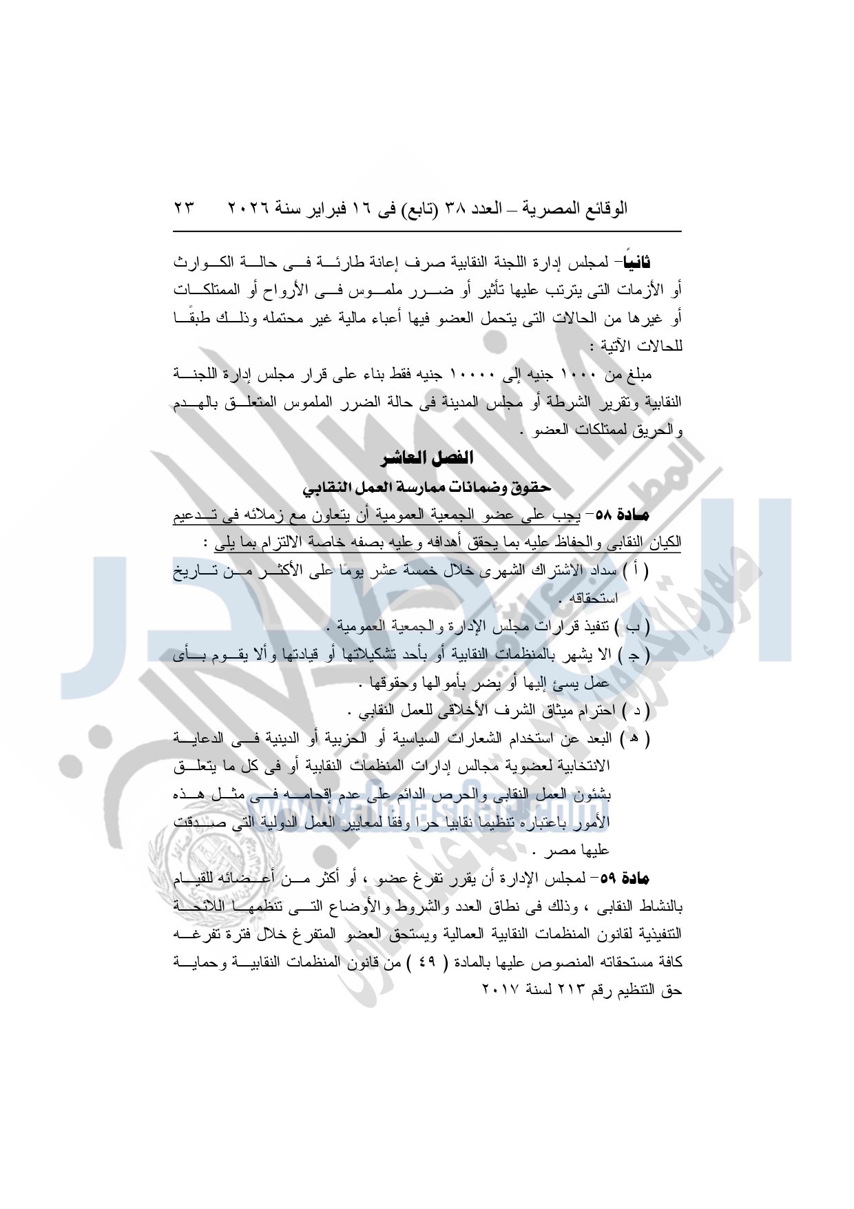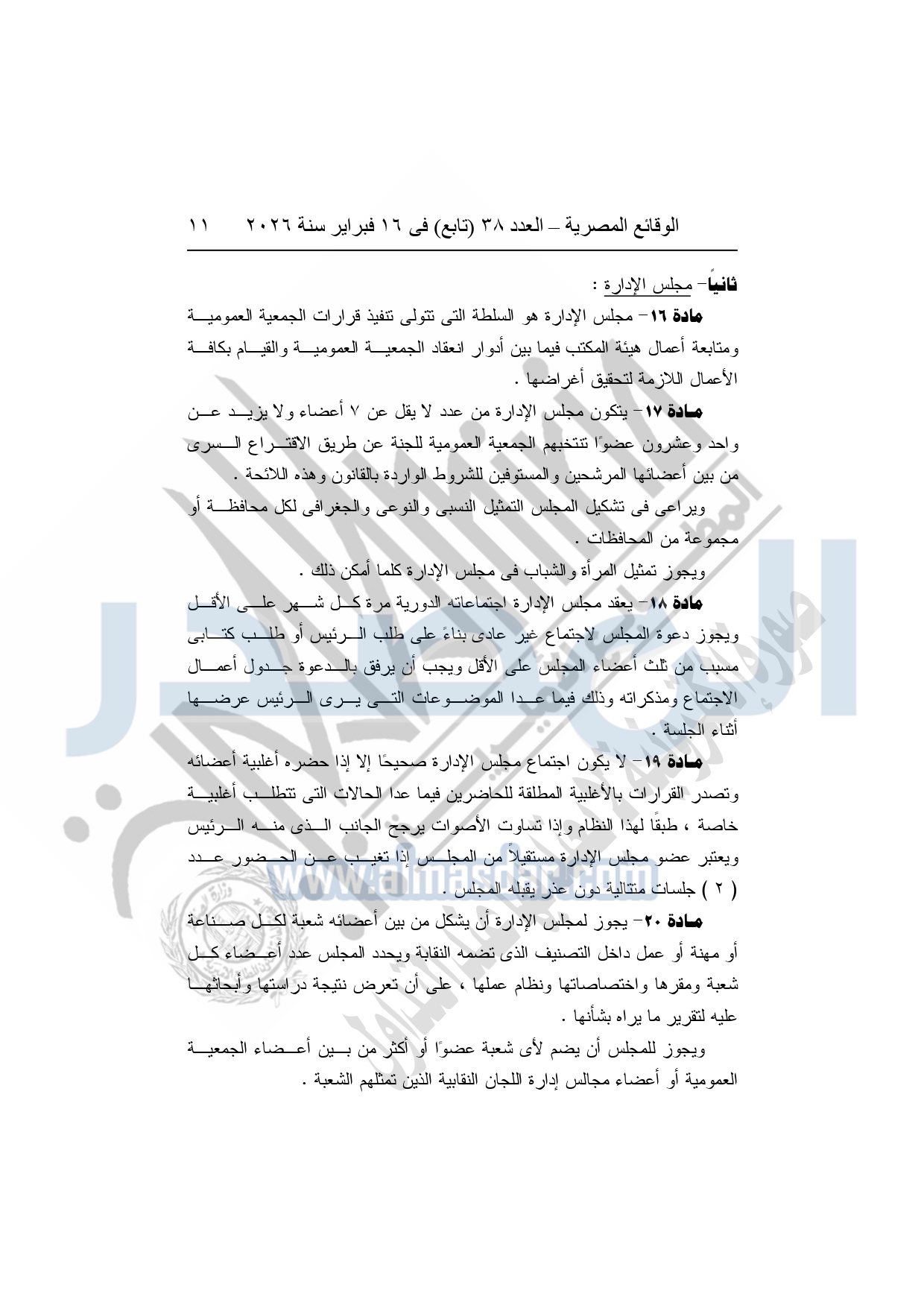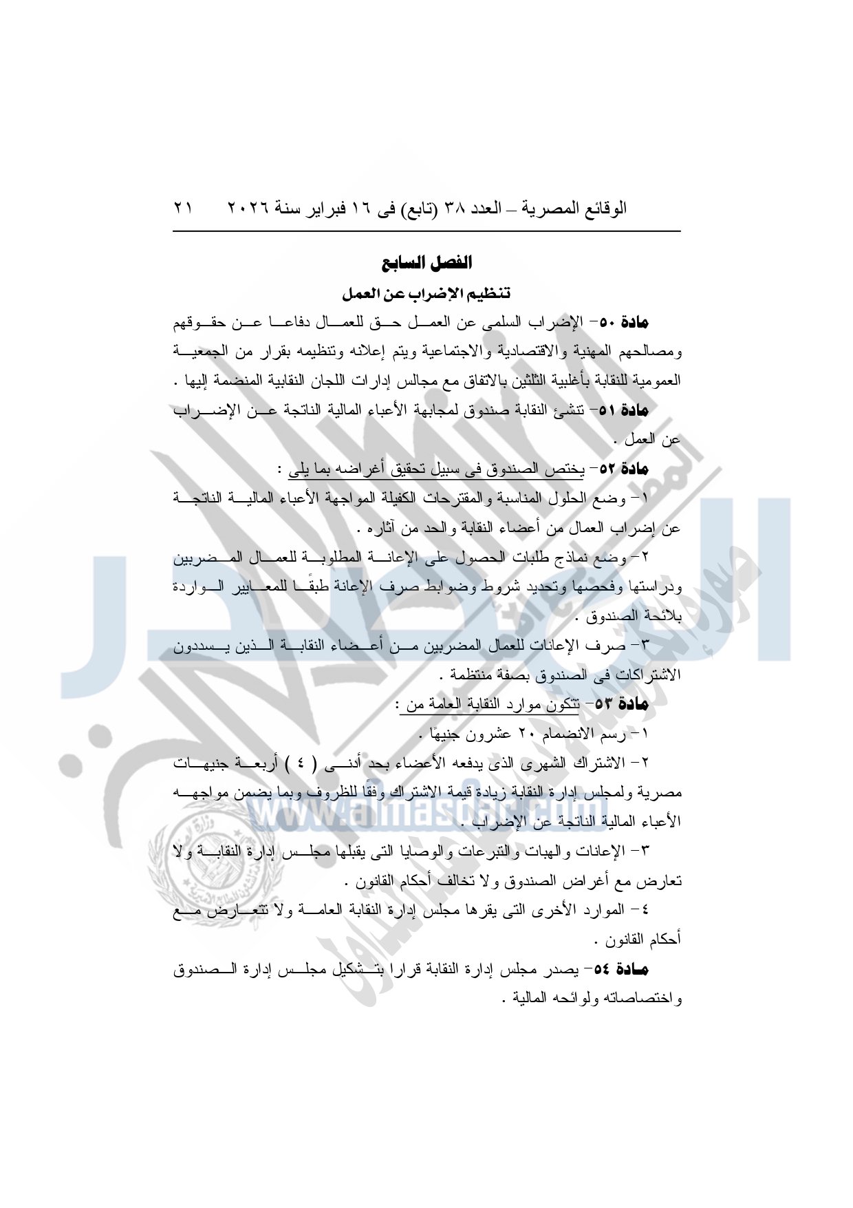 نشرت الوقائع المصرية، في العدد 38 "تابع"، الصادر في 16 فبراير سنة 2026، محافظة المنوفية، مديرية القوى العاملة - إدارة الرعاية، محضر إيداع، بشأن إصدار لائحة اللجنة النقابية بشركة العربي المتحدة للاستثمار الصناعى والتجارى بقويسنا.
