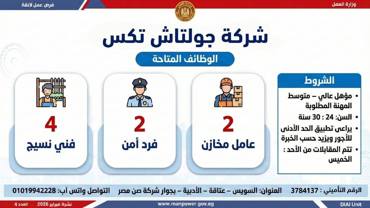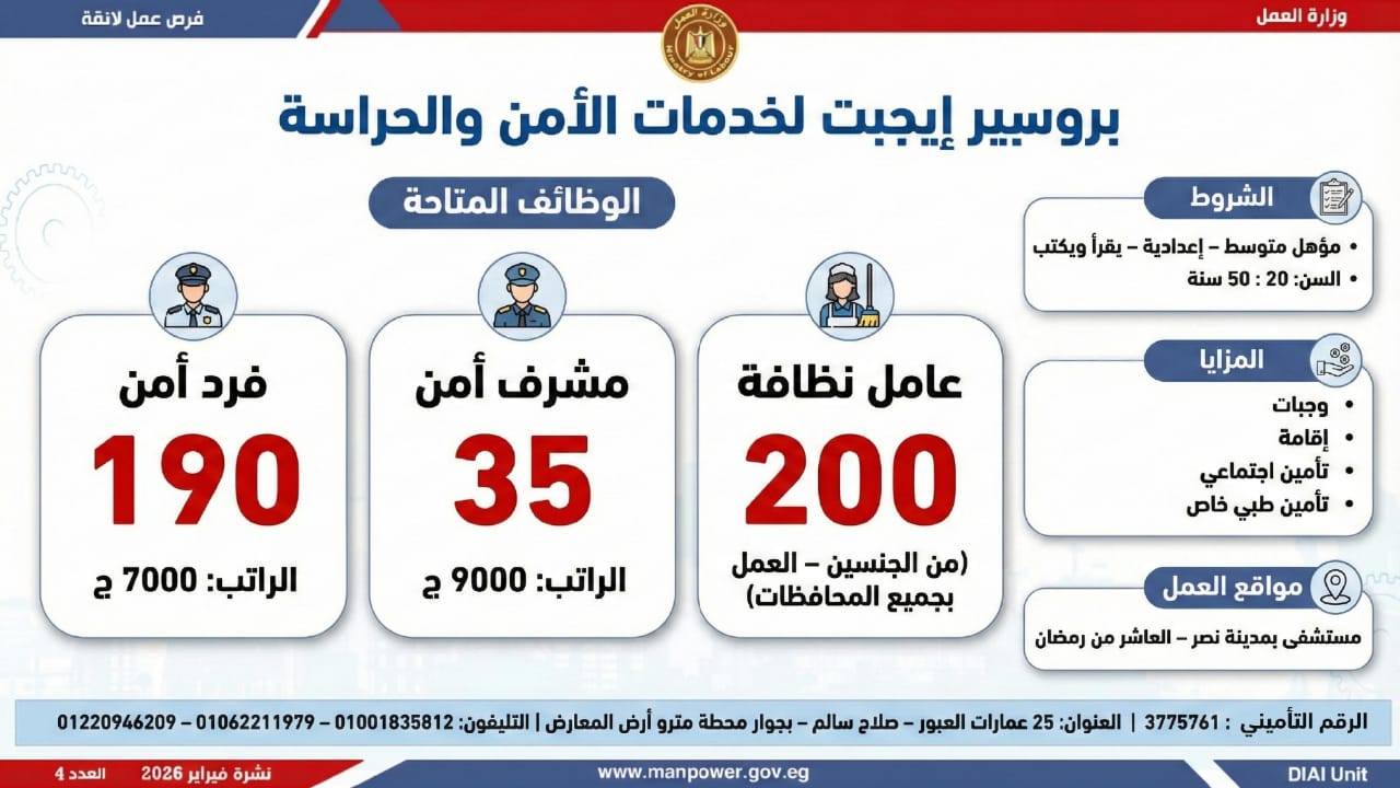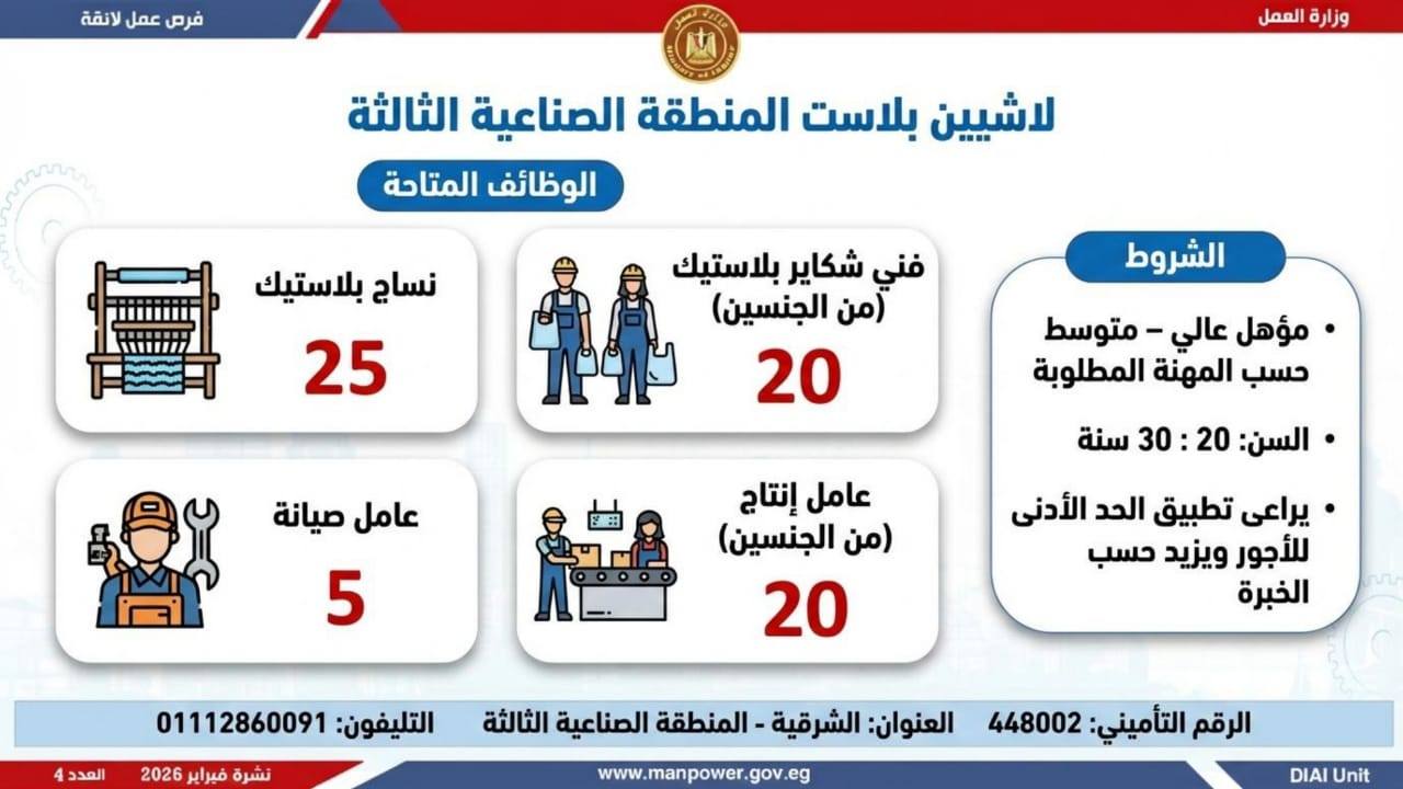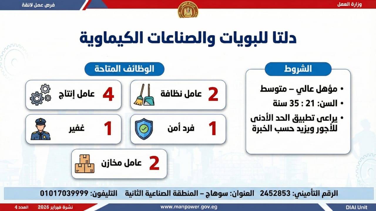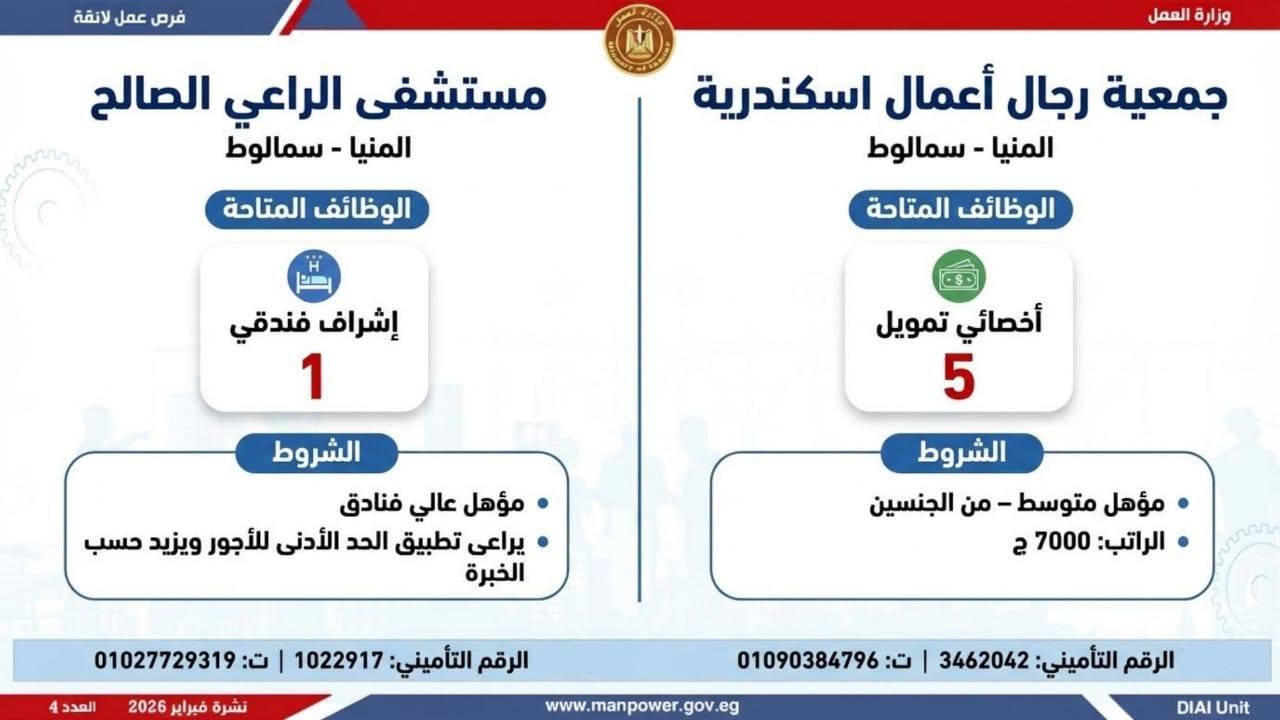 أعلنت وزارة العمل، اليوم السبت، عن إطلاق نشرة التوظيف نصف الشهرية الجديدة، التي تتضمن 5456 فرصة عمل جديدة، بالتعاون مع 54 شركة من شركات القطاع الخاص، موزعة على 14 محافظة، مع فتح باب التقديم خلال شهري فبراير ومارس 2026، في خطوة تحمل رسالة واضحة: العمل حق، والفرصة مسؤولية، والبطالة معركة تخوضها الدولة بالفعل لا بالكلام.