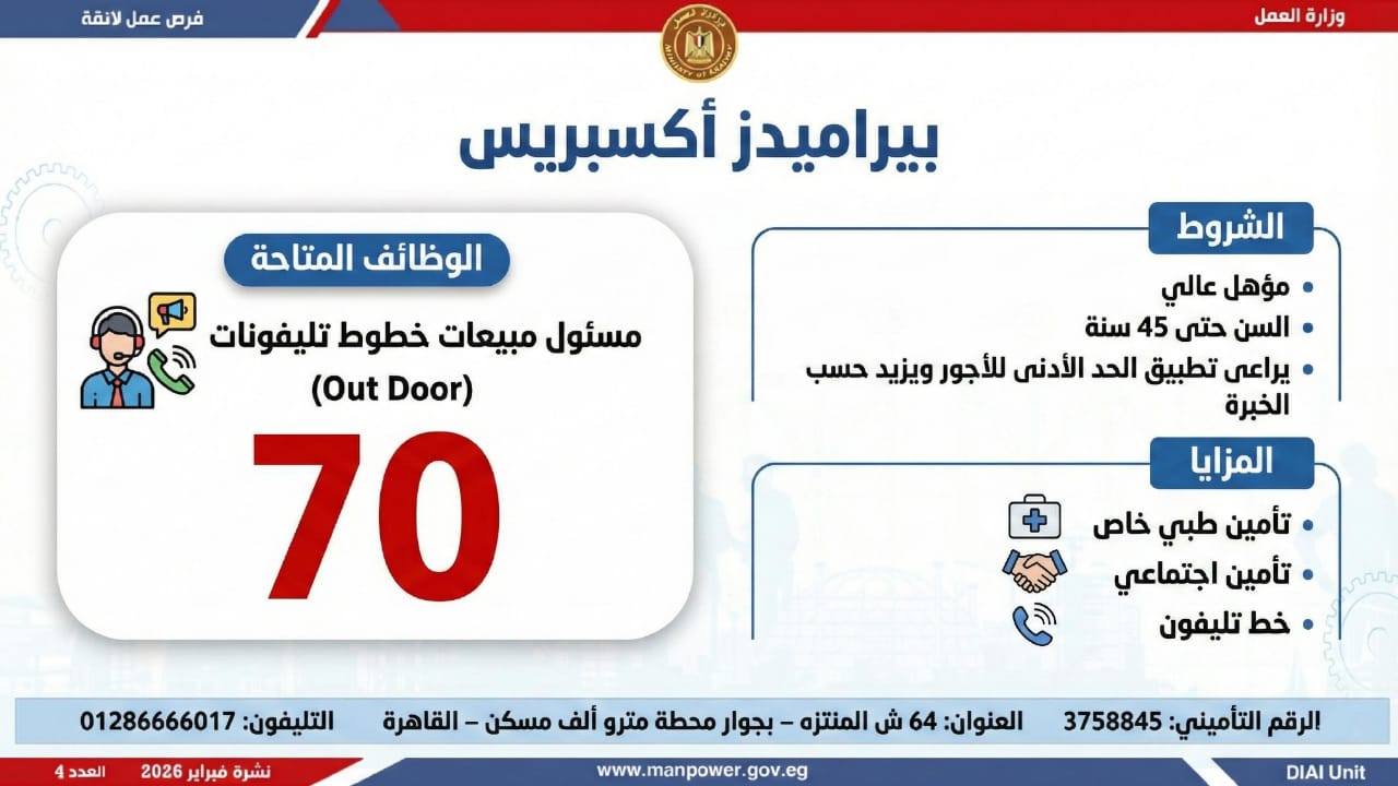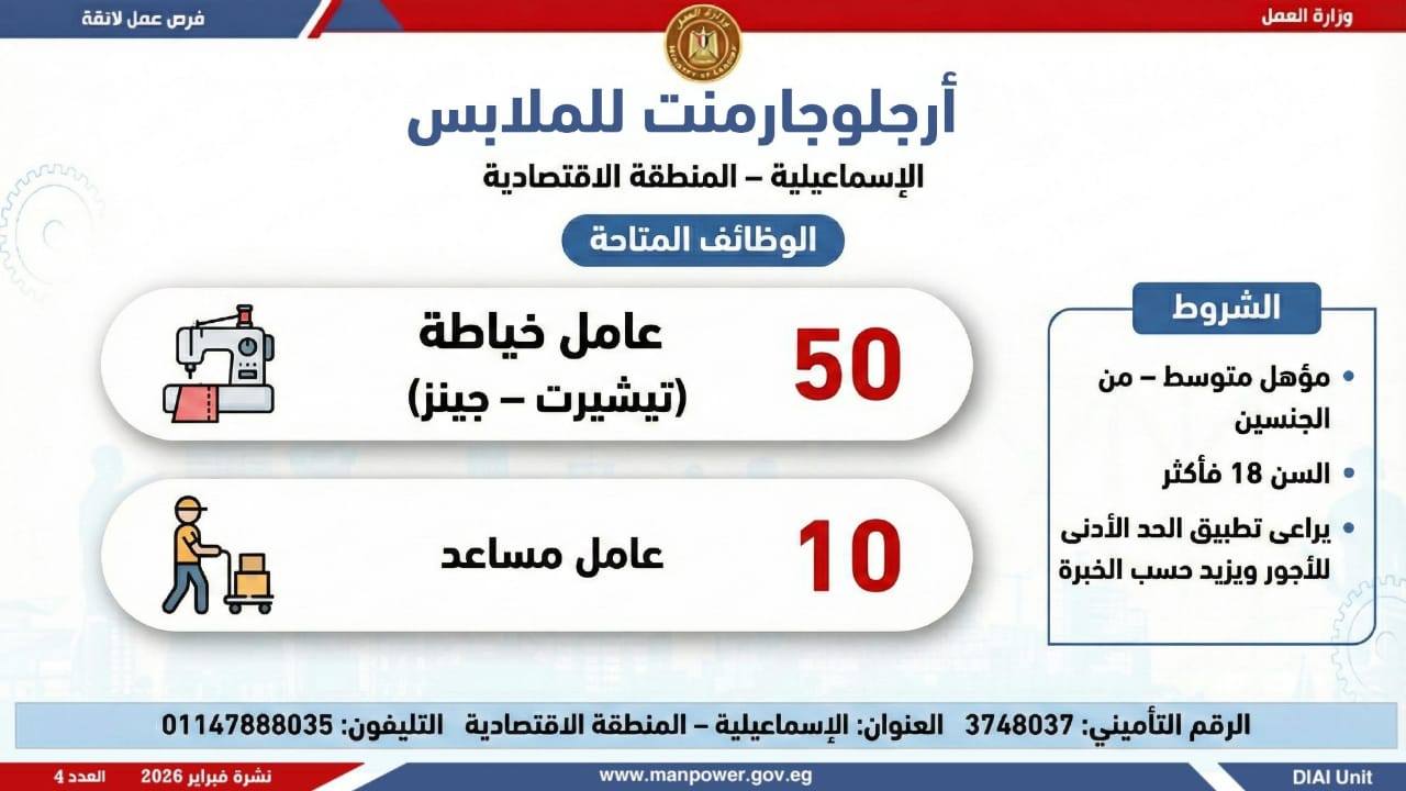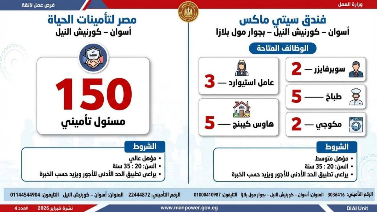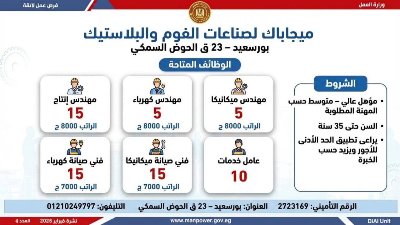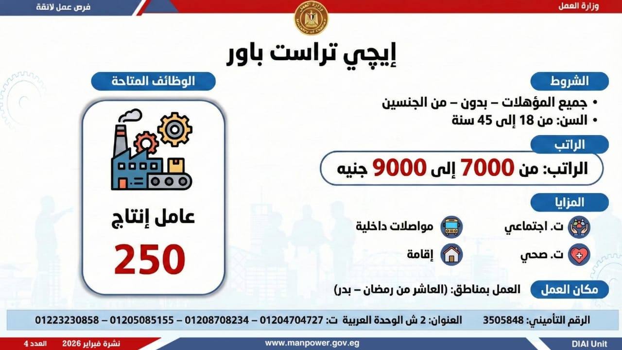 أعلنت وزارة العمل، اليوم السبت، عن إطلاق نشرة التوظيف نصف الشهرية الجديدة، التي تتضمن 5456 فرصة عمل جديدة، بالتعاون مع 54 شركة من شركات القطاع الخاص، موزعة على 14 محافظة، مع فتح باب التقديم خلال شهري فبراير ومارس 2026، في خطوة تحمل رسالة واضحة: العمل حق، والفرصة مسؤولية، والبطالة معركة تخوضها الدولة بالفعل لا بالكلام.