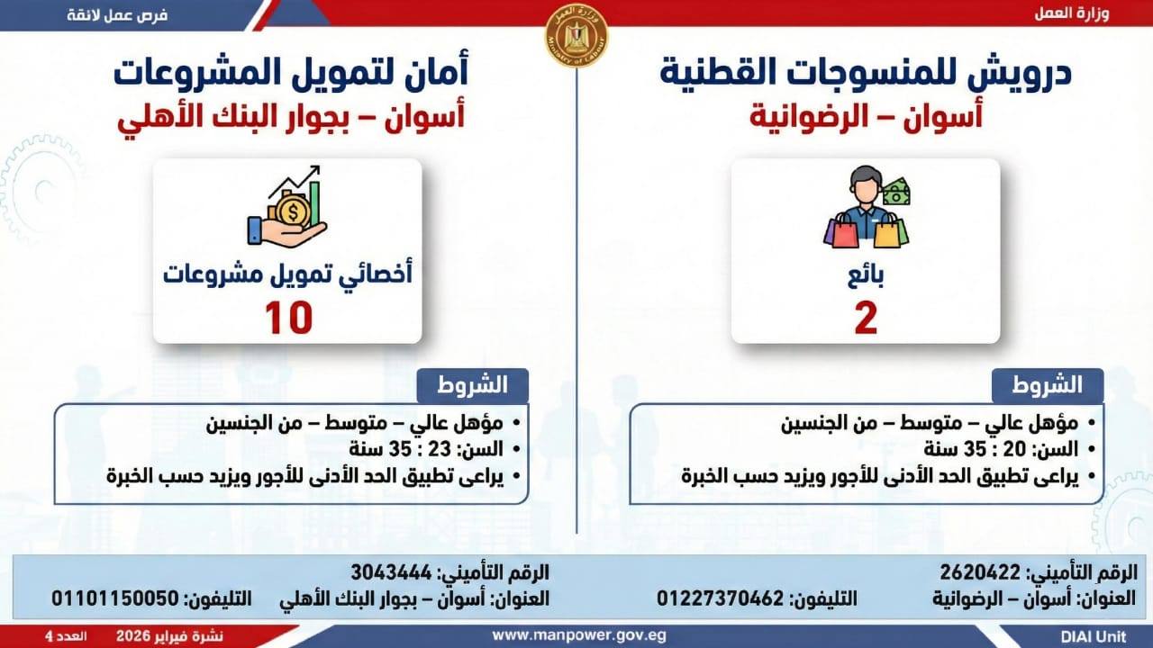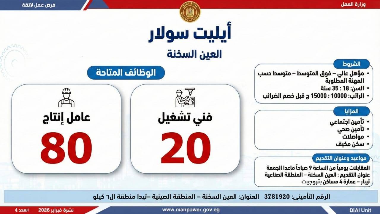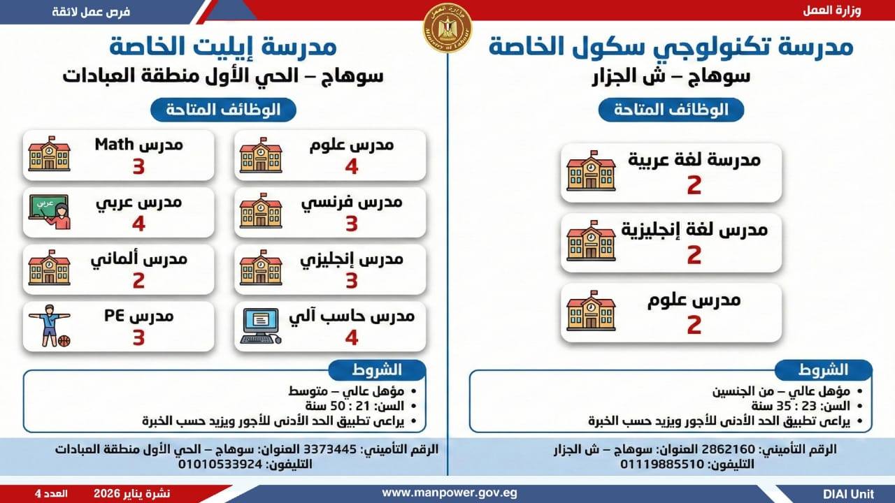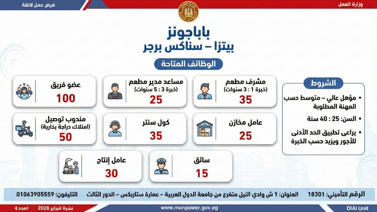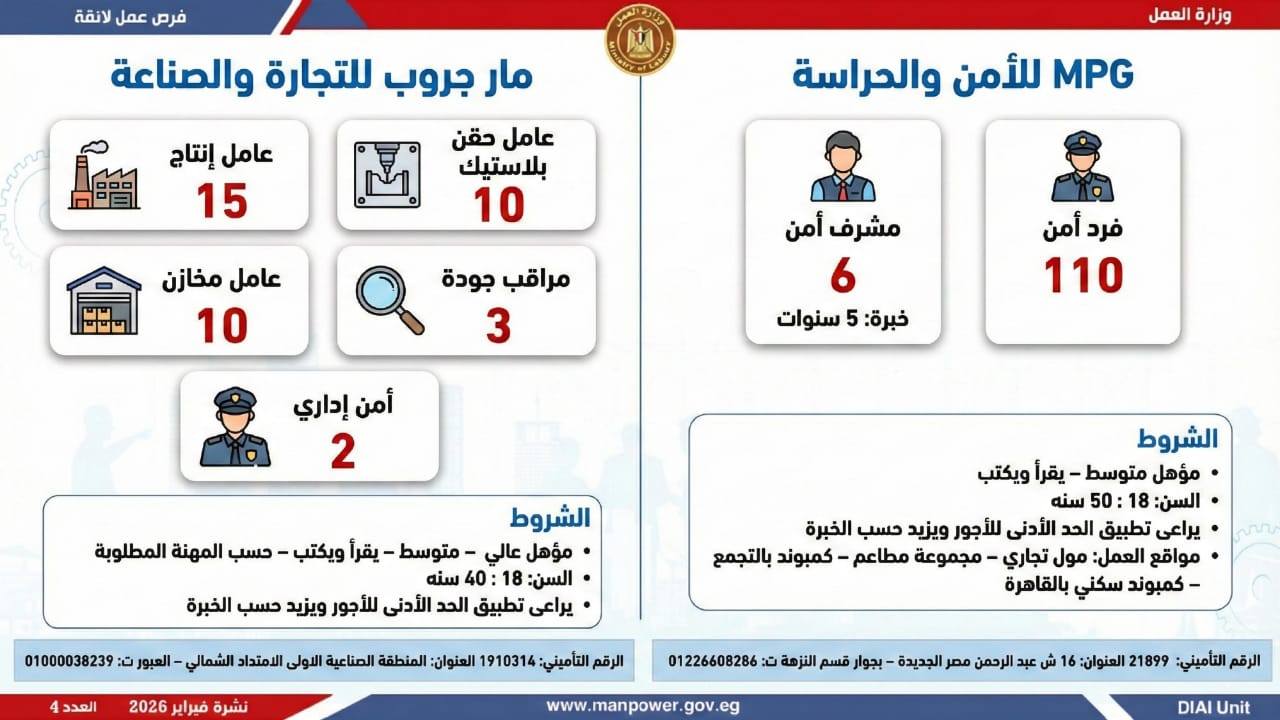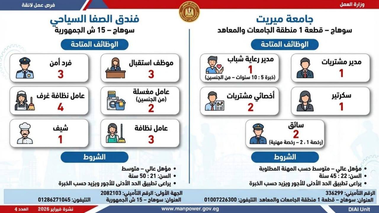 وأوضحت الوزارة، في بيان، أن النشرة تضم فرصًا متنوعة في عشرات التخصصات والمهن، برواتب مجزية تُحدد وفق طبيعة الوظيفة والمقابلة الشخصية، مع التزام كامل بتطبيق الحد الأدنى للأجور، والاستفادة من مظلة التأمينات الاجتماعية والصحية، بما يضمن بيئة عمل آمنة ومستقرة، كما تشمل النشرة فرصًا مخصصة لذوي الهمم، في إطار سياسة الدمج المجتمعي والتمكين الاقتصادي.