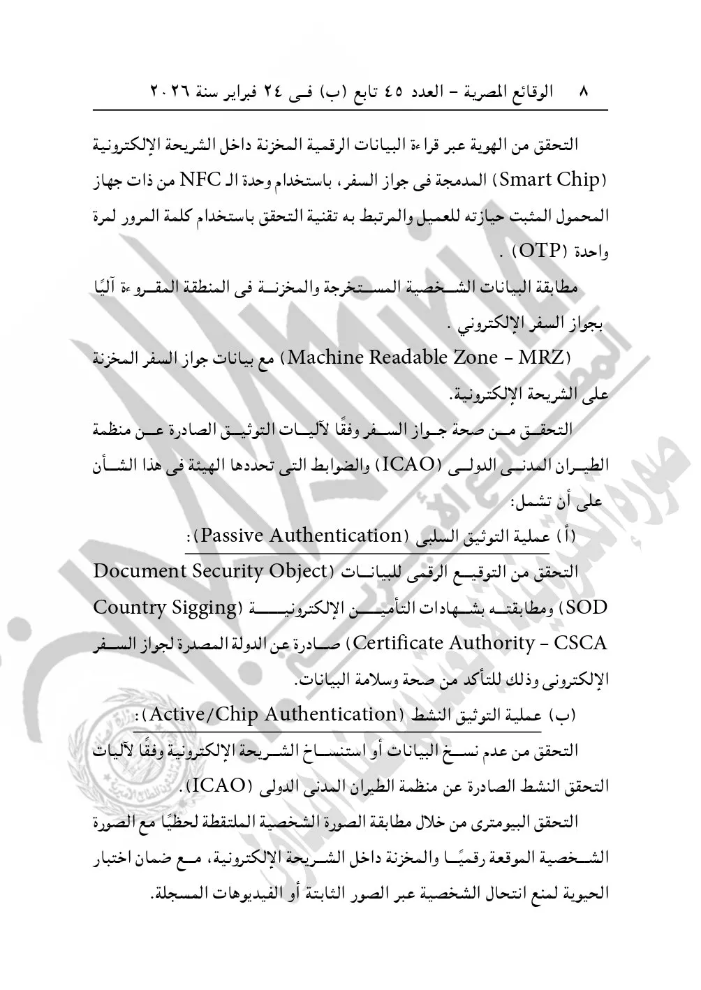 "Machine Readable Zone - MRZ" مع بيانات جواز السفر المخزنة على الشريحة الإلكترونية.
