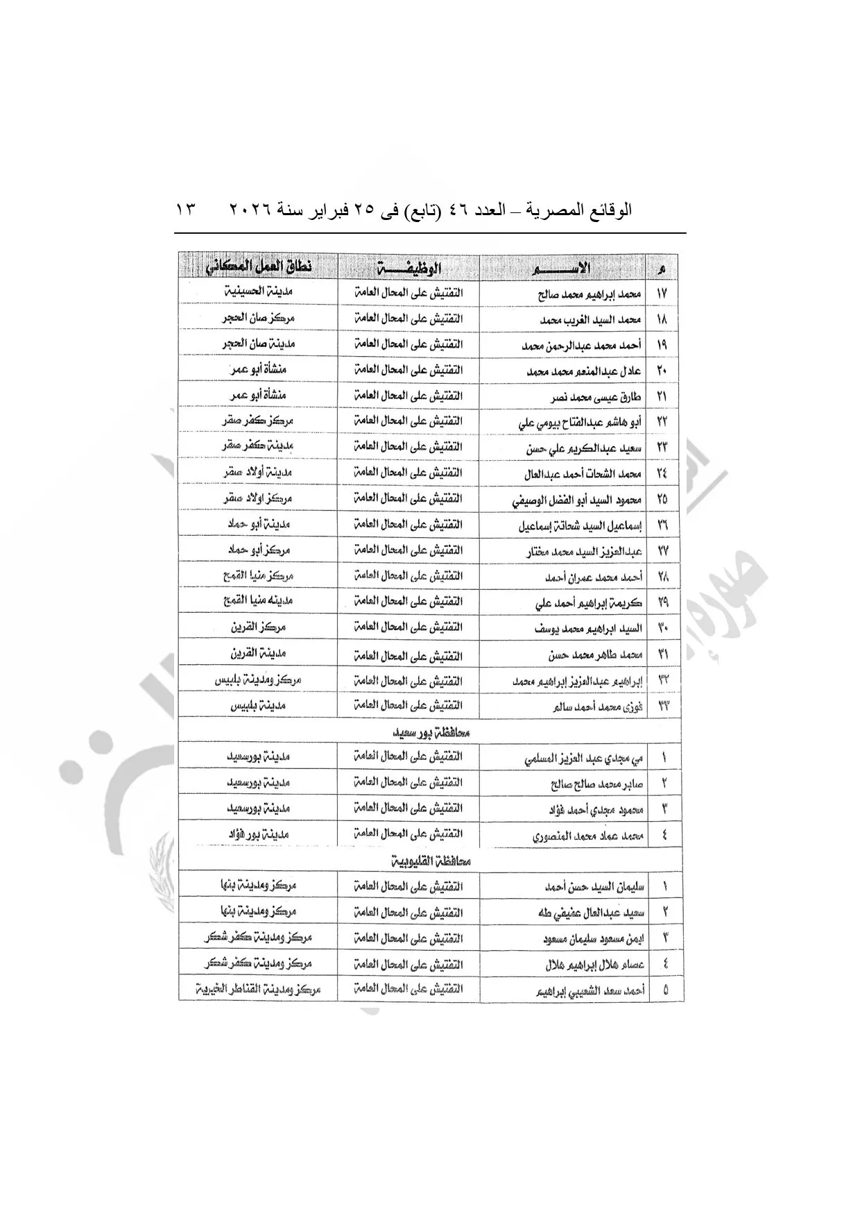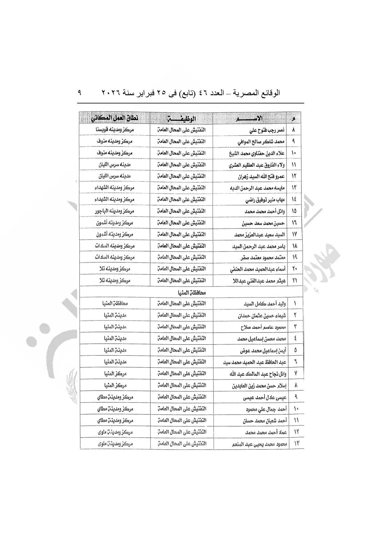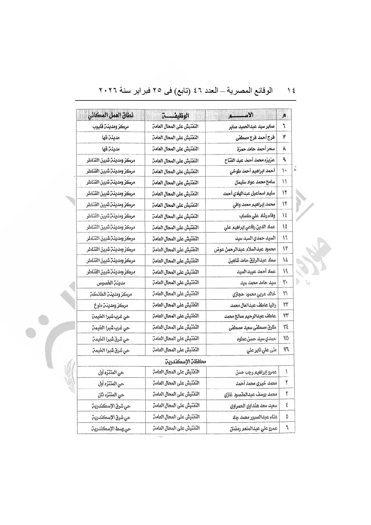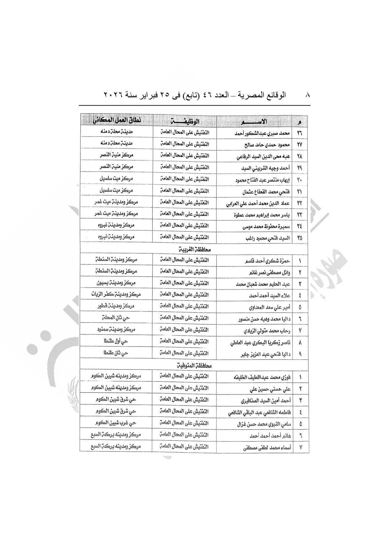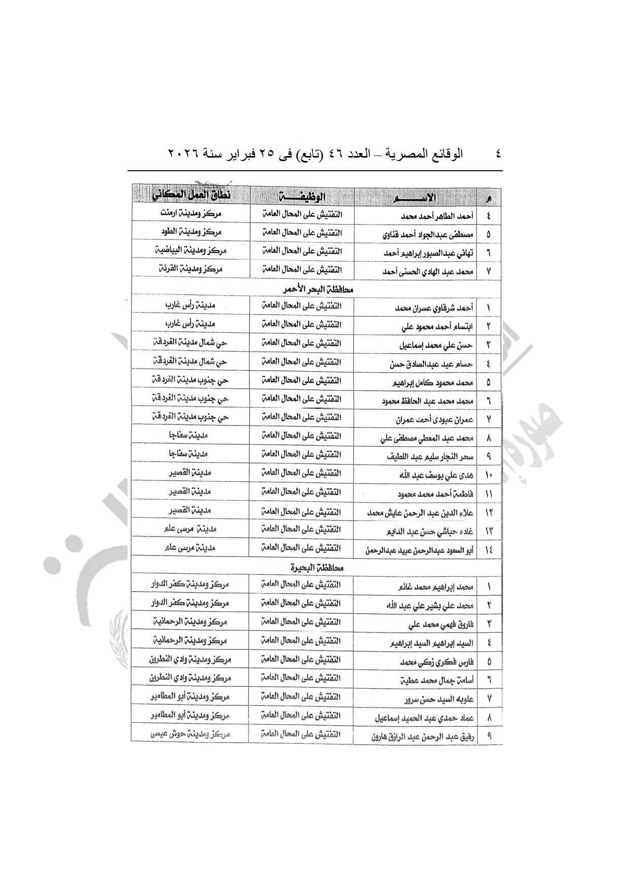 نشرت الوقائع المصرية، في العدد 46 "تابع"، الصادر في 25 فبراير سنة 2026، قرار وزارة العدل، رقم 5108 لسنة 2025، بشأن منح بعض العاملين بوزارة التنمية المحلية وبعض العاملين بمراكز إصدار التراخيص بالمحافظات صفة مأمورى الضبط القضائي.