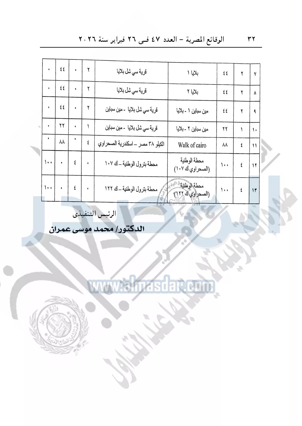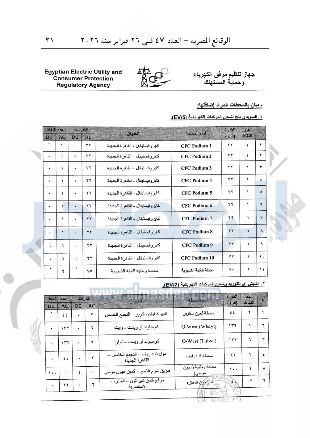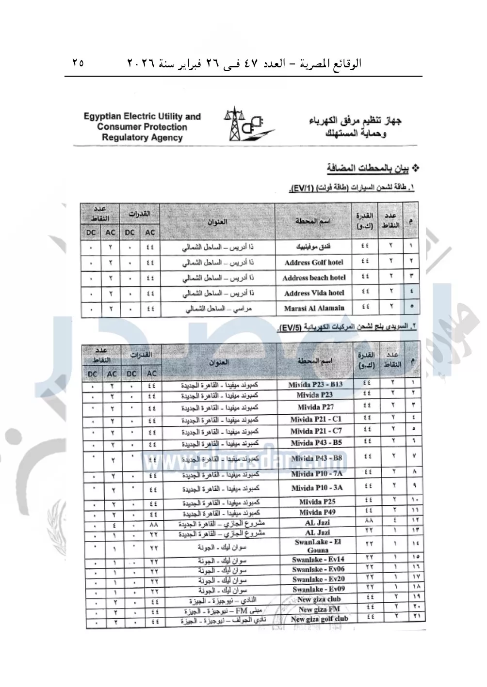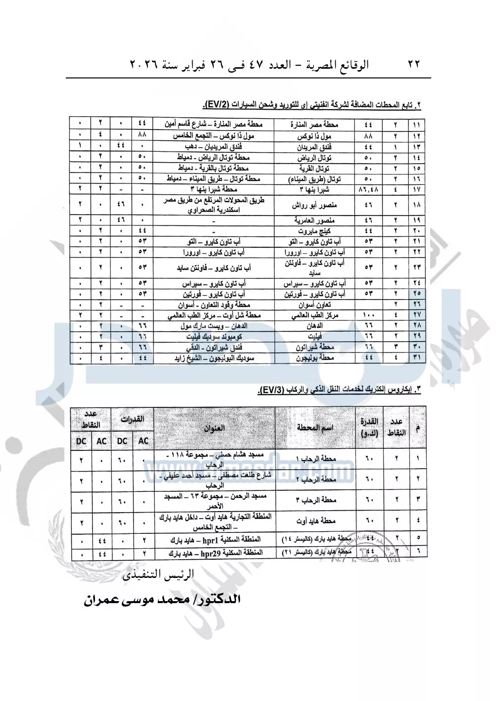 وايضا نشرت الوقائع المصرية، في العدد 47، الصادر في 26 فبراير سنة 2026، قرار جهاز تنظيم مرفق الكهرباء وحماية المستهلك، قرارات الاجتماع الرابع للعام المالي 2025-2026، للجنة إصدار شهادات تجديد سريان تصاريح - تراخيص الطاقة الكهربائية السنوية المشكلة بالجهاز المنعقد يوم الأربعاء الموافق 10-12-2025.