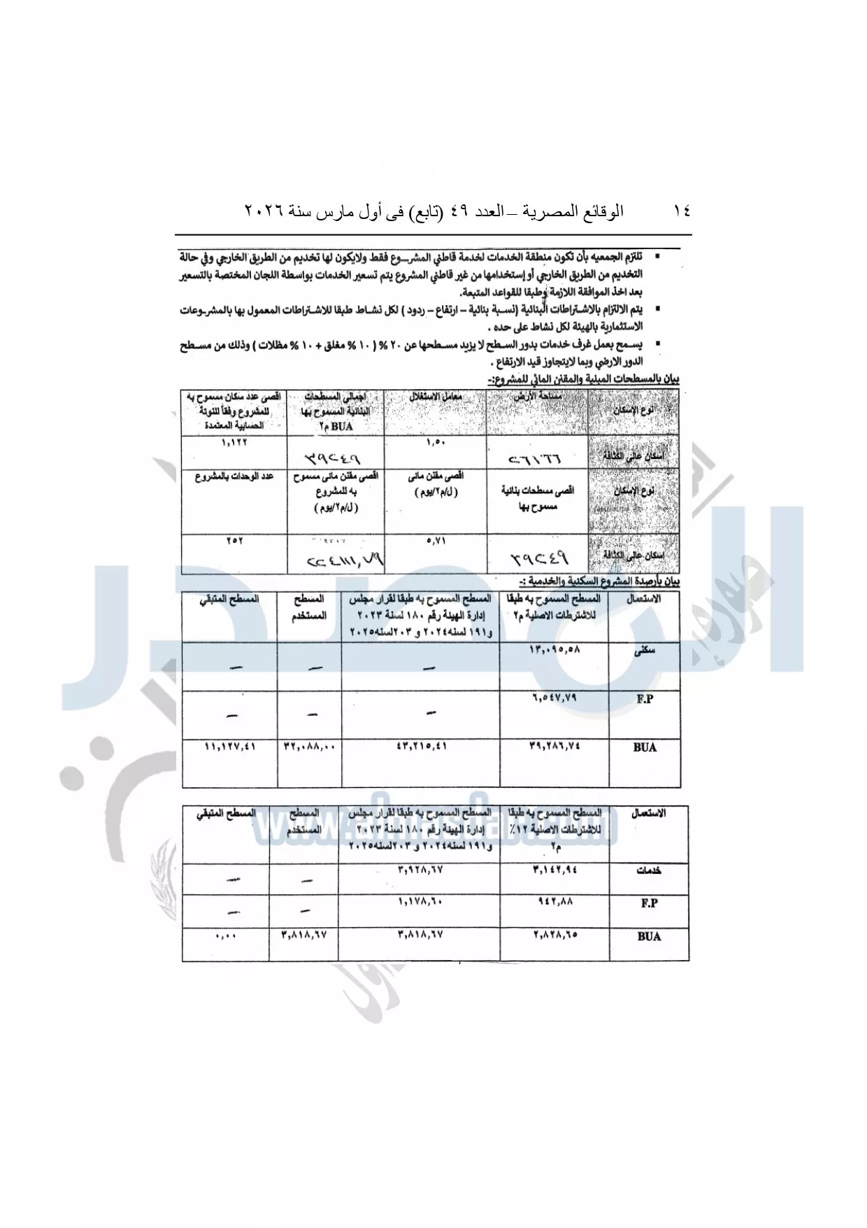 تلتزم الجمعية المخصص لها بعدم عرض وحذات المشروع للحجز أو البيع أو الإعلان عن المشروع إلا بعد موافقة الهيئة المسبقة على ذلك ووفقا للقواعد والضوابط المتبعة فى هذا الشأن، مع الإلتزام بقرار رئيس مجلس الوزراء رقم "2184" لسنة 2022 الخاص بإدراج ضوابط بيع وحدات مشروعات التطوير العقارى وتحرير ملحق للعقد المبرم يتضمن هذه الضوابط، وفي حالة مخالفة ذلك يتم الغاء هذا القرار واتخاذ الإجراءات القانونية المناسبة في هذا الشان.