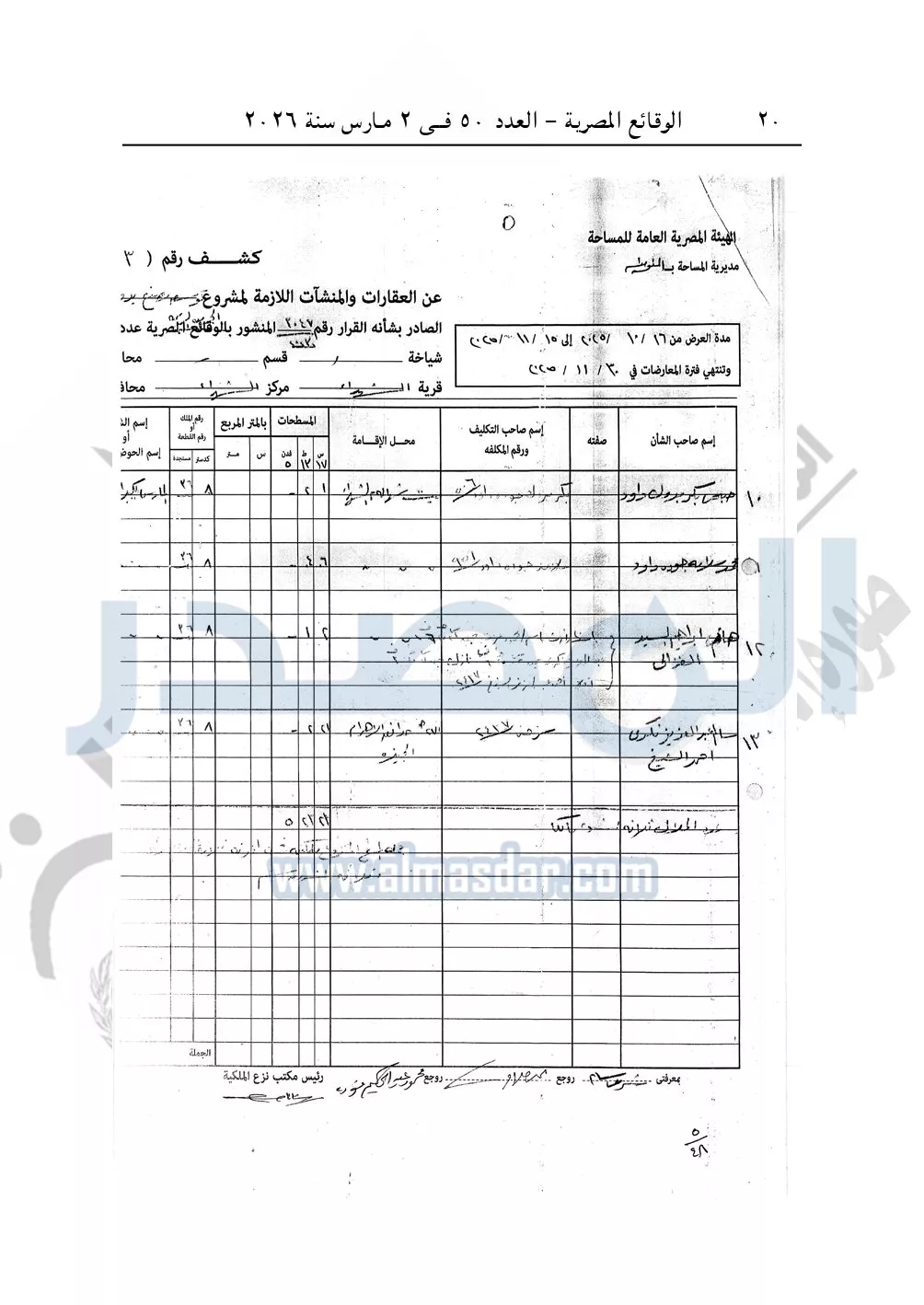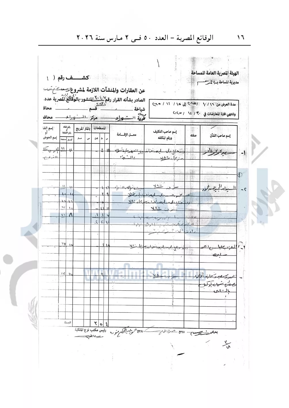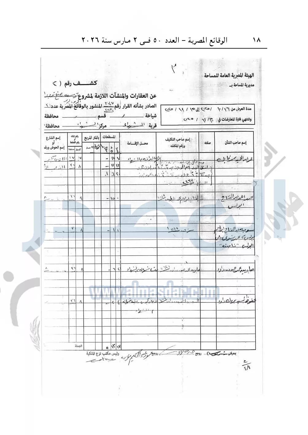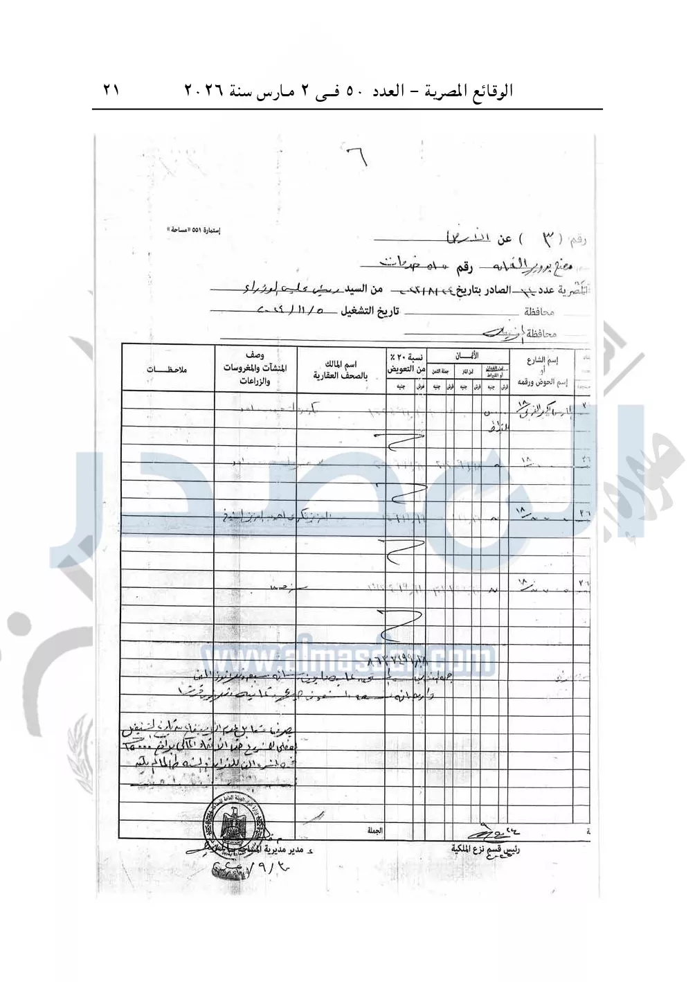 نشرت الوقائع المصرية في العدد 50، الصادر في 2 مارس سنة 2026، قرار وزارة التنمية المحلية، رقم 48 لسنة 2026، بشأن نزع ملكية أراضي وعقارات لتوسعة مشروع مصنع تدوير القمامة بمدينة الشهداء بمحافظة المنوفية.