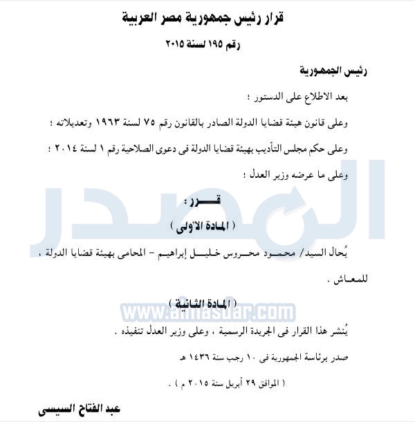 وجاء نص القرار كما يلى :