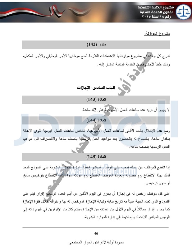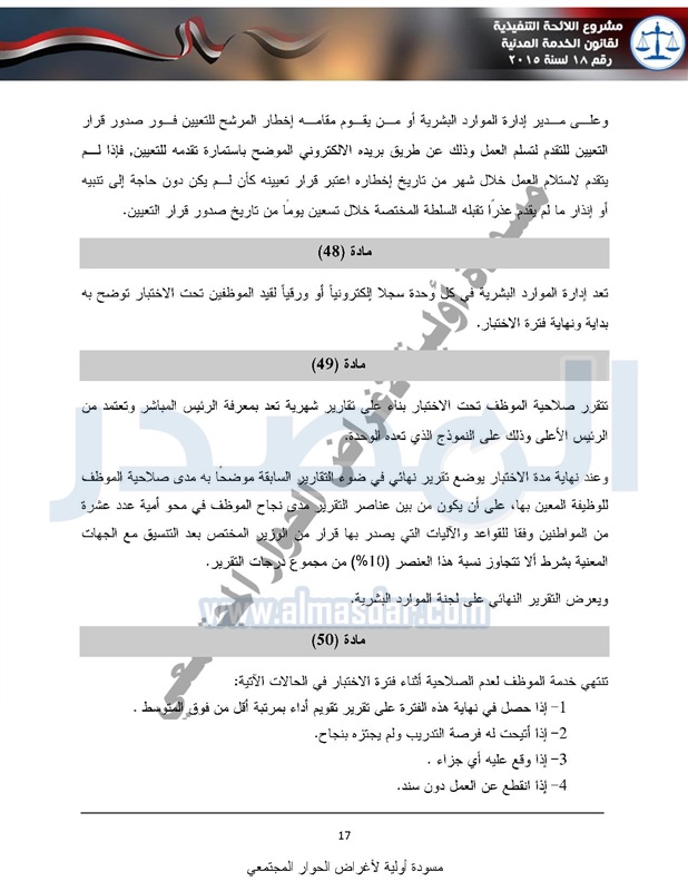 للإطلاع على المسودة الأولية للائحة التنفيذية لقانون الخدمة المدنية: