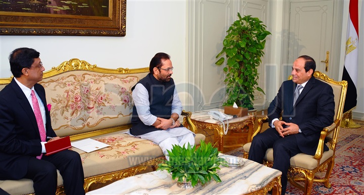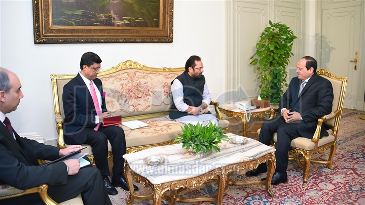 اِستقبل الرئيس عبد الفتاح السيسي اليوم مختار عباس نقفي، وزير الدولة للشئون البرلمانية وشئون الأقليات الهندي والمبعوث الخاص لرئيس وزراء الهند.