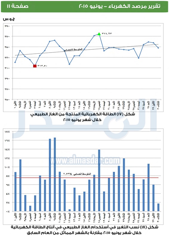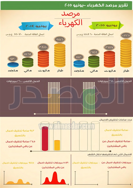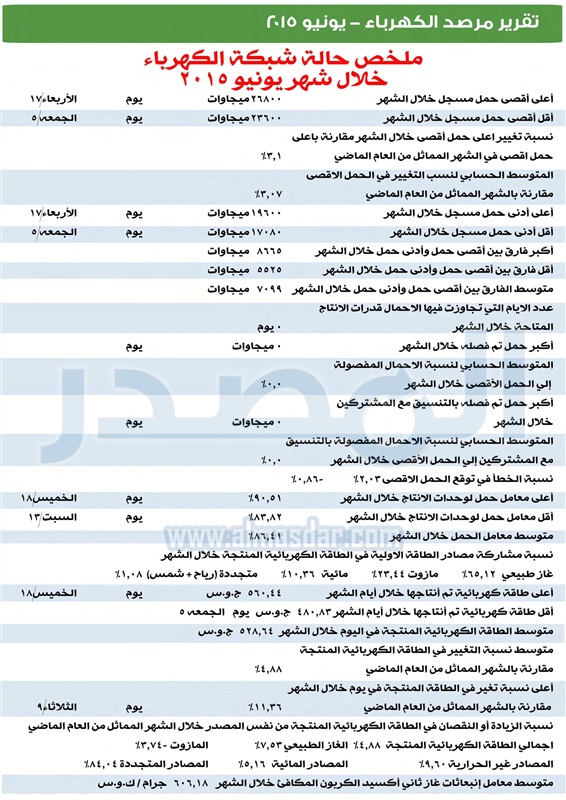 "المصدر" تنشر تقرير مرصد الكهرباء الثانى والعشرين عن شهر يونيو 2015