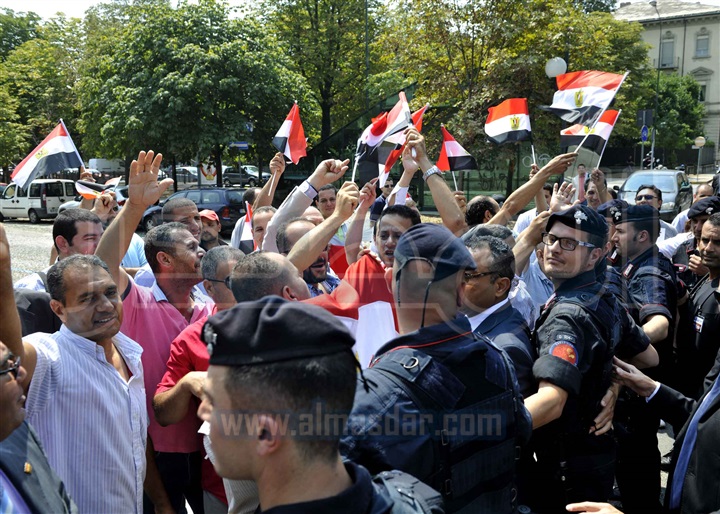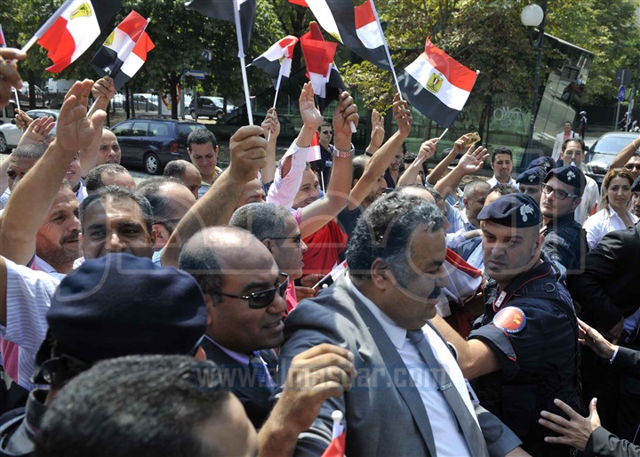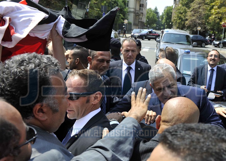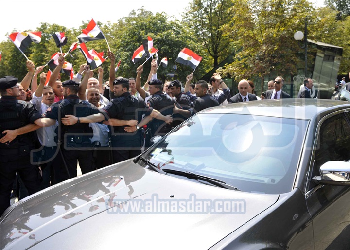 وعند مدخل اتحاد الصناعات، تجمع عدد من المصريين رافعين الاعلام، ورددوا الهتافات، ترحيبا برئيس الوزراء والوفد المرافق له، وعلى الفور استوقف المهندس إبراهيم محلب سيارته، ونزل منها لتحية المصريين.