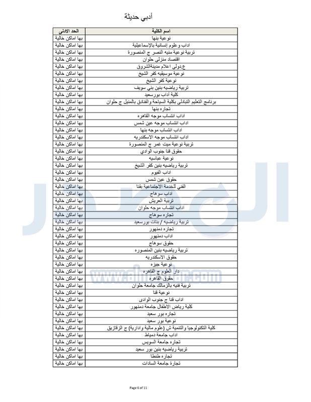 وأعلنت الوزارة عن نتيجة تنسيق كليات المرحلة الأولى "أدبى" نظام حديث، والتى جاءت كالتالى: