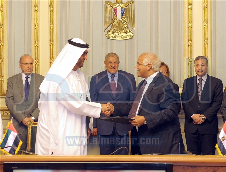 "محلب" ووزير الدولة الاماراتى يشهدان مراسم توقيع تسليم عدد من المشروعات
