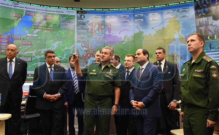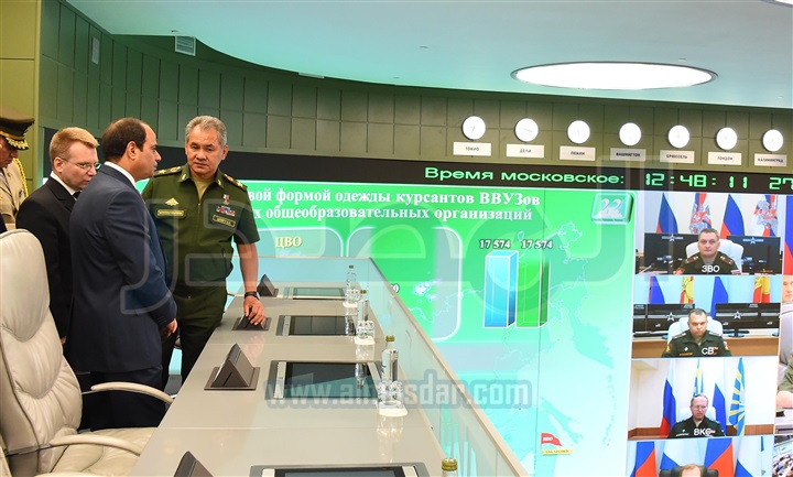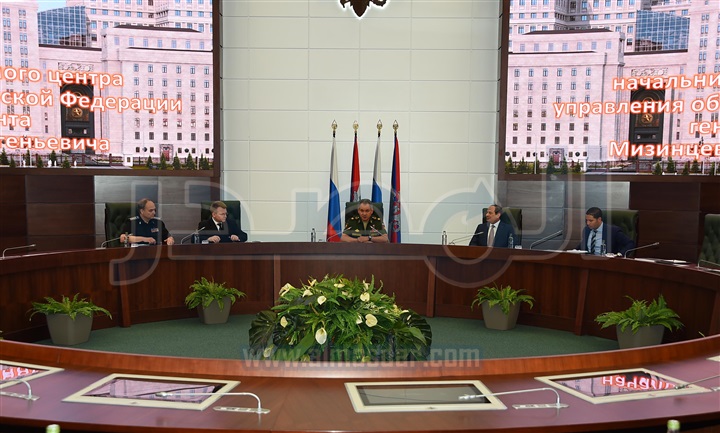 "السيسى" يتفقد المركز الوطنى للتنسيق والتحكم بوزارة الدفاع الروسية