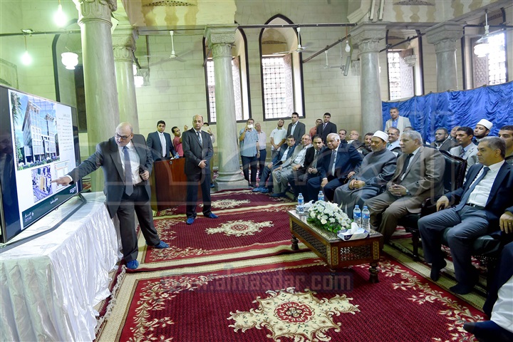 وتمت الاشارة إلى أن المشروع يشمل اعمال الجامع الازهر الشريف، من خلال ترميم الواجهات الحجرية الخارجية والداخلية، وكذا الزخارف الاسلامية والنقوش والاسقف والنوافذ الخشبية والمشربيات، بالاضافة إلى أعمال ترميم واعادة تأهيل السور الخارجى، وإعادة إنشاء مبنى دورات المياه، فضلاً عن ترميم مآذن الجامع وإعادة تأهيل أرضيات الجامع، وأعمال الاضاءة الخارجية والداخلية، ومقاومة الحريق، والنقل التليفزيونى والصوتيات الداخلية.