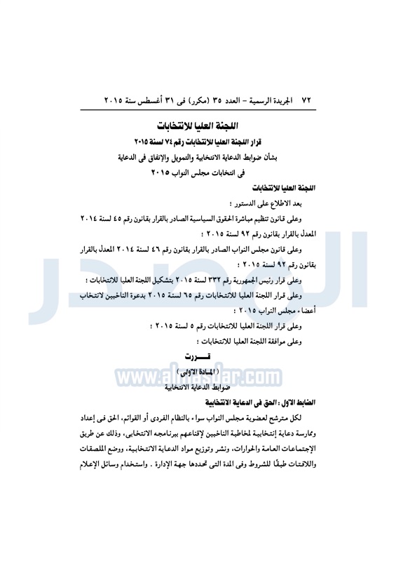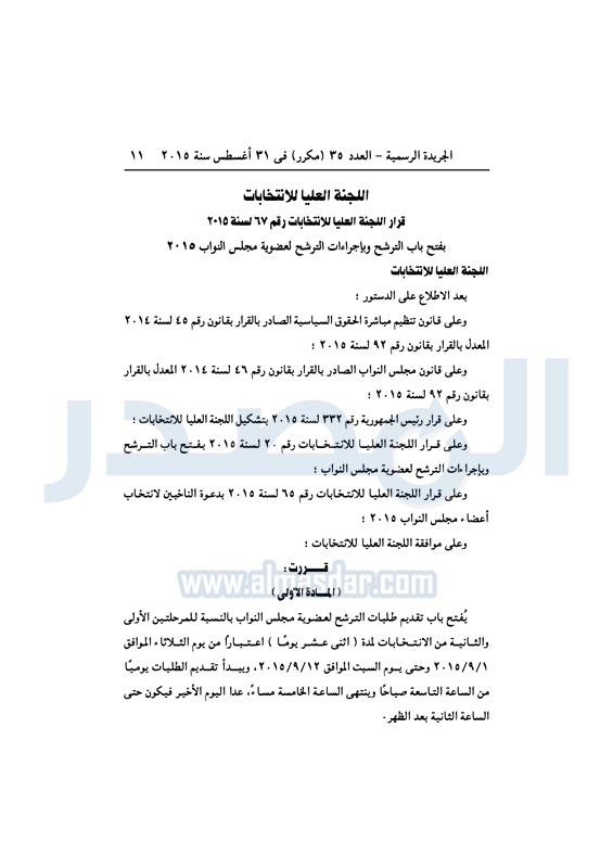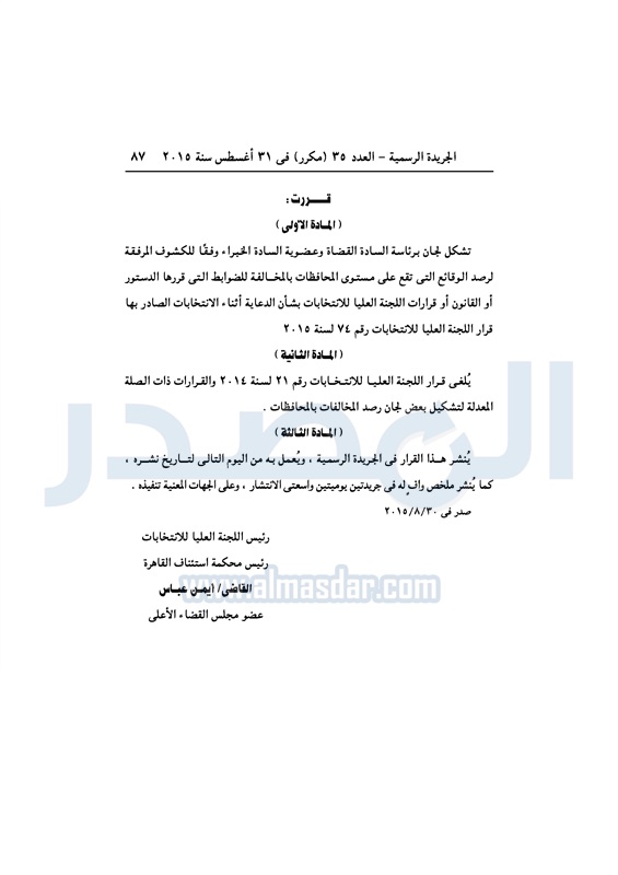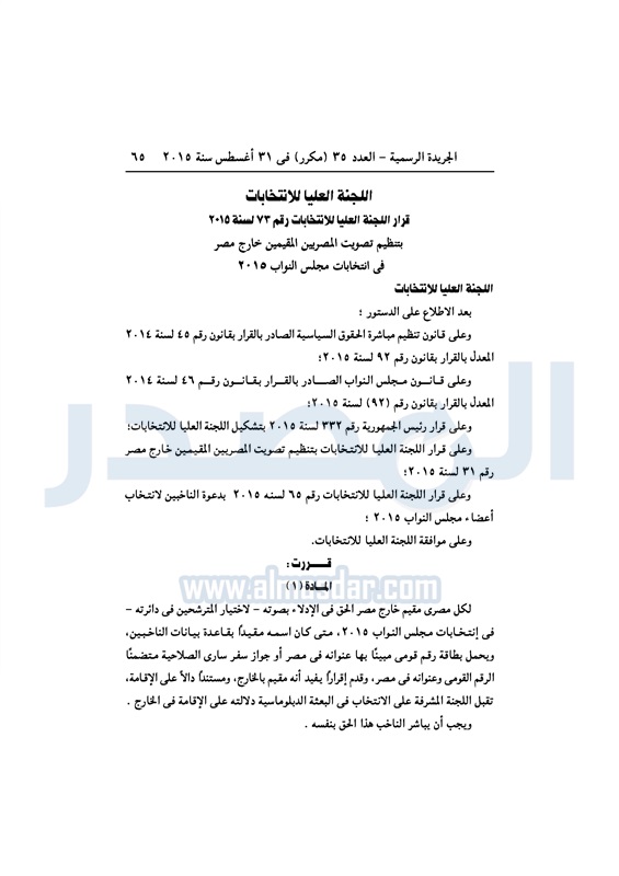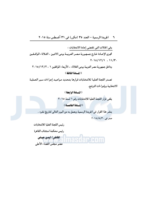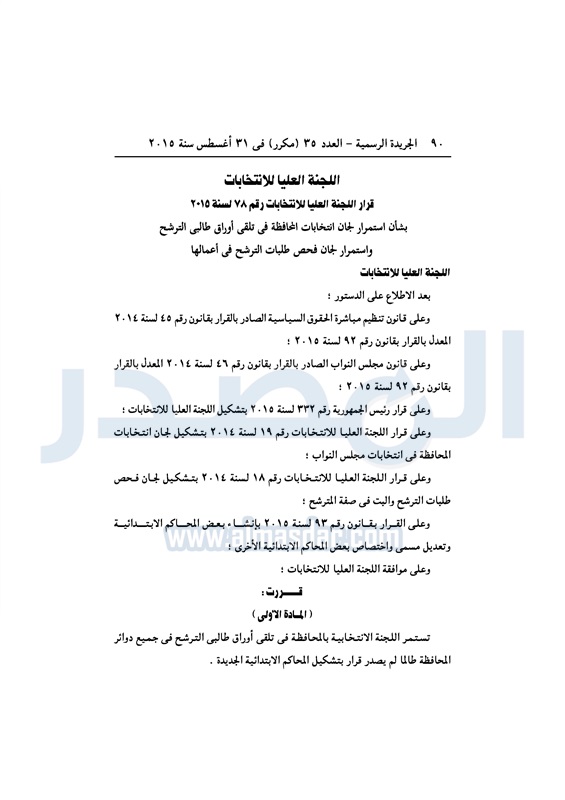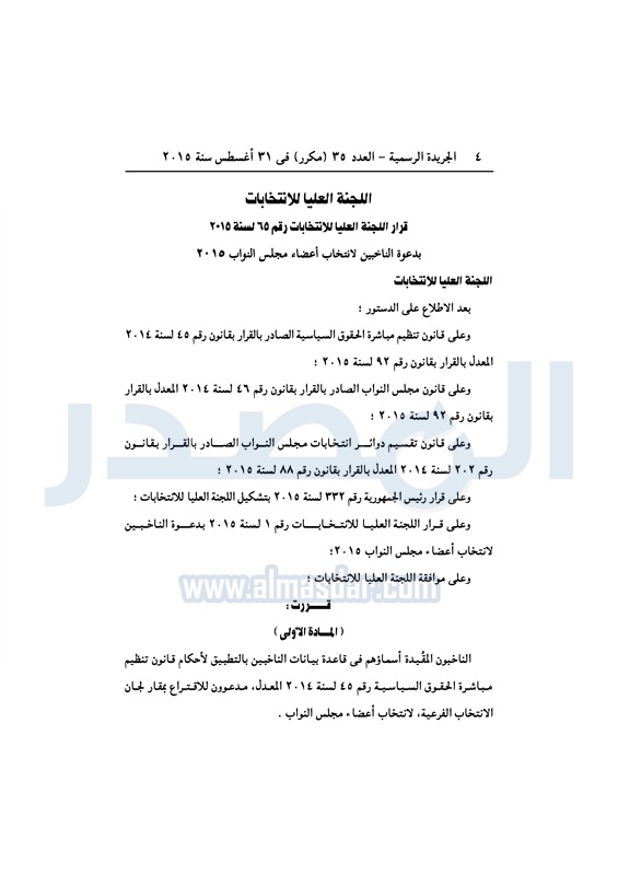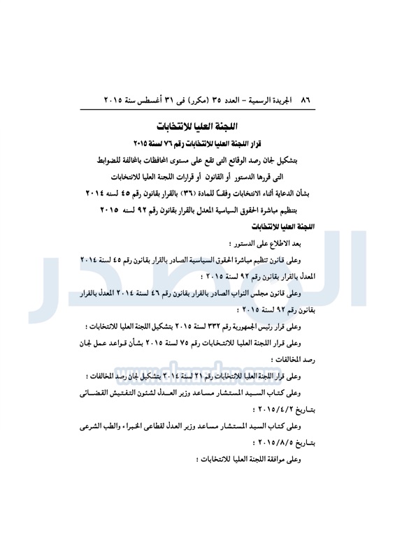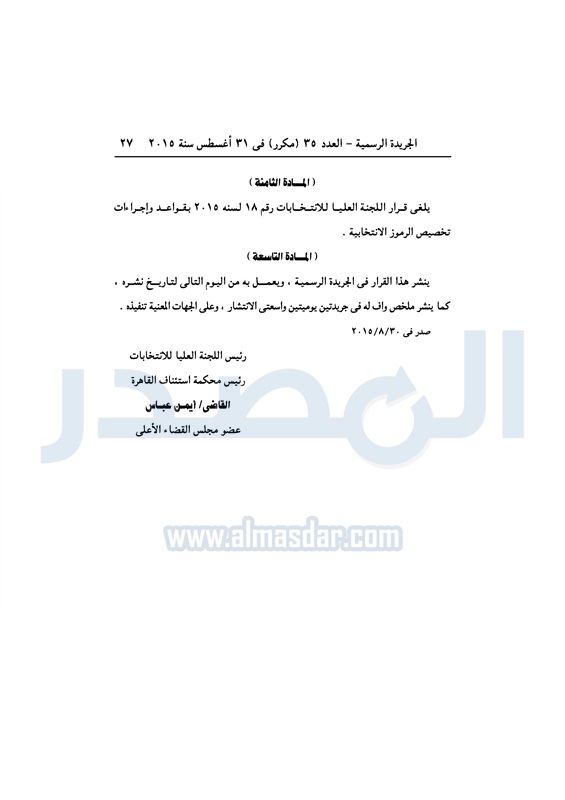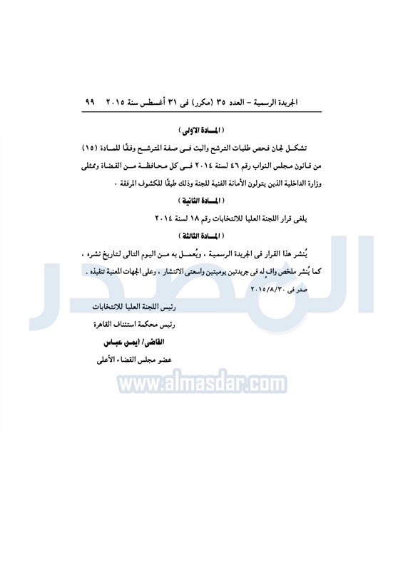 أخبار مصر "المصدر" تنشر قرارات اللجنة العليا للإنتخابات بشأن إنتخابات مجلس النواب 2015 الإثنين 31 أغسطس 2015 - 06:49 م 8/31/2015 6:49:33 PM صورة أرشيفية المصدر - خاص طباعة شارك نشرت الجريدة الرسمية في العدد "35" مكرر الصادر بتاريخ 31 أغسطس 2015 قرارات اللجنة العليا للإنتخابات بشأن الإنتخابات البرلمانية.وجاء نص القرار كالتالى: طباعة شارك المصدر العليا للإنتخابات الجريدة الرسمية الانتخابات البرلمانية تابع المصدر علي جوجل نيوز تطبيق نبض