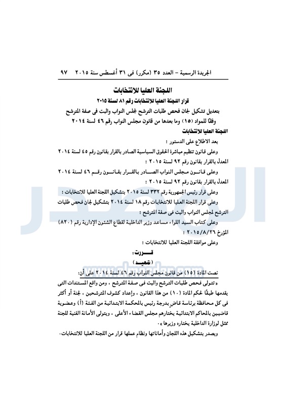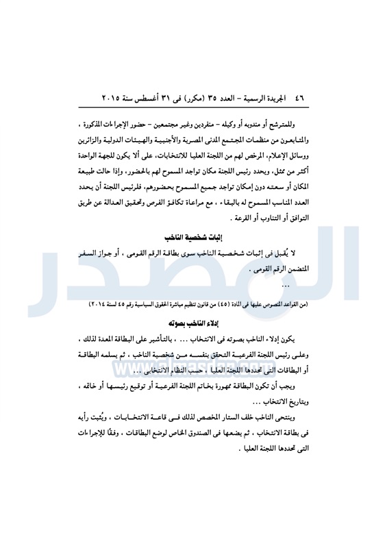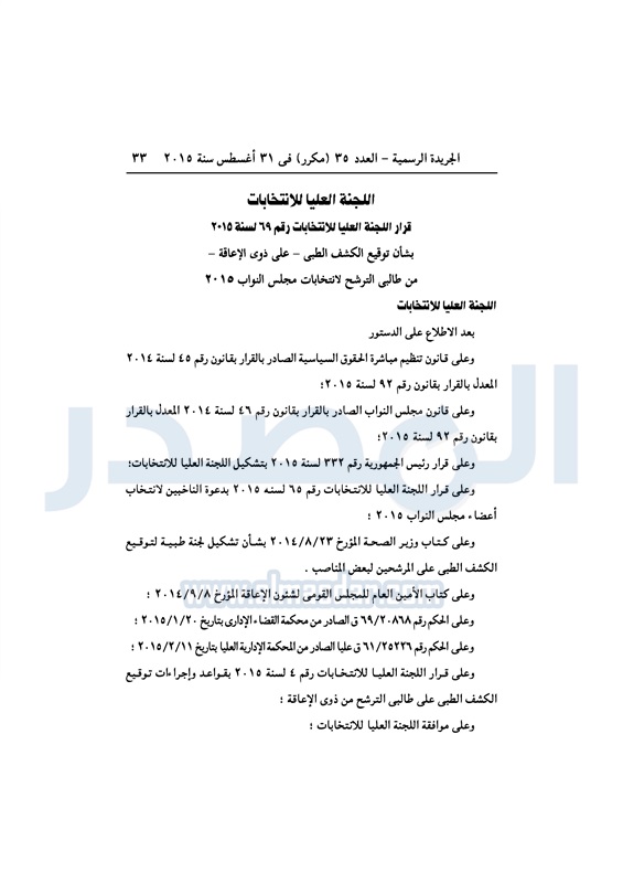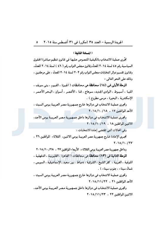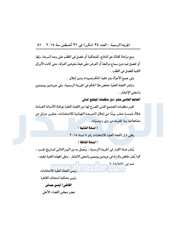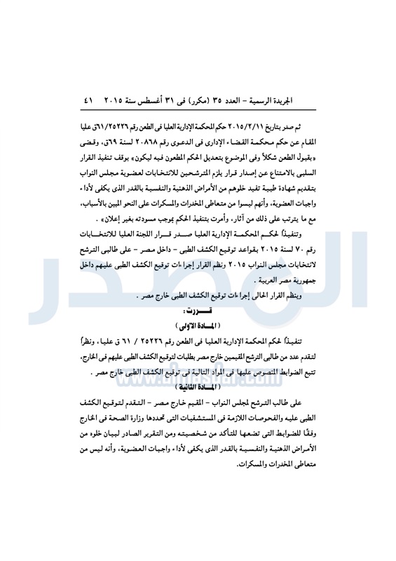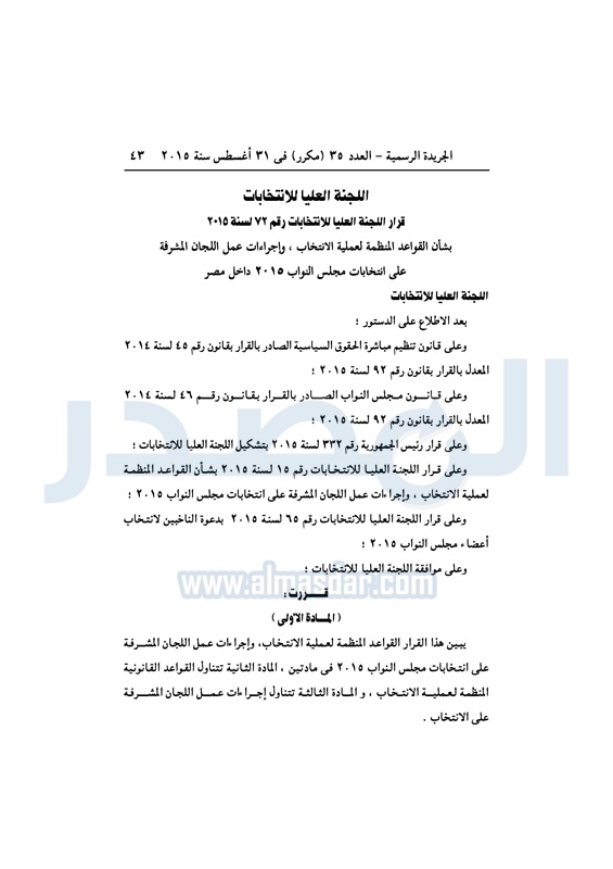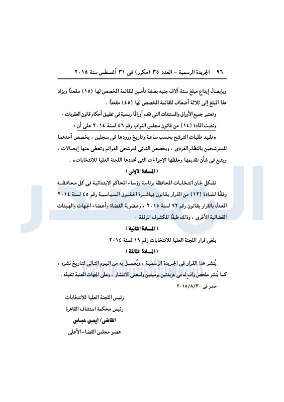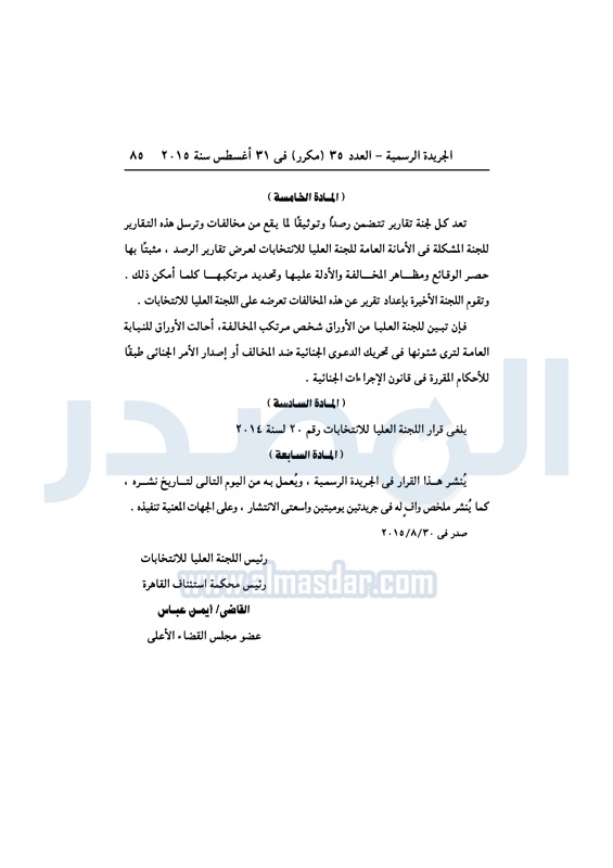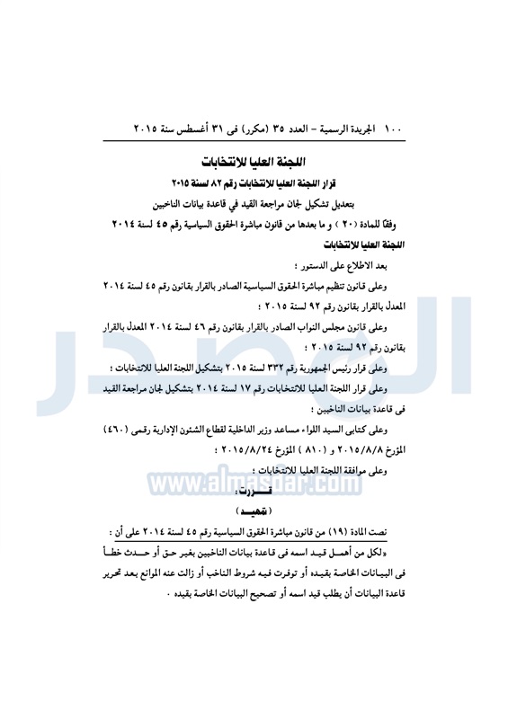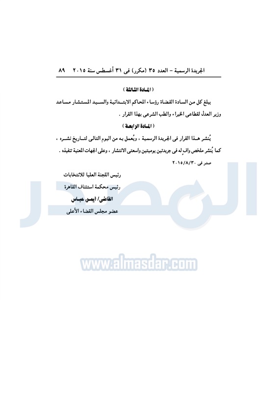 أخبار مصر "المصدر" تنشر قرارات اللجنة العليا للإنتخابات بشأن إنتخابات مجلس النواب 2015 الإثنين 31 أغسطس 2015 - 06:49 م 8/31/2015 6:49:33 PM صورة أرشيفية المصدر - خاص طباعة شارك نشرت الجريدة الرسمية في العدد "35" مكرر الصادر بتاريخ 31 أغسطس 2015 قرارات اللجنة العليا للإنتخابات بشأن الإنتخابات البرلمانية.وجاء نص القرار كالتالى: طباعة شارك المصدر العليا للإنتخابات الجريدة الرسمية الانتخابات البرلمانية تابع المصدر علي جوجل نيوز تطبيق نبض