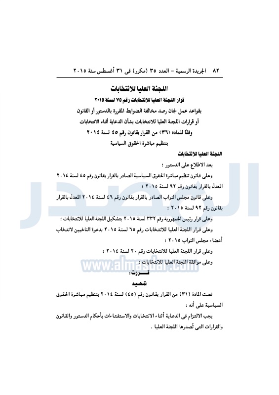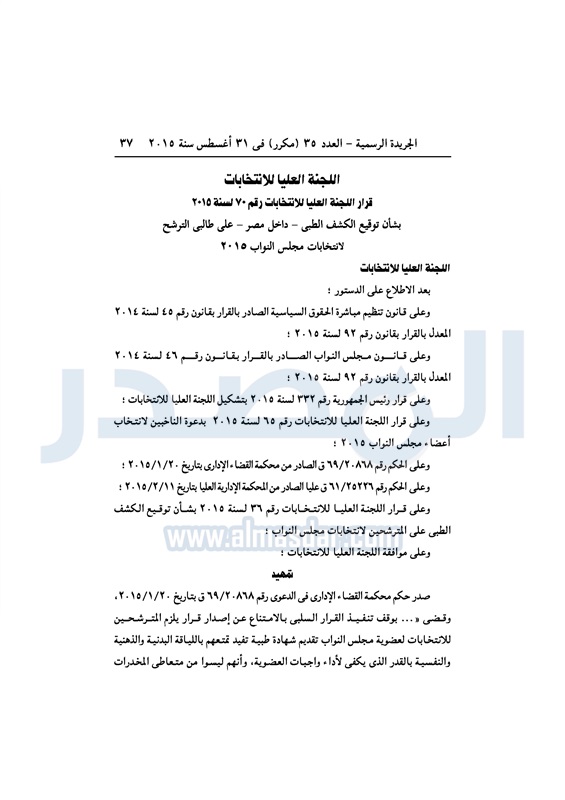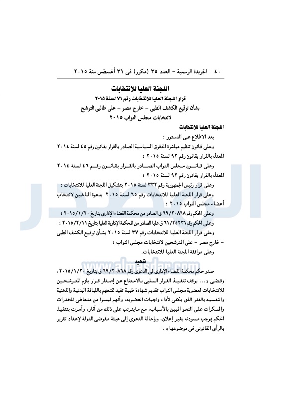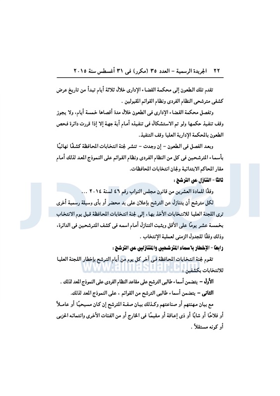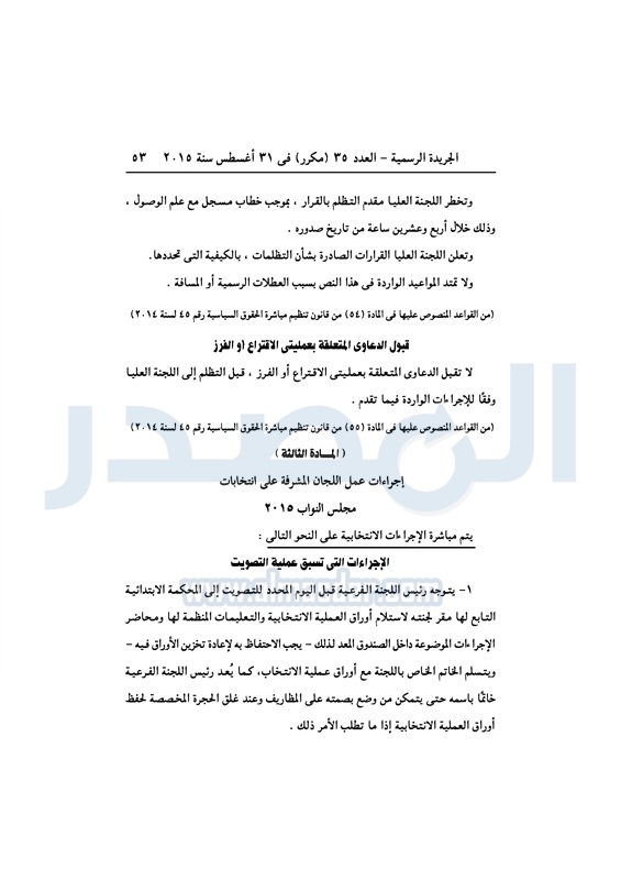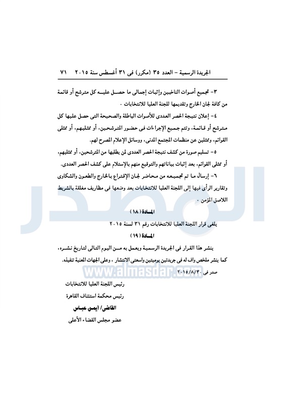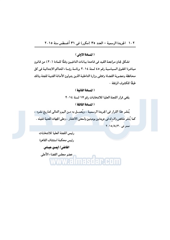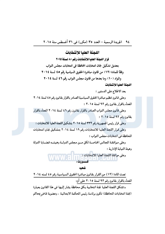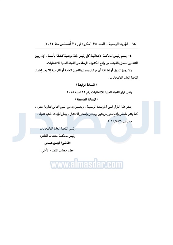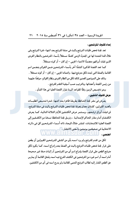 أخبار مصر "المصدر" تنشر قرارات اللجنة العليا للإنتخابات بشأن إنتخابات مجلس النواب 2015 الإثنين 31 أغسطس 2015 - 06:49 م 8/31/2015 6:49:33 PM صورة أرشيفية المصدر - خاص طباعة شارك نشرت الجريدة الرسمية في العدد "35" مكرر الصادر بتاريخ 31 أغسطس 2015 قرارات اللجنة العليا للإنتخابات بشأن الإنتخابات البرلمانية.وجاء نص القرار كالتالى: طباعة شارك المصدر العليا للإنتخابات الجريدة الرسمية الانتخابات البرلمانية تابع المصدر علي جوجل نيوز تطبيق نبض