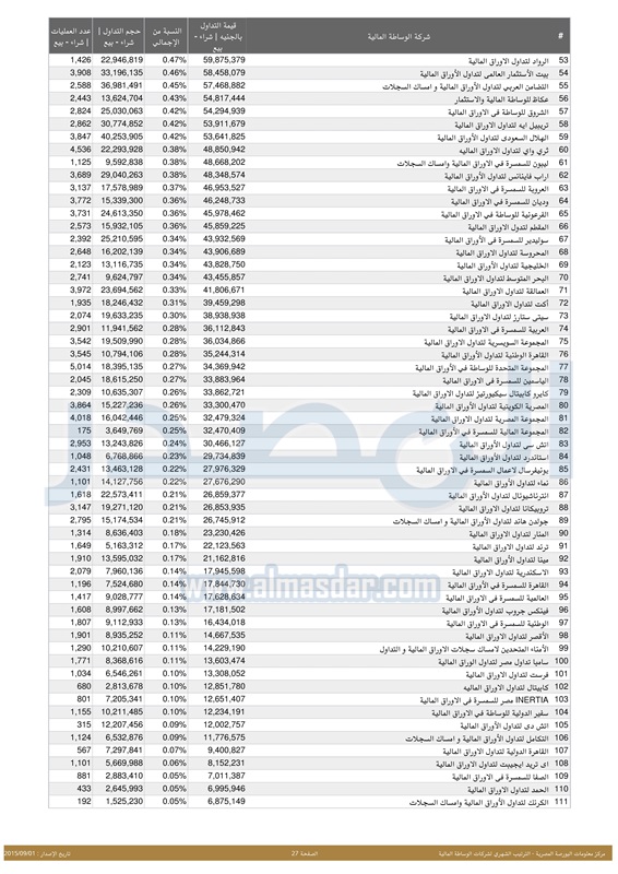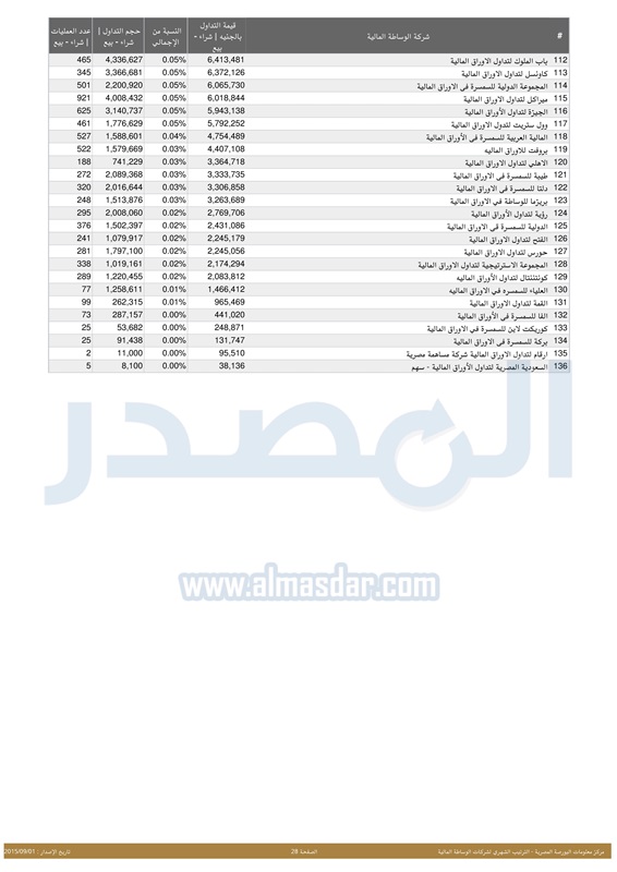 "المصدر" تنشر ترتيب شركات السمسرة بالبورصة المصرية خلال شهر أغسطس 2015