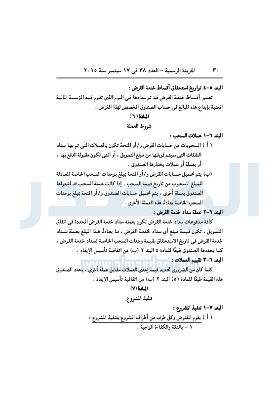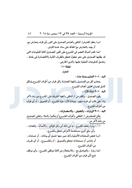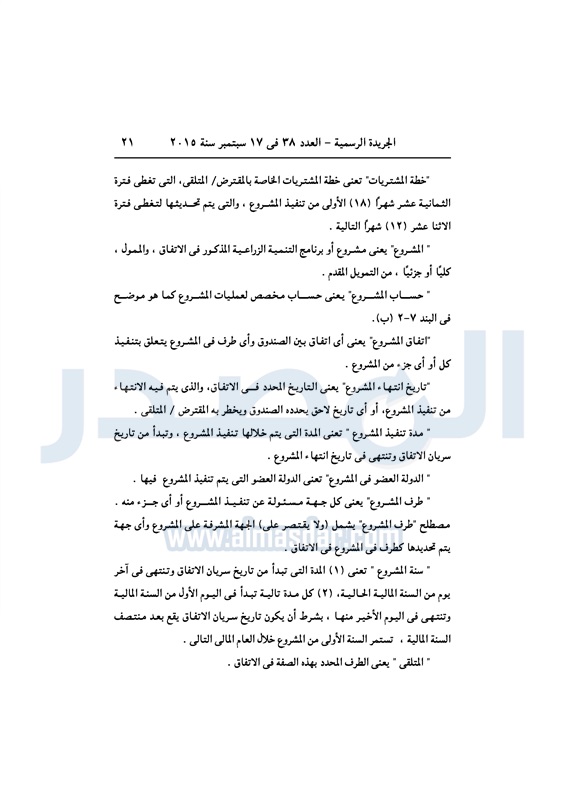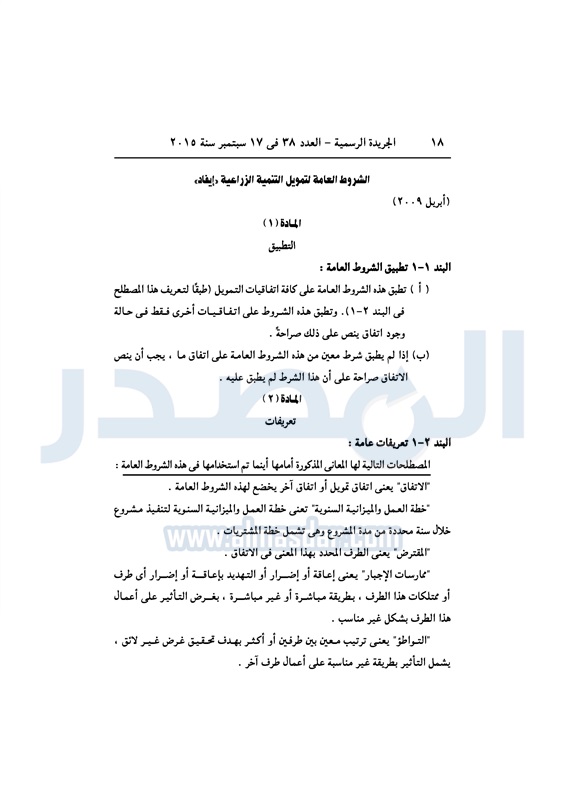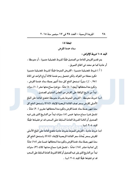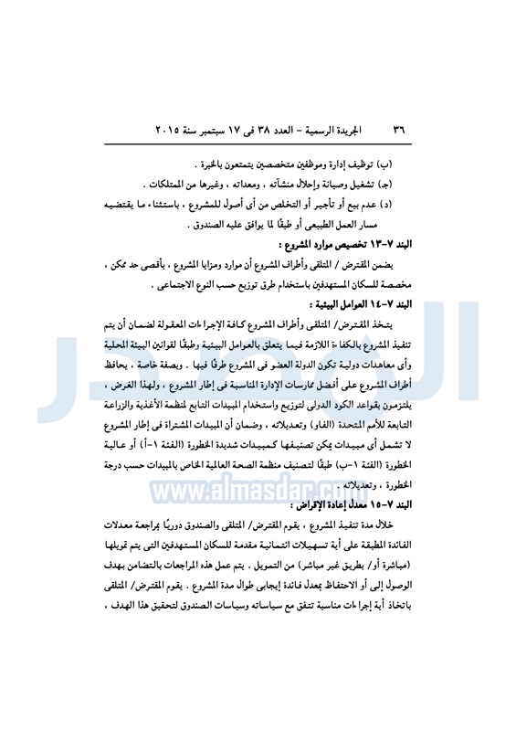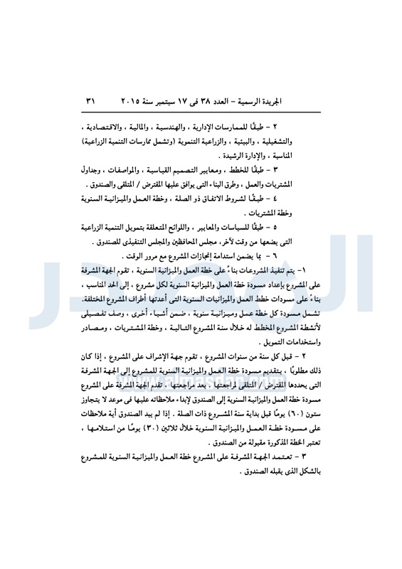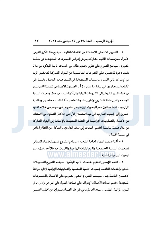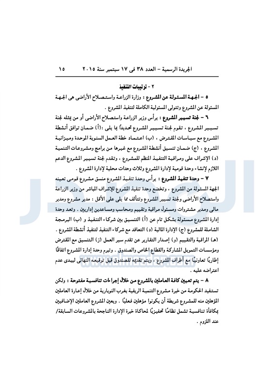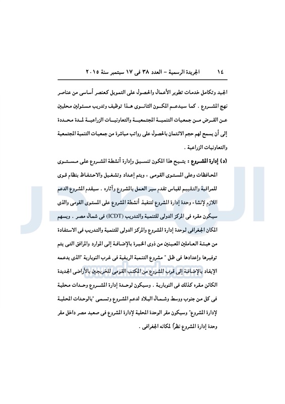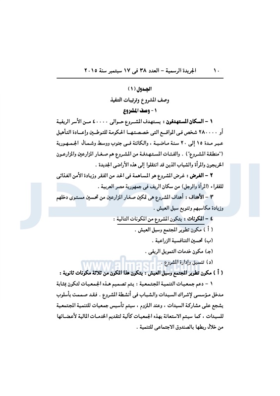 نشرت الجريدة الرسمية في العدد "38" الصادر فى 17 سبتمبر 2015 قراراً لرئيس الجمهورية عبد الفتاح السيسى بشأن الموافقة على إتفاق تمويل مشروع الإستثمارات الزراعية المستدامة ورفع مستوى المعيشة بين مصر والصندوق الدولى للتنمية الزراعية "إيفاد".