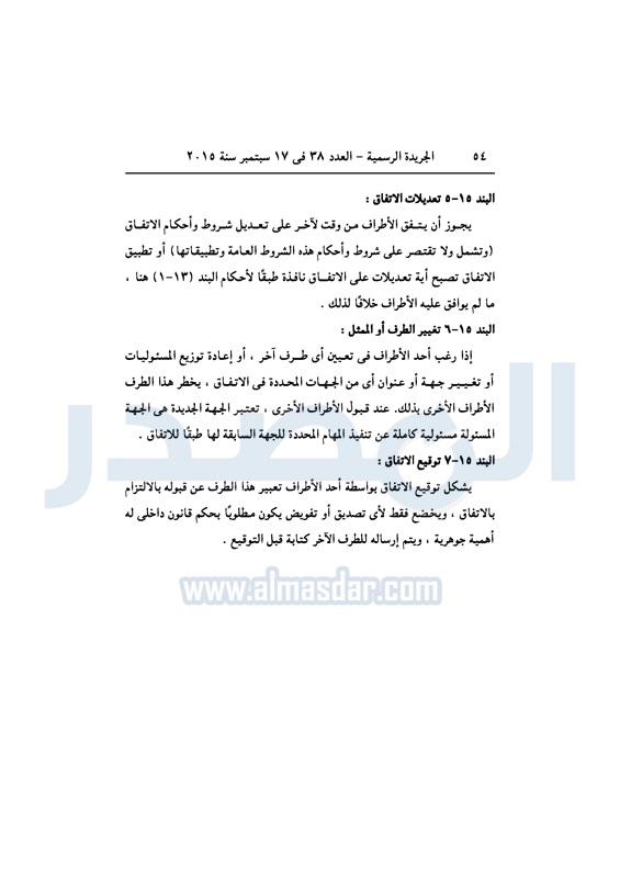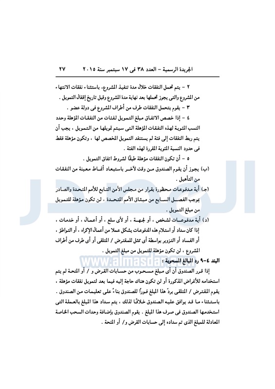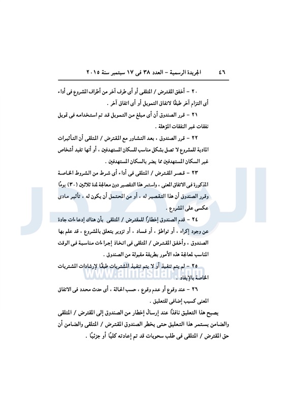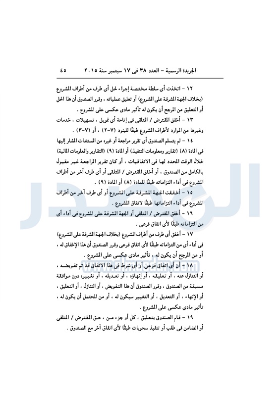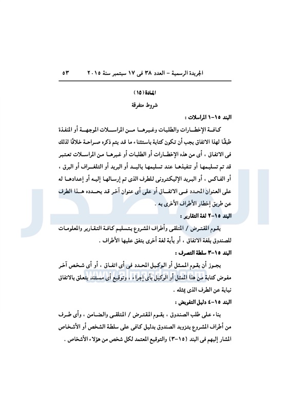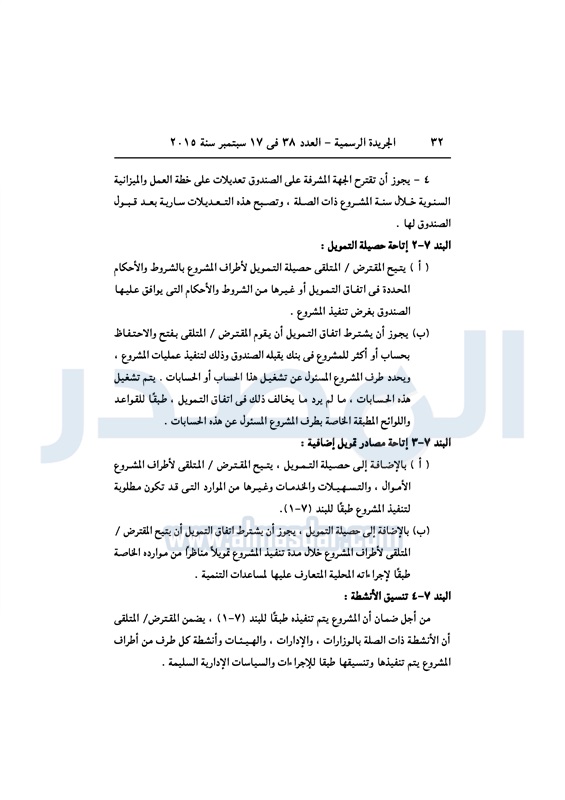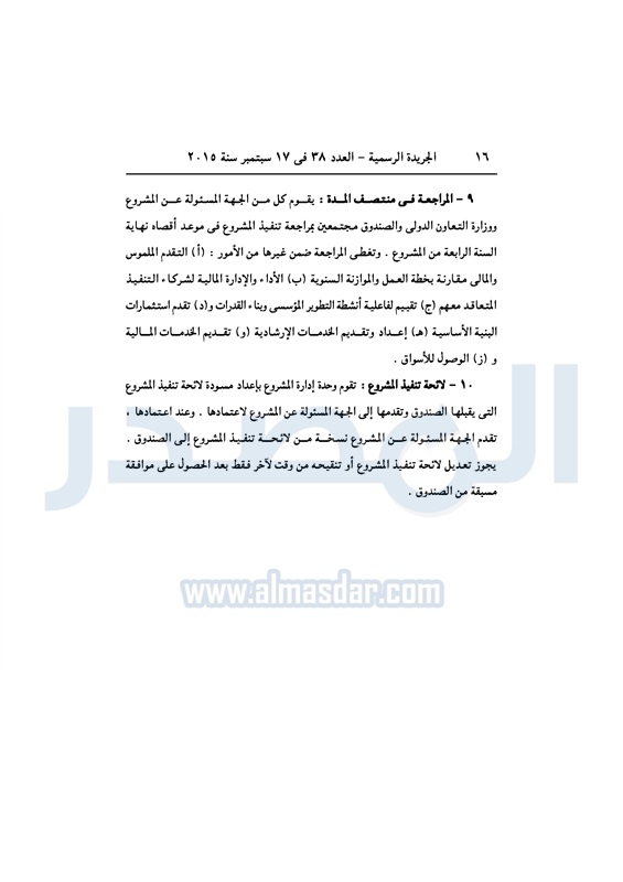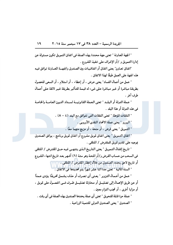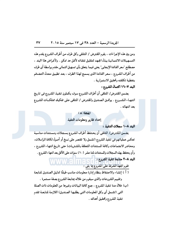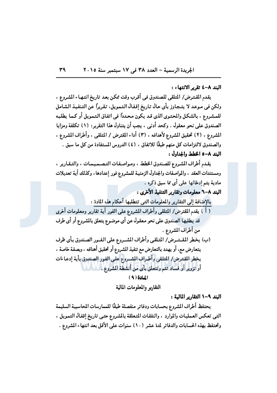 نشرت الجريدة الرسمية في العدد "38" الصادر فى 17 سبتمبر 2015 قراراً لرئيس الجمهورية عبد الفتاح السيسى بشأن الموافقة على إتفاق تمويل مشروع الإستثمارات الزراعية المستدامة ورفع مستوى المعيشة بين مصر والصندوق الدولى للتنمية الزراعية "إيفاد".