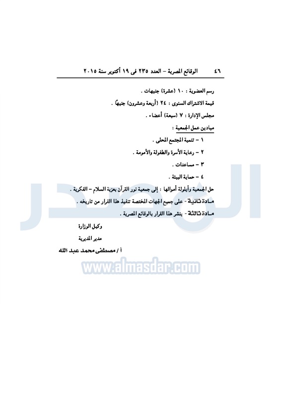 محافظات "التضامن الاجتماعي" بالمنيا تقرر قيد جمعية "رسالة أمل" للتنمية الإثنين 19 أكتوبر 2015 - 01:46 م 10/19/2015 1:46:11 PM صورة ارشيفية المصدر - خاص طباعة شارك نشرت الوقائع المصرية في العدد "235" الصادر فى 19 أكتوبر 2015، قرار وكيل وزارة التضامن الاجتماعي بمحافظة المنيا، بشأن قيد جمعية "رسالة أمل" للتنمية، وجاء نص القرار كالتالي: طباعة شارك تابع المصدر علي جوجل نيوز تطبيق نبض