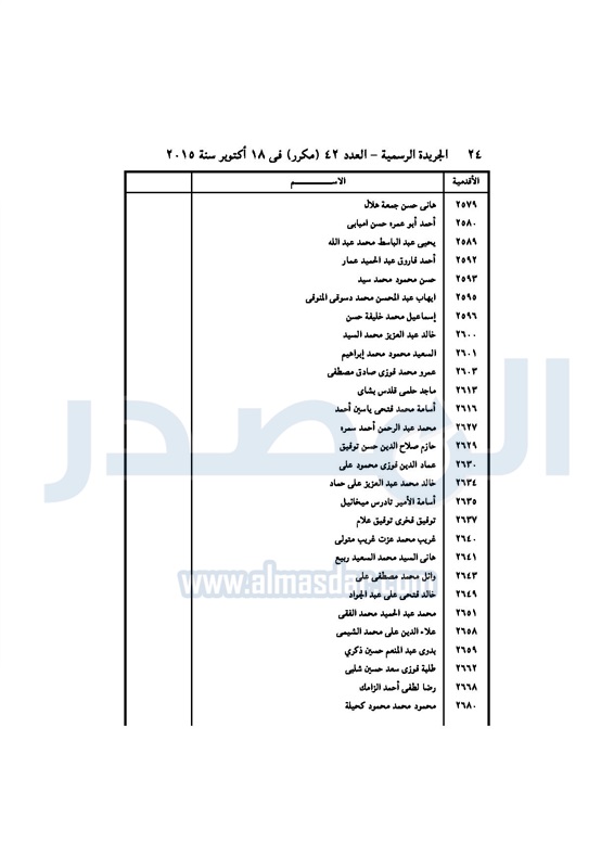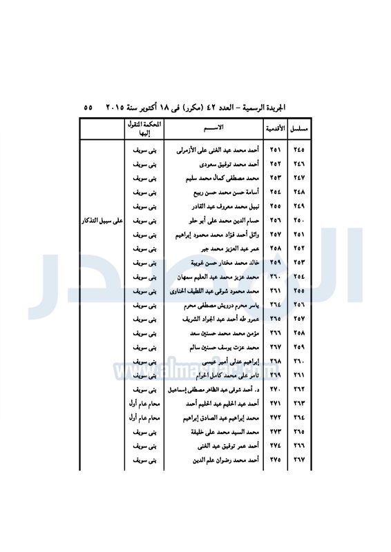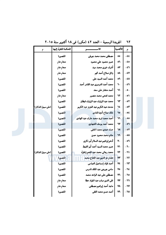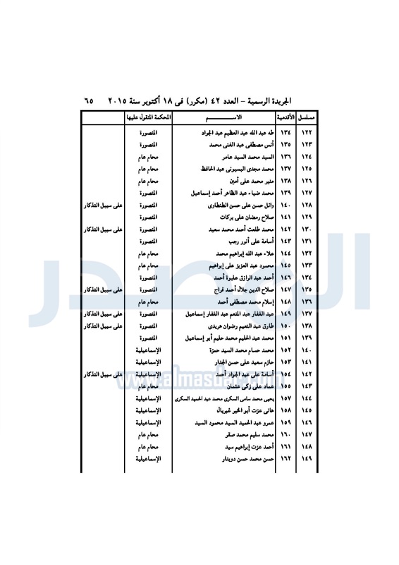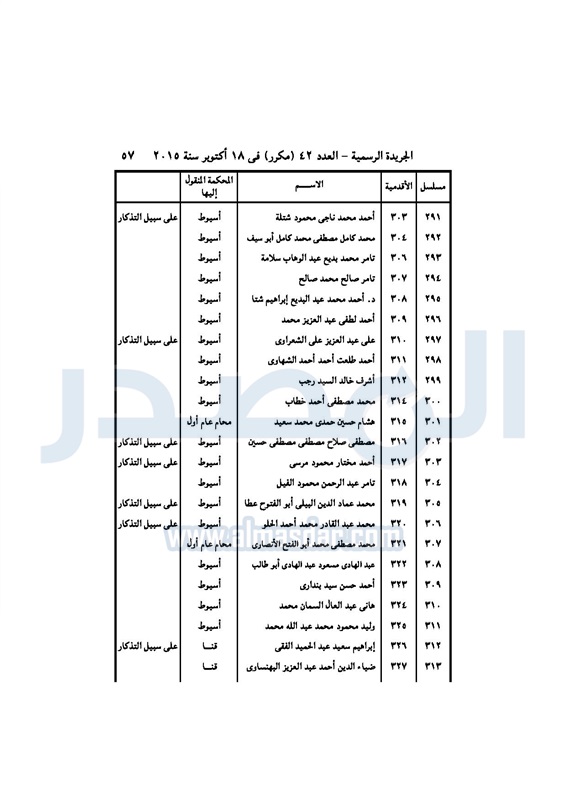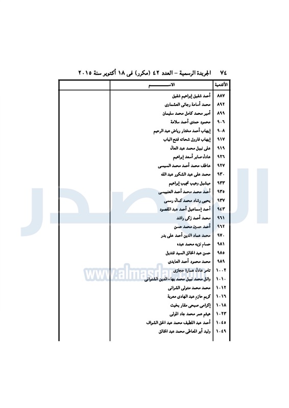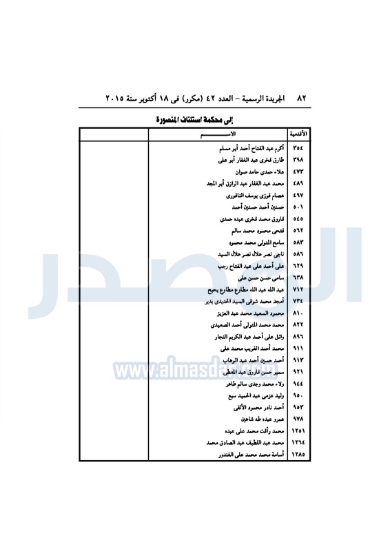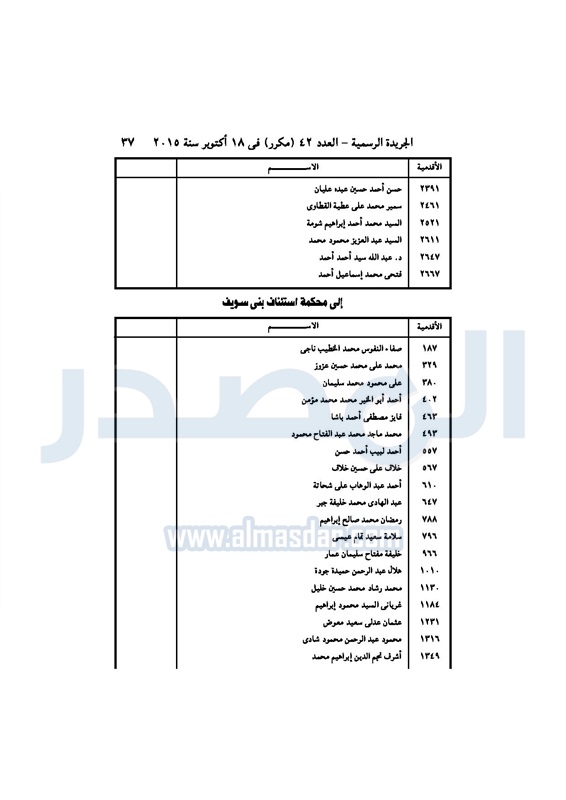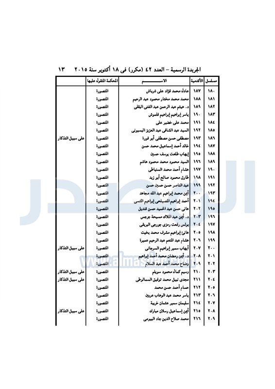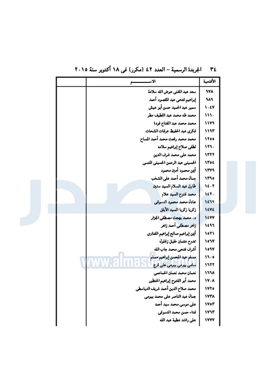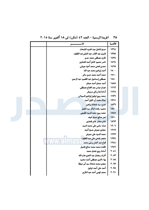 أخبار مصر الرئيس يعين عددًا من القضاة نوابًا لرئيس محكمة النقض الإثنين 19 أكتوبر 2015 - 03:57 م 10/19/2015 3:57:21 PM الرئيس عبدالفتاح السيسي المصدر - خاص طباعة شارك نشرت الجريدة الرسمية في العدد "42" مكرر الصادر فى 18 أكتوبر 2015، قرار رئيس الجمهورية بتعيين عدد من القضاة في منصب نائب رئيس محكمة النقض، وجاء نص القرار كالتالي: طباعة شارك قرار جمهورى الين العين الجريدة الرسمية 2015 تابع المصدر علي جوجل نيوز تطبيق نبض