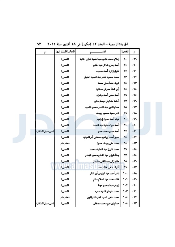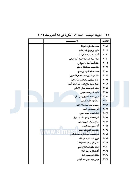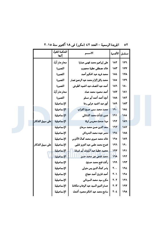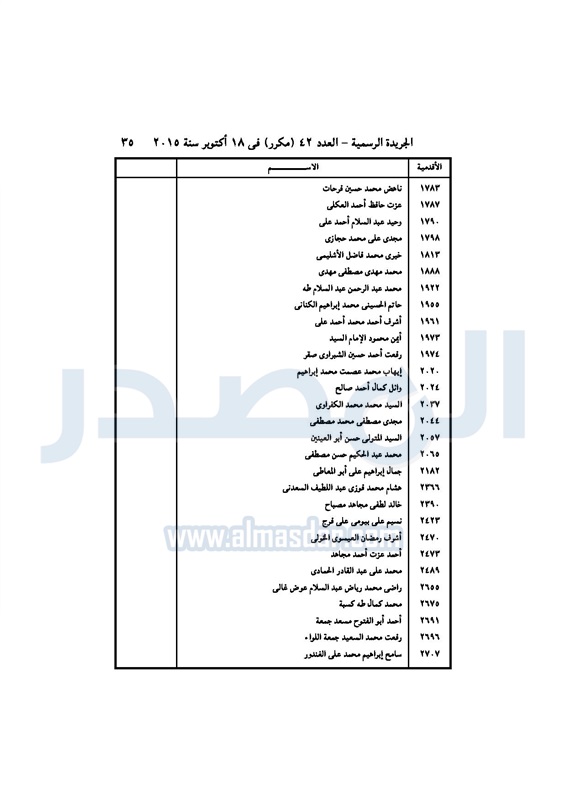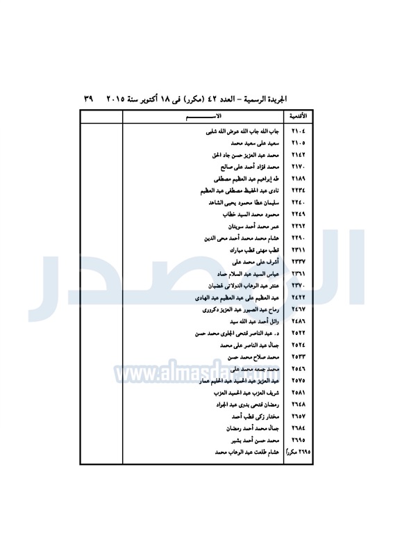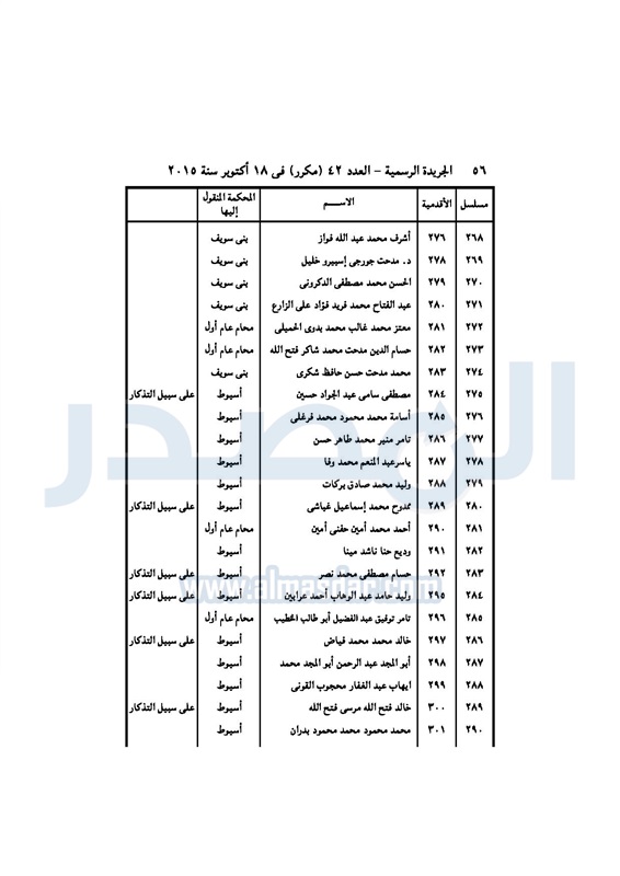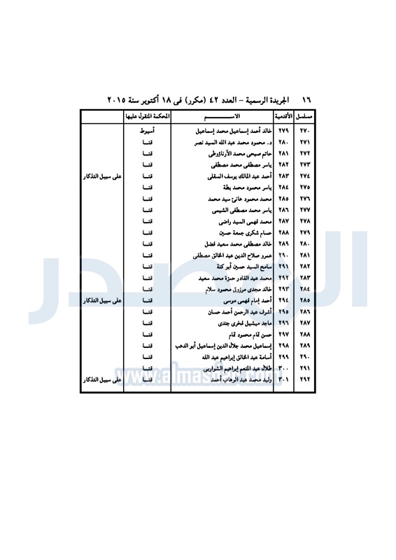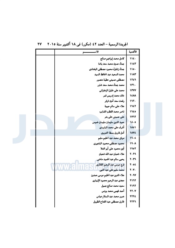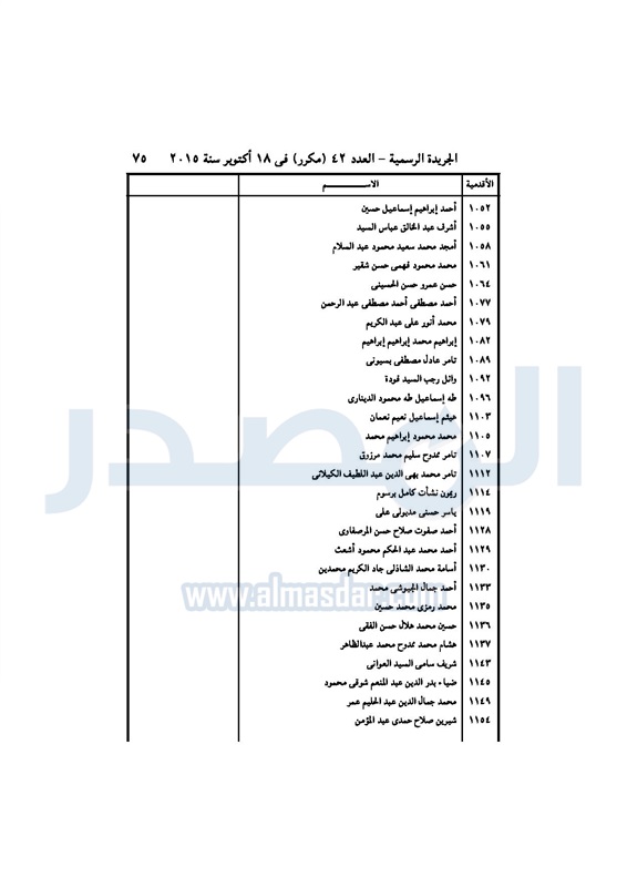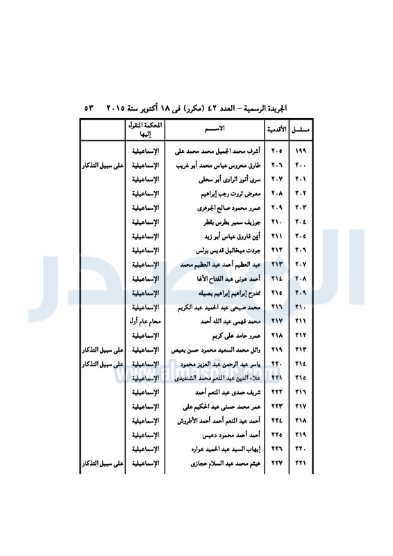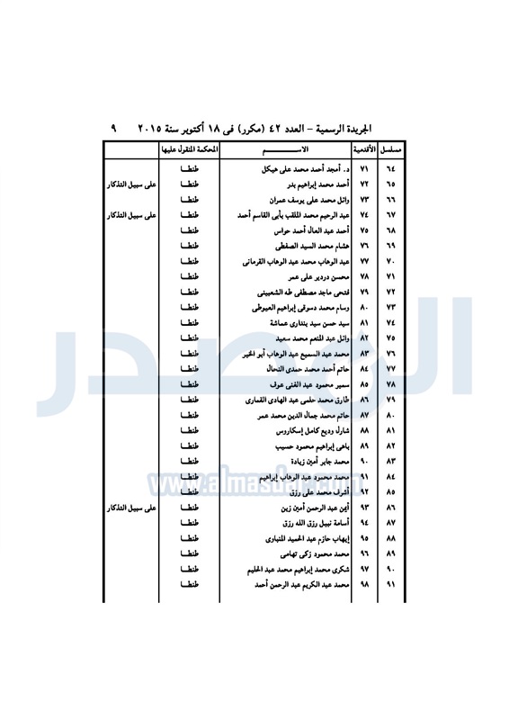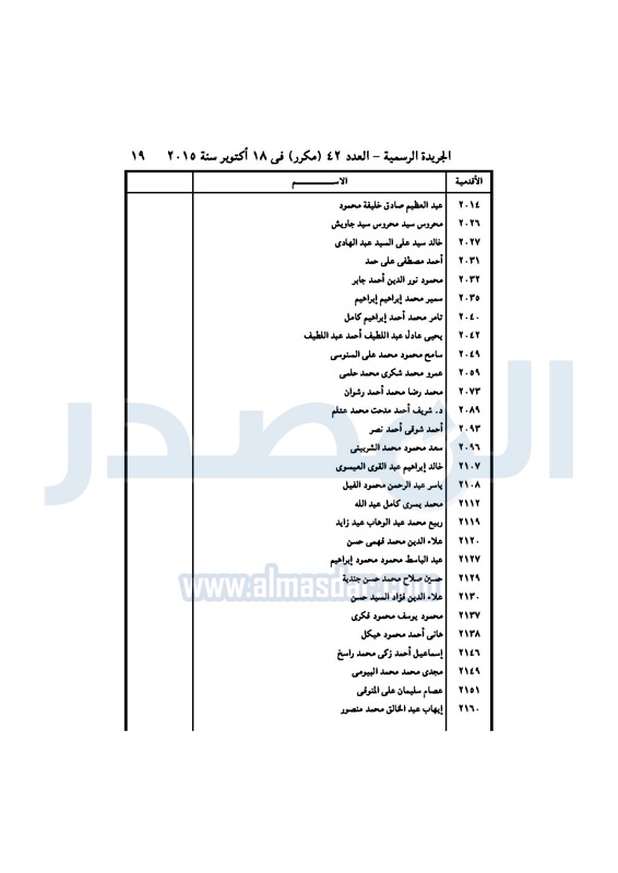 أخبار مصر الرئيس يعين عددًا من القضاة نوابًا لرئيس محكمة النقض الإثنين 19 أكتوبر 2015 - 03:57 م 10/19/2015 3:57:21 PM الرئيس عبدالفتاح السيسي المصدر - خاص طباعة شارك نشرت الجريدة الرسمية في العدد "42" مكرر الصادر فى 18 أكتوبر 2015، قرار رئيس الجمهورية بتعيين عدد من القضاة في منصب نائب رئيس محكمة النقض، وجاء نص القرار كالتالي: طباعة شارك قرار جمهورى الين العين الجريدة الرسمية 2015 تابع المصدر علي جوجل نيوز تطبيق نبض