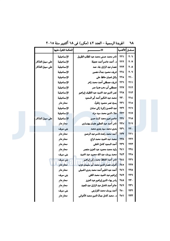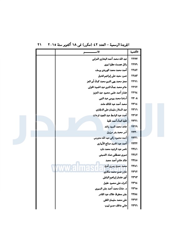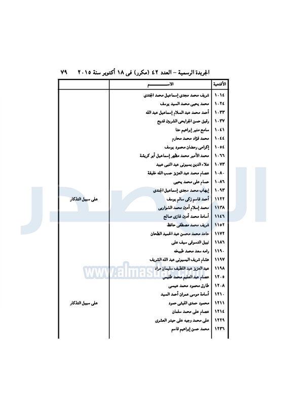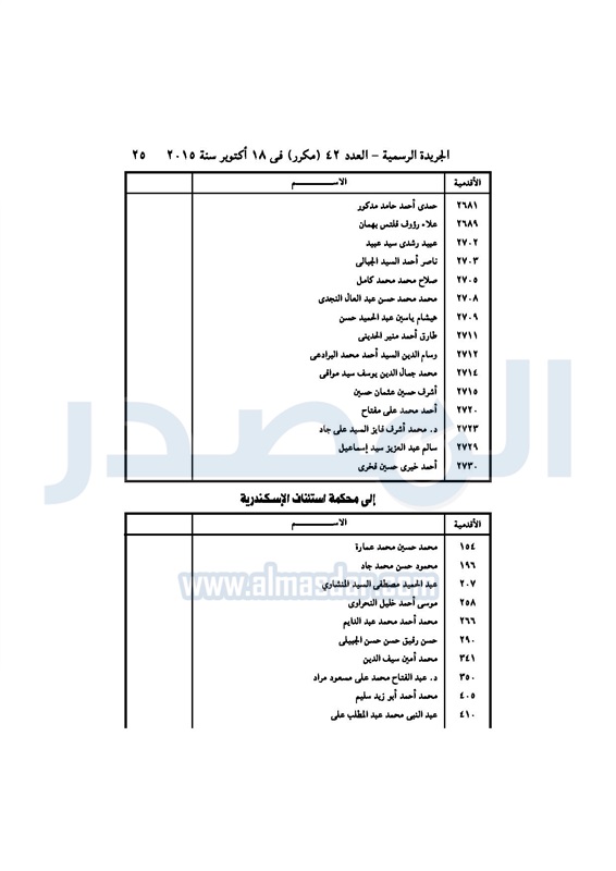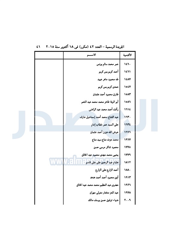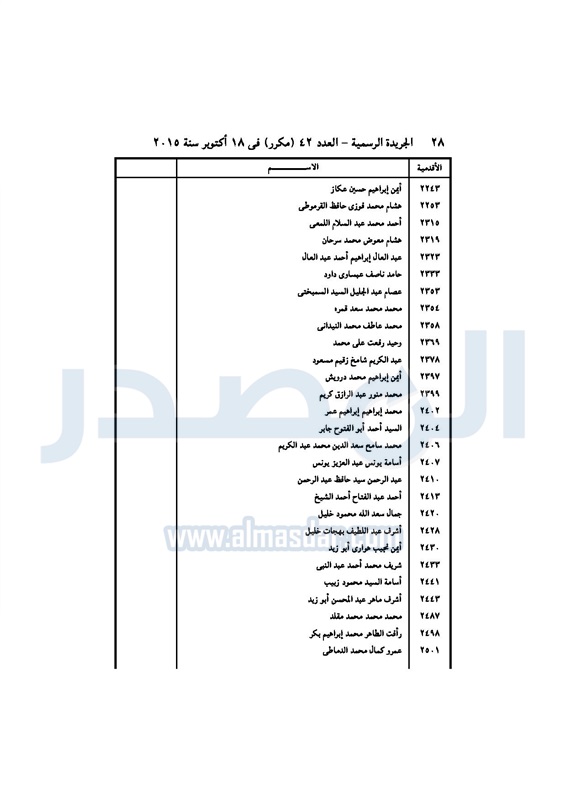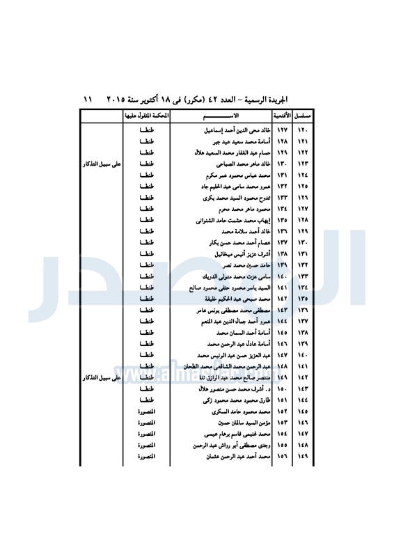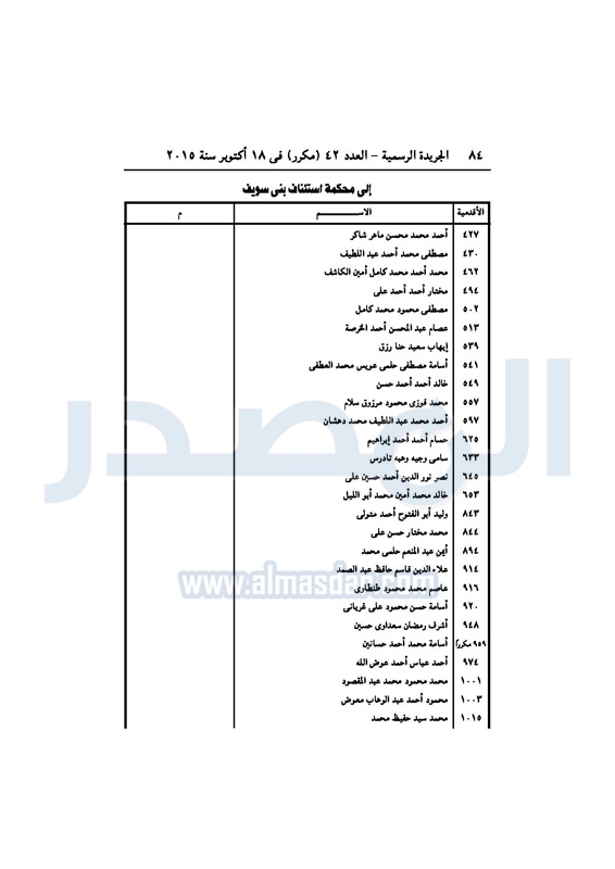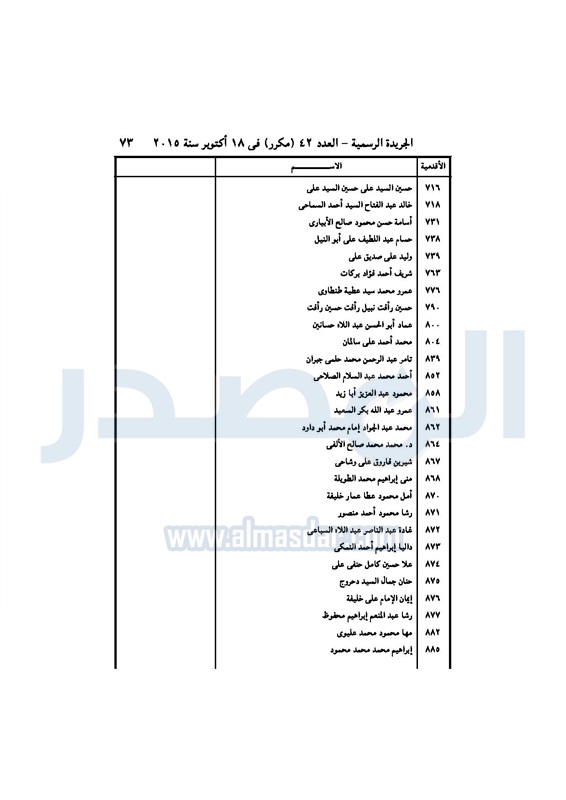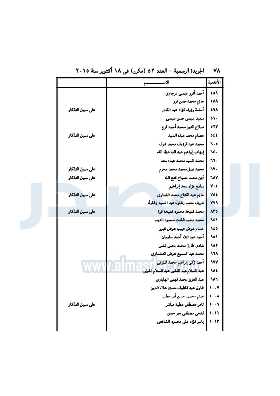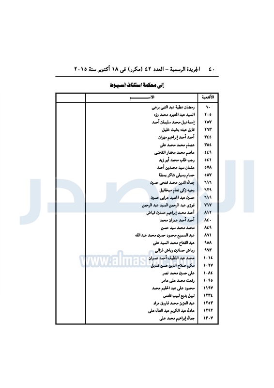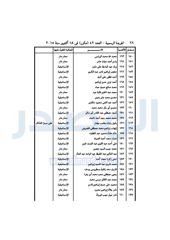 أخبار مصر الرئيس يعين عددًا من القضاة نوابًا لرئيس محكمة النقض الإثنين 19 أكتوبر 2015 - 03:57 م 10/19/2015 3:57:21 PM الرئيس عبدالفتاح السيسي المصدر - خاص طباعة شارك نشرت الجريدة الرسمية في العدد "42" مكرر الصادر فى 18 أكتوبر 2015، قرار رئيس الجمهورية بتعيين عدد من القضاة في منصب نائب رئيس محكمة النقض، وجاء نص القرار كالتالي: طباعة شارك قرار جمهورى الين العين الجريدة الرسمية 2015 تابع المصدر علي جوجل نيوز تطبيق نبض