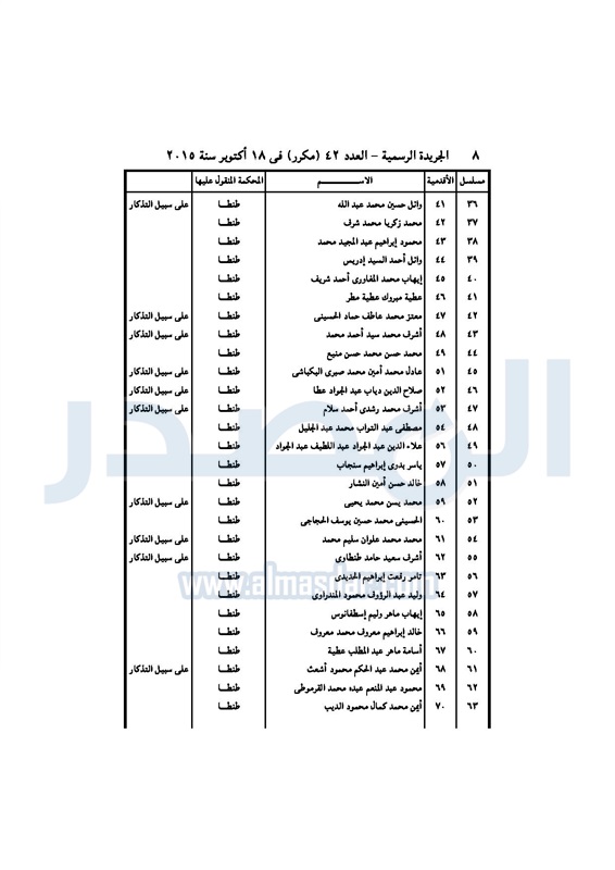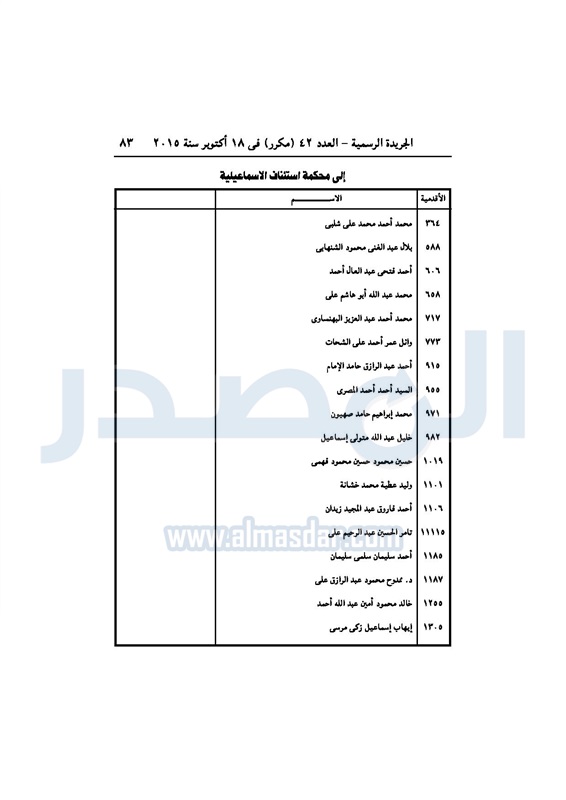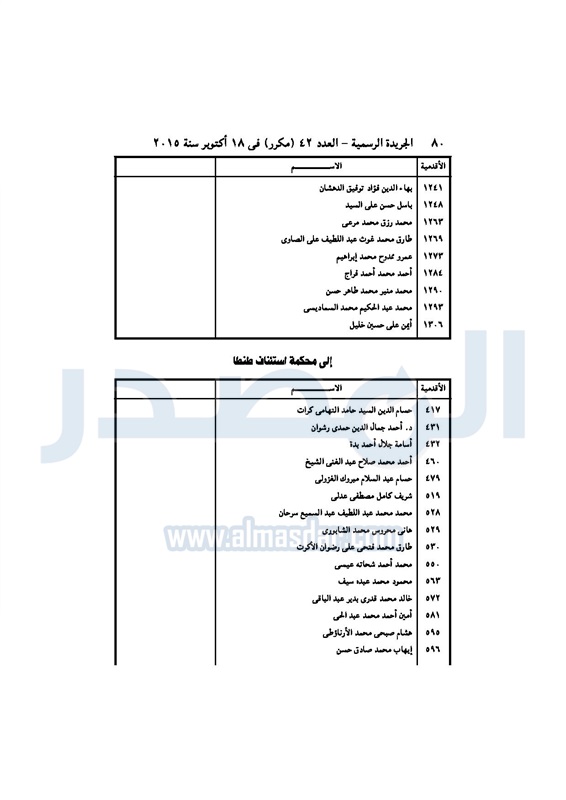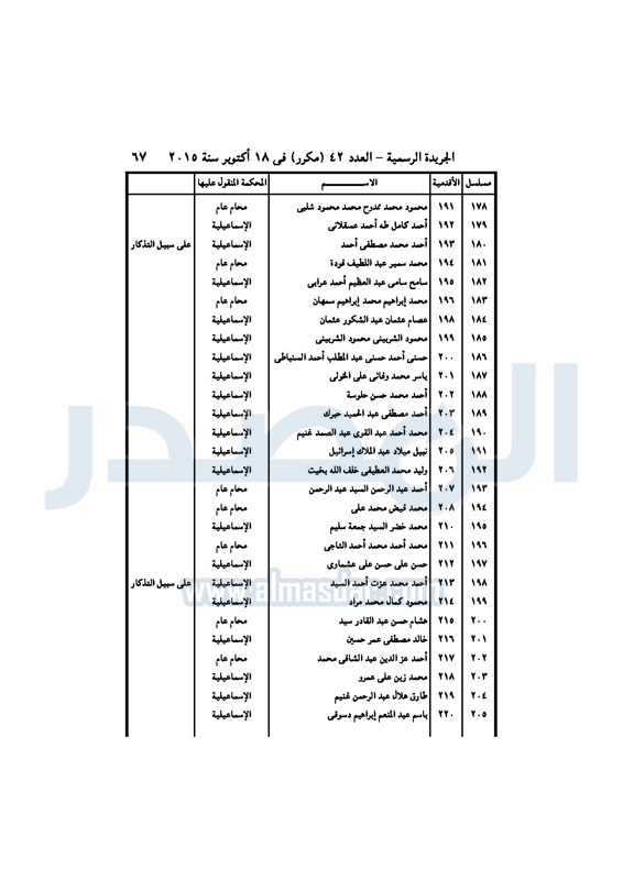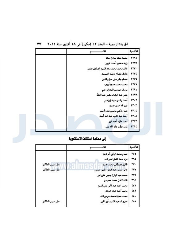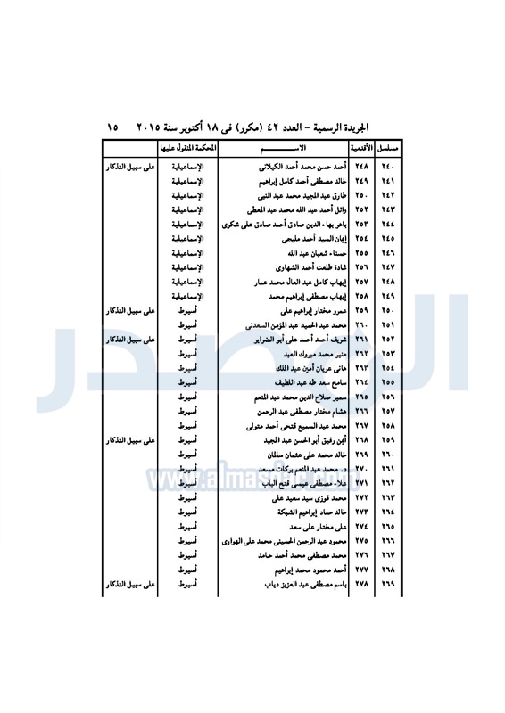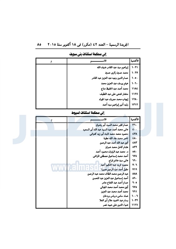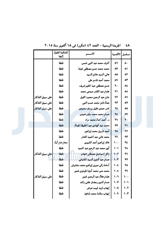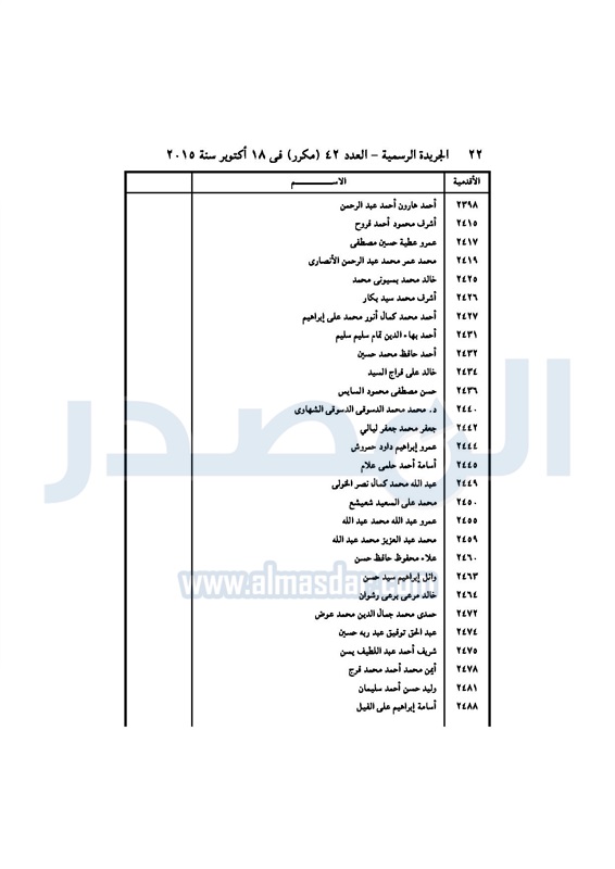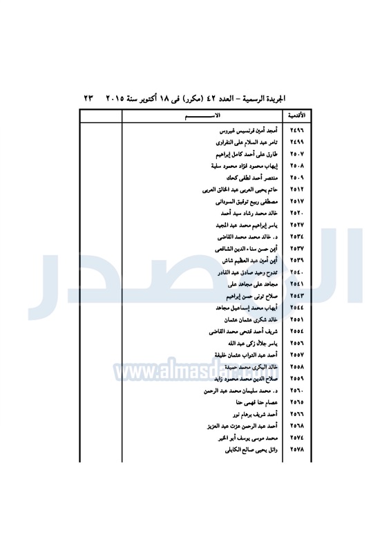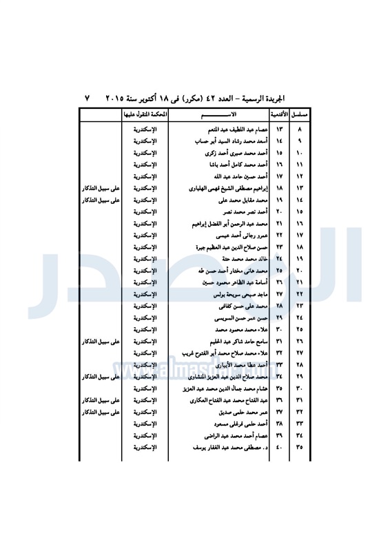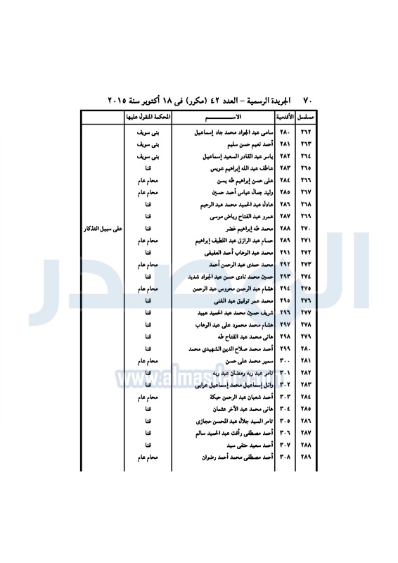 أخبار مصر الرئيس يعين عددًا من القضاة نوابًا لرئيس محكمة النقض الإثنين 19 أكتوبر 2015 - 03:57 م 10/19/2015 3:57:21 PM الرئيس عبدالفتاح السيسي المصدر - خاص طباعة شارك نشرت الجريدة الرسمية في العدد "42" مكرر الصادر فى 18 أكتوبر 2015، قرار رئيس الجمهورية بتعيين عدد من القضاة في منصب نائب رئيس محكمة النقض، وجاء نص القرار كالتالي: طباعة شارك قرار جمهورى الين العين الجريدة الرسمية 2015 تابع المصدر علي جوجل نيوز تطبيق نبض