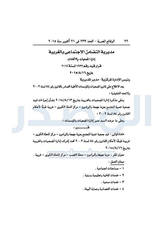 محافظات "التضامن الاجتماعي" بالغربية تقرر قيد جمعية "تنمية المجتمع" الأربعاء 21 أكتوبر 2015 - 01:30 م 10/21/2015 1:30:27 PM صورة ارشيفية المصدر - خاص طباعة شارك نشرت الوقائع المصرية في العدد "237" الصادر فى 21 أكتوبر 2015، قرار وكيل وزارة التضامن الاجتماعي بالغربية، بشأن قيد جمعية "جهجة" بالمحلة الكبرى، وجاء نص القرار كالتالي: طباعة شارك تابع المصدر علي جوجل نيوز تطبيق نبض