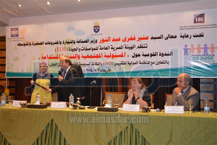 وأكد المهندس عز الدين الحمزاوى المدير الوطنى لمشروع الأيزو بمصر حول المسئولية المجتمعية أن مجهودات هيئة المواصفات والجودة فى نشر الوعى بمفهوم وثقافة ومبادئ المسئولية المجتمعية فى مصرمن خلال المشروع التدريبى الذى قامت الهيئة بتنفيذه خلال 2011-2014 بالتعاون مع كل من المنظمة الدولية للتقييس (الأيزو) والوكالة السويدية للتنمية (سيدا) قد أثمرت عن تخريج عدد من المدربين المتخصصين فى مجال المسئولية المجتمعية والذين تم تدريبهم أيضا من خلال المعهد القومى للجودة والمركز المصرى لمسئولية الشركات.