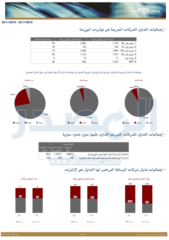 "المصدر" تنشر التقرير الأسبوعى لتداولات "البورصة المصرية"