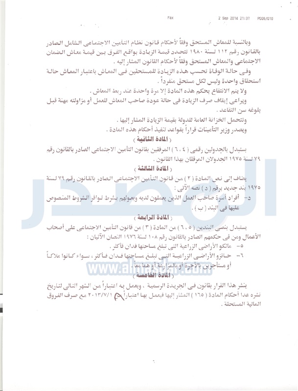الرئيس يصدر قرارا لتعديل بعض أحكام قانون التأمين الاجتماعي رقم 79 لسنة 1975