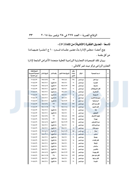 محافظات "مديرية الزراعة" بالدقهلية تقرر تعديل المادة الخامسة الأحد 29 نوفمبر 2015 - 11:24 ص 11/29/2015 11:24:21 AM صورة أرشيفية المصدر - خاص طباعة شارك نشرت الوقائع المصرية فى العدد رقم 269 الصادر فى 28 نوفمبر 2015، قرار مديرية الزراعة بمحافظة الدقهلية، بشأن إضافة بندين للمادة رقم 5، وتعديل بنود أخرى.لقراءة القرار : طباعة شارك تابع المصدر علي جوجل نيوز تطبيق نبض